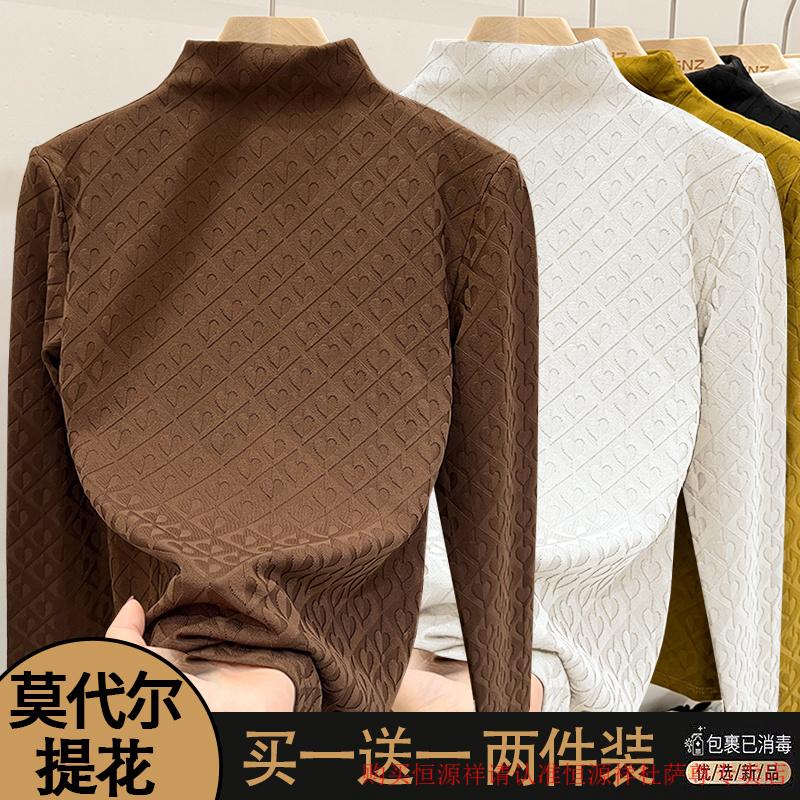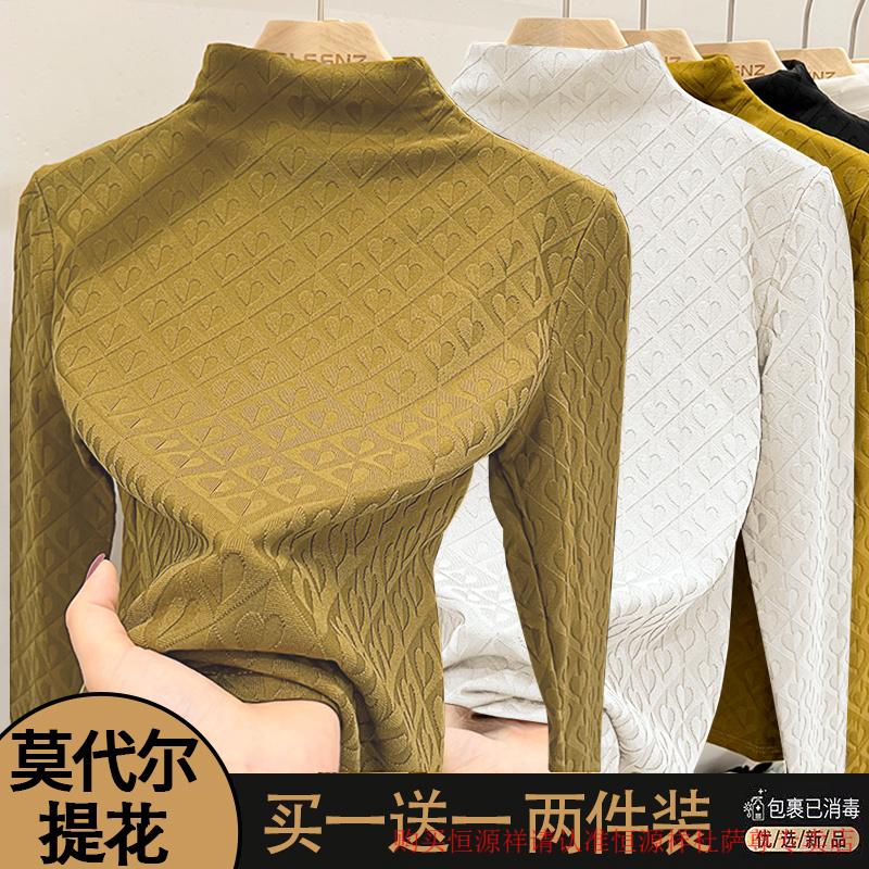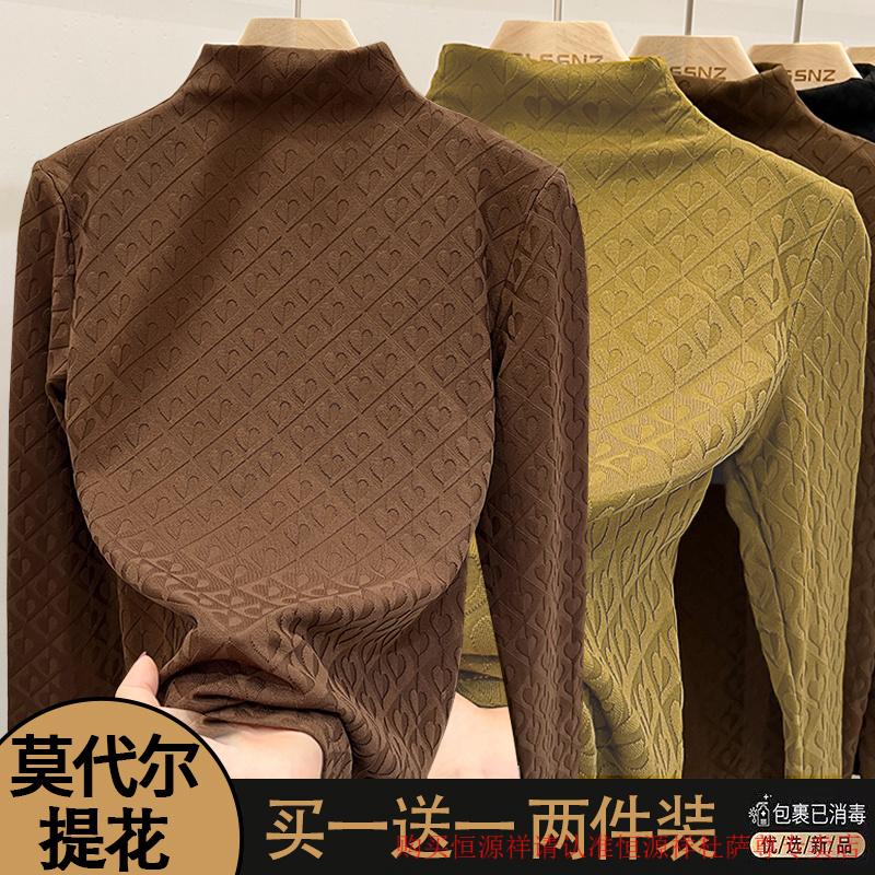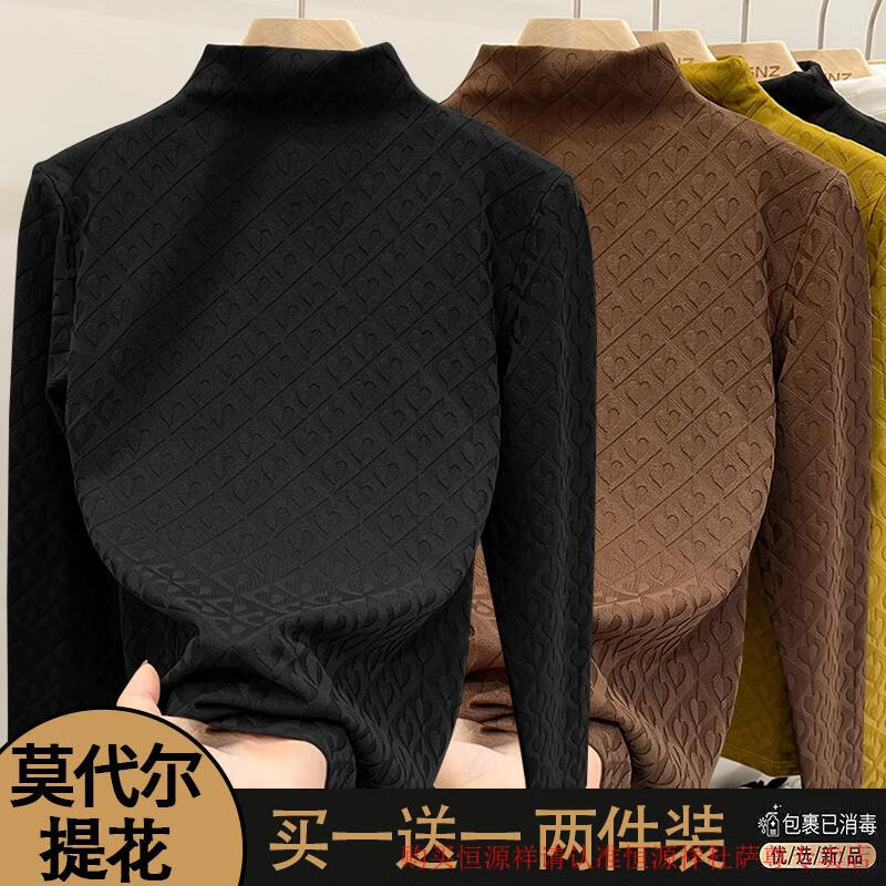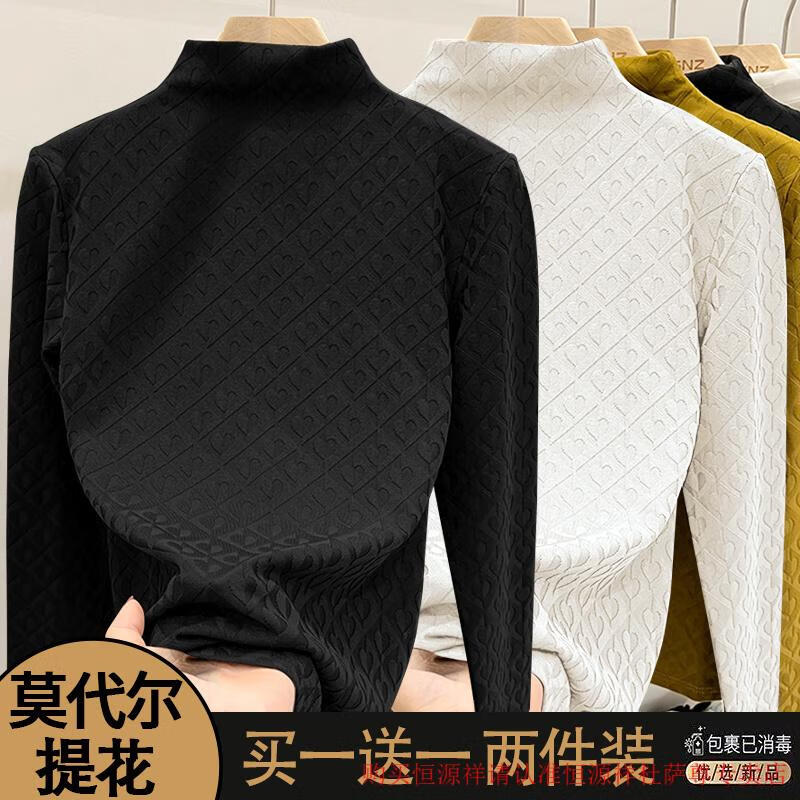 Xia Dian Suding Queen (SE.PSTP) single/two-piece European love jacquard long-sleeved women's 2025 autumn and winter new fashion style inner slimming bottoming shirt black + black L recommended 105-115 pounds