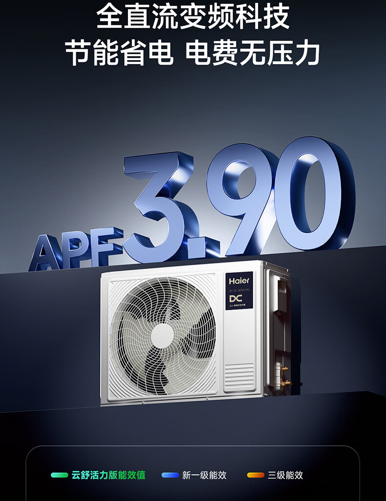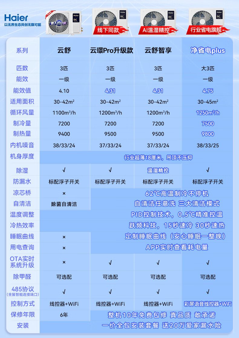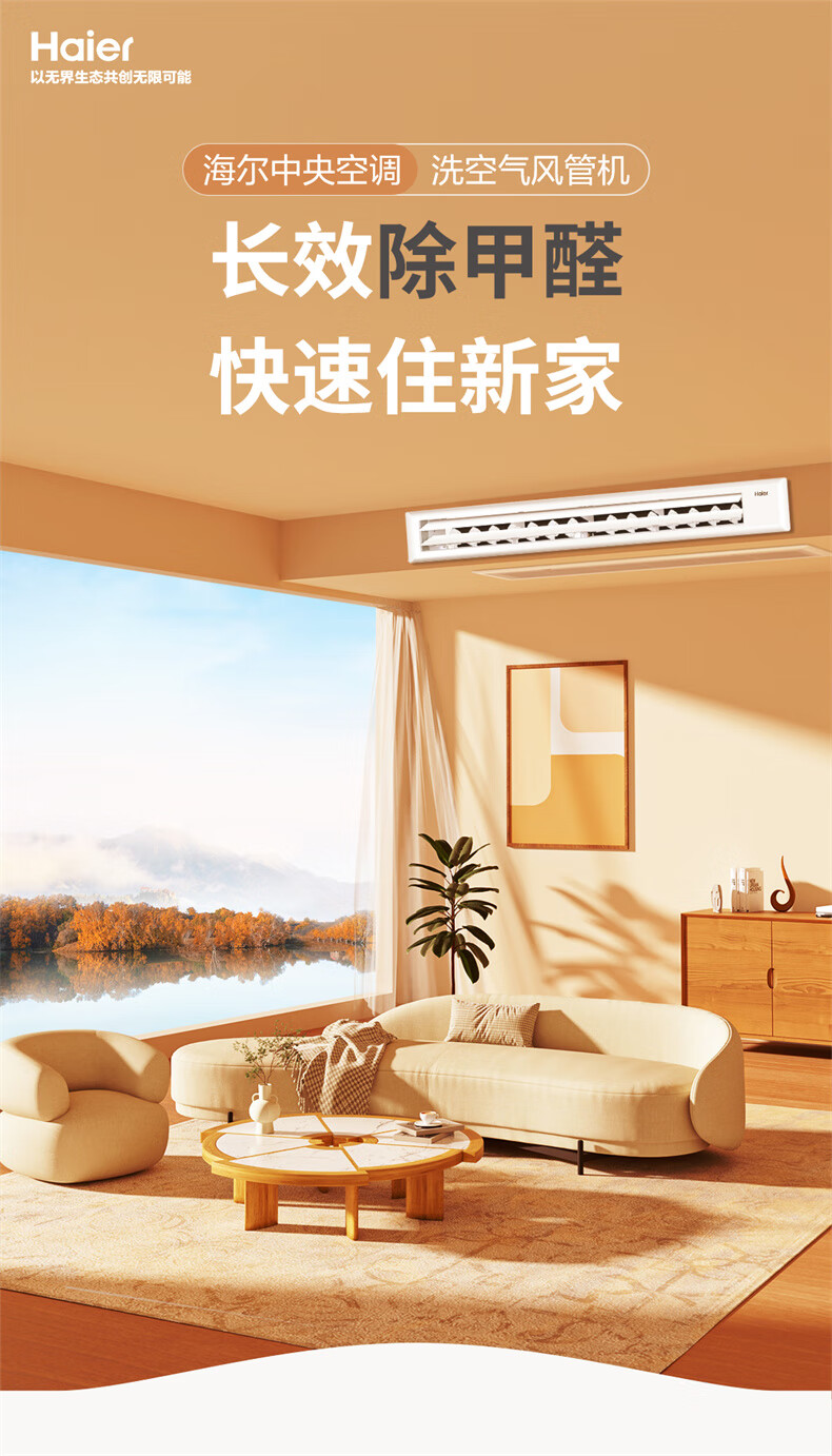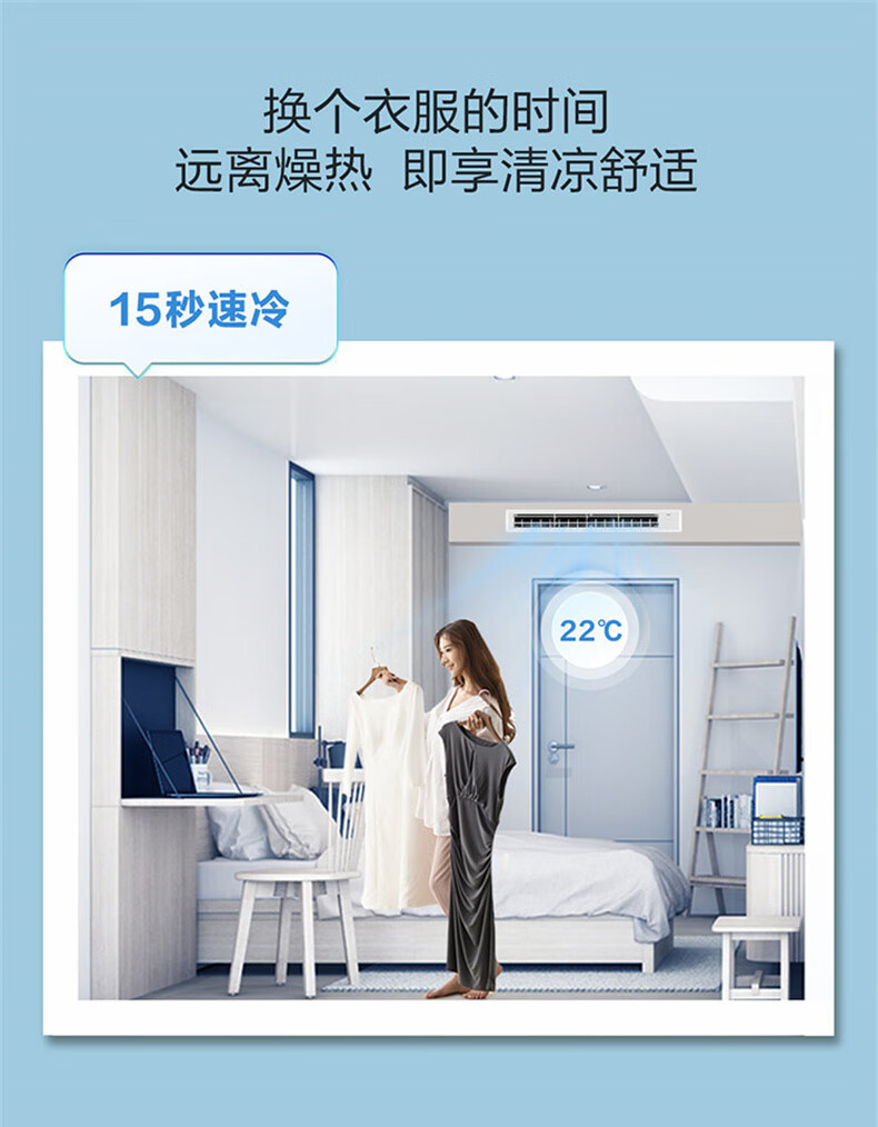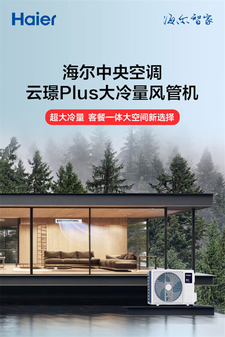 Haier instantly saves 15% when placing an order. Net power saving plus large 3 HP duct machine. One-to-one 3p central air conditioner. New level of energy efficiency. Yunjing Pro upgraded model with full DC inverter living room. Net power saving plus large 3 HP. Energy saving ceiling. Annual flagship new product.