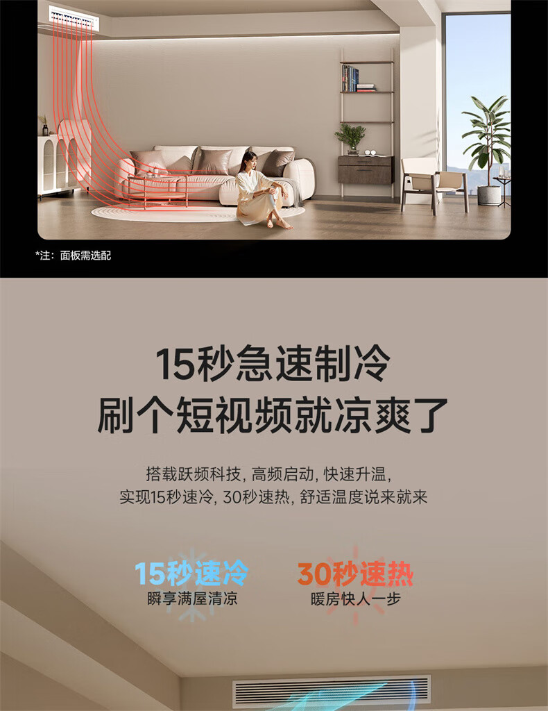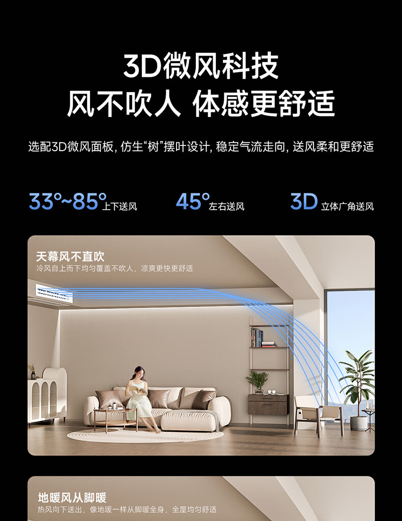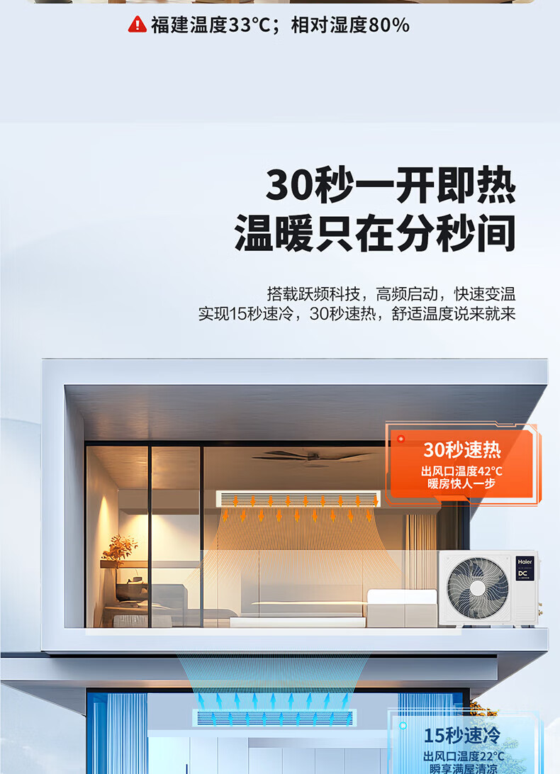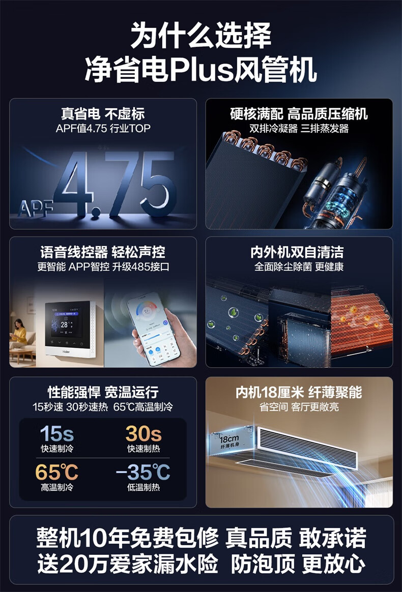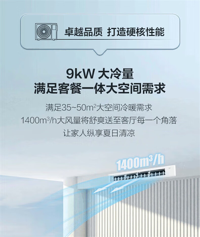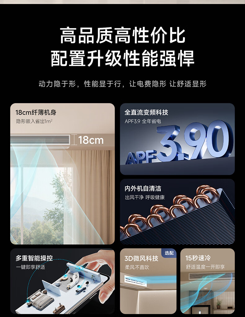 Haier instantly saves 15% when placing an order. Net power saving plus large 3 HP duct machine. One-to-one 3p central air conditioner. New level of energy efficiency. Yunjing Pro upgraded model with full DC inverter living room. Net power saving plus large 3 HP. Energy saving ceiling. Annual flagship new product.