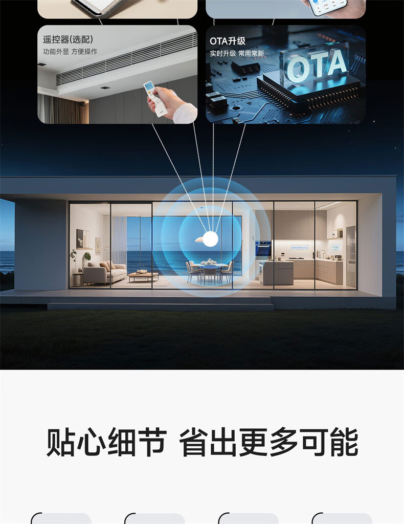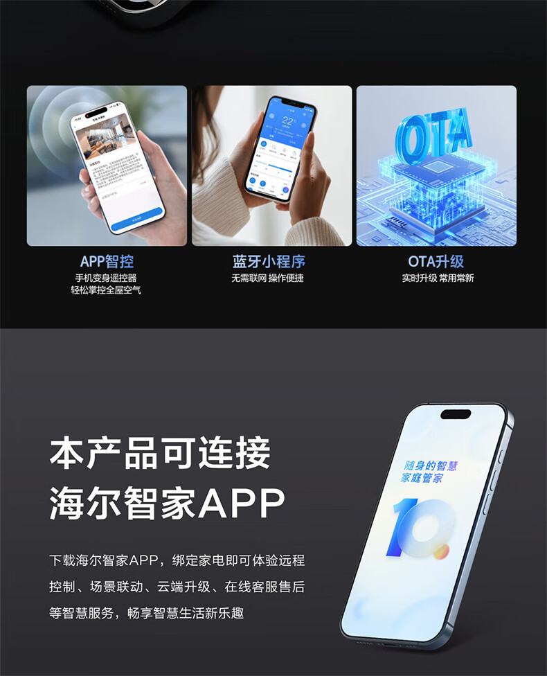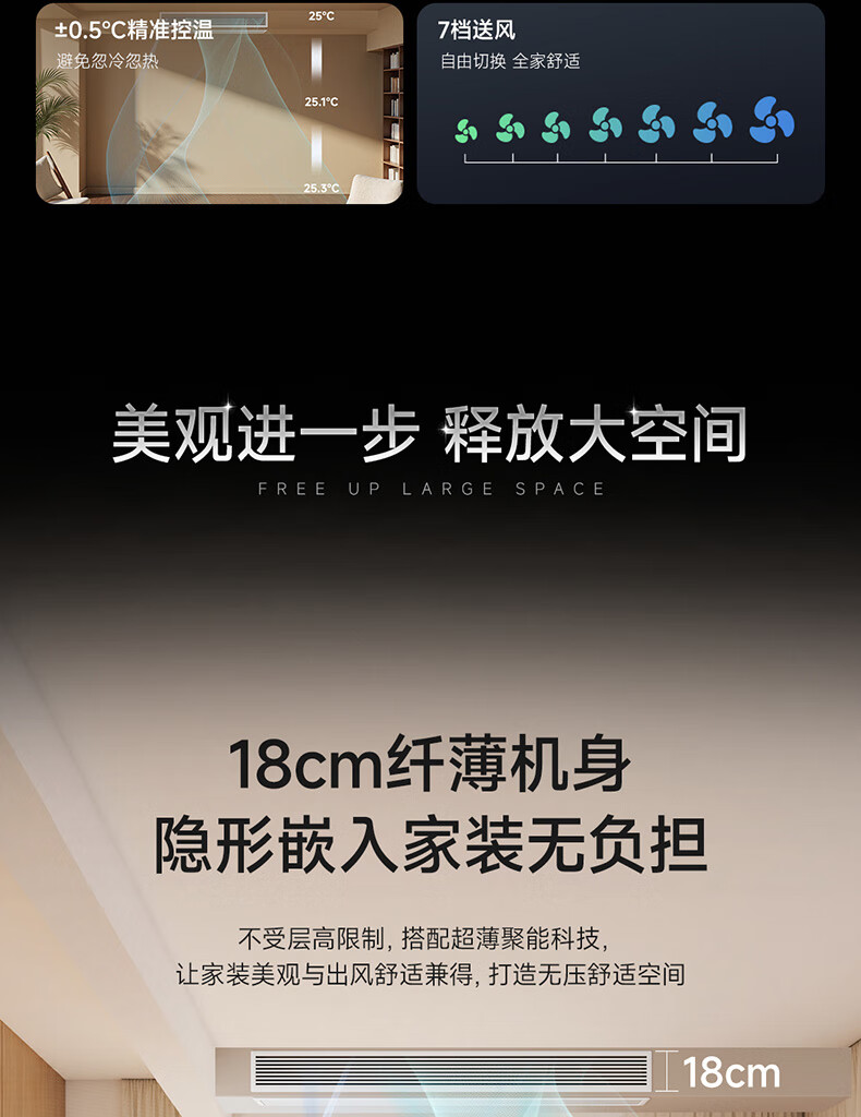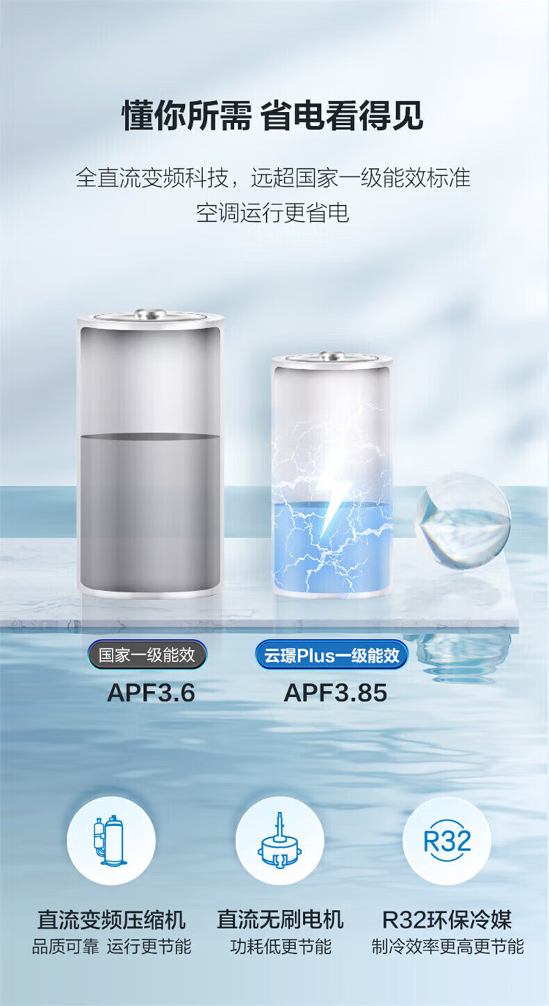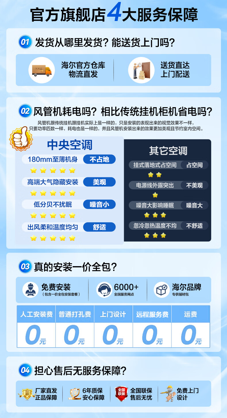 Haier instantly saves 15% when placing an order. Net power saving plus large 3 HP duct machine. One-to-one 3p central air conditioner. New level of energy efficiency. Yunjing Pro upgraded model with full DC inverter living room. Net power saving plus large 3 HP. Energy saving ceiling. Annual flagship new product.