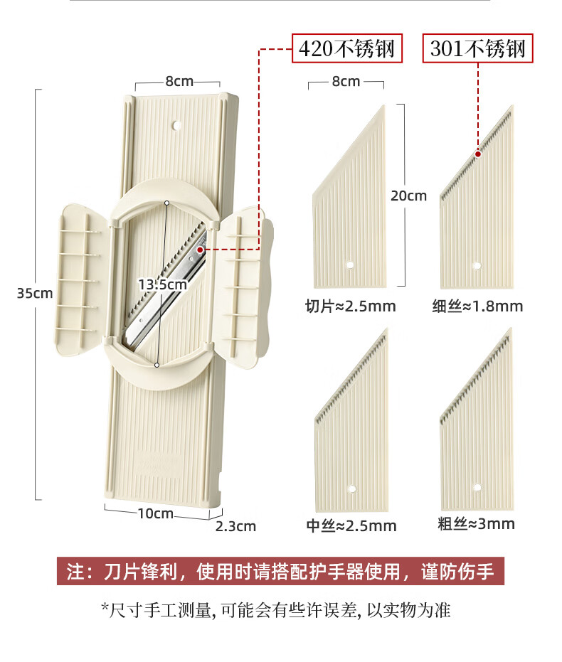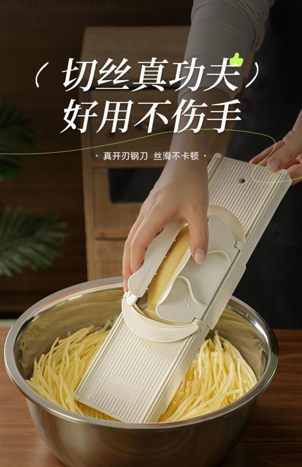 LZJV German Grater Flagship Store Shredder Kitchen Multifunctional Potato Shred Slicing and Vegetable Cutting Tool Grater 2 Functions Blue Model Thin Shreds + Slicing + Hand Guard