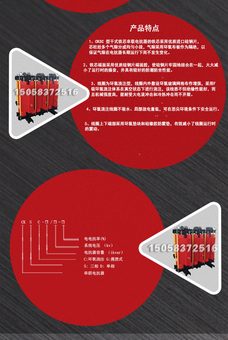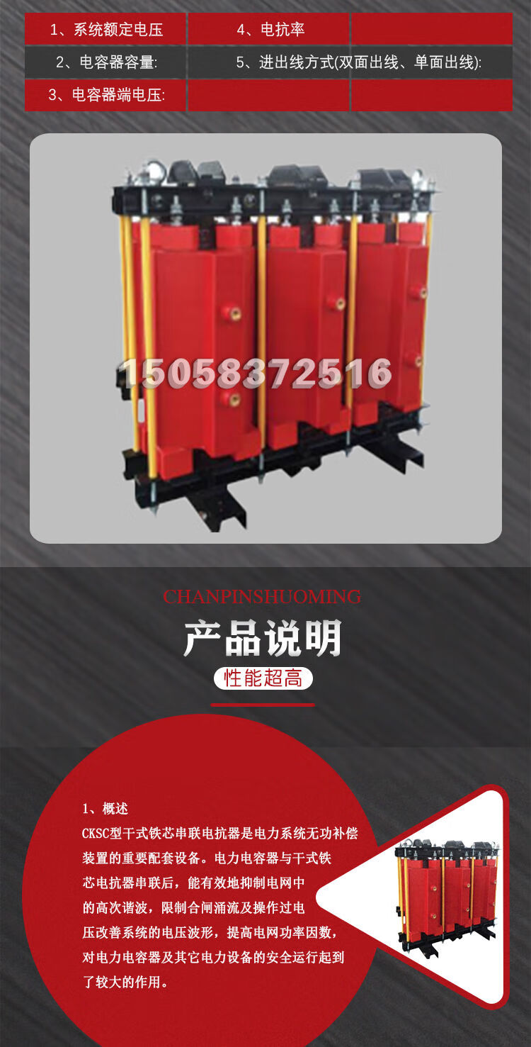 CKSC high-voltage series reactor 10KV reactor high-voltage capacitor special high-voltage dry dry core series reactor CKSC-6/113-6 adapted capacitor capacity 100k3
