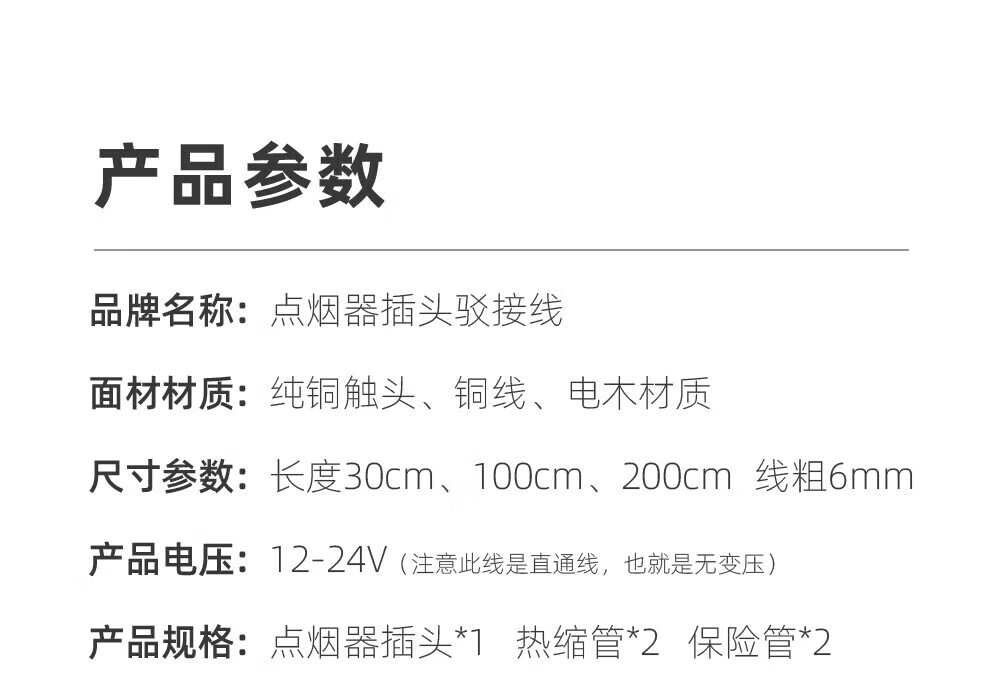 OEMG car cigarette lighter conversion plug pure copper car adapter cigarette lighter extension power cord 12v24v universal 30 cm with fuse heat shrink tube