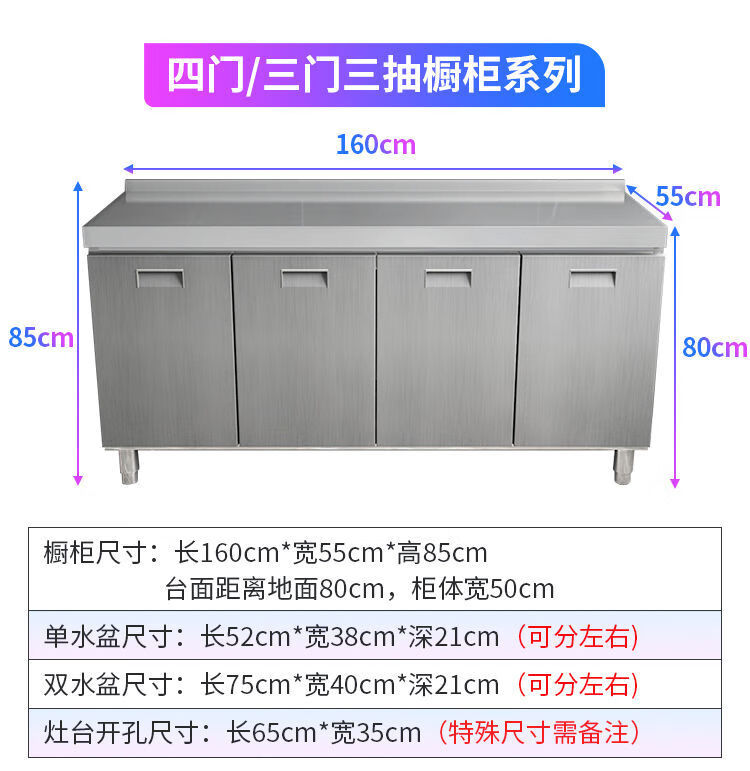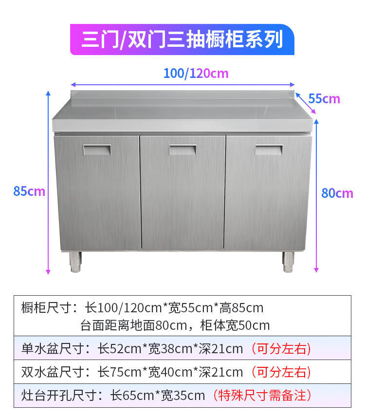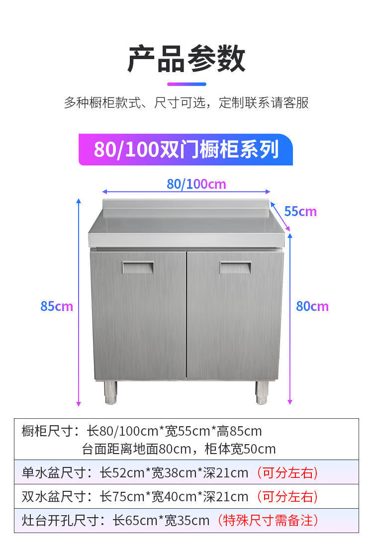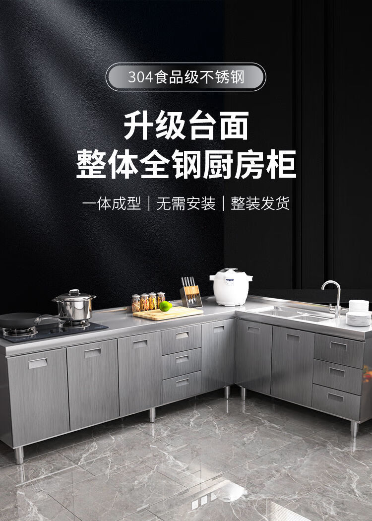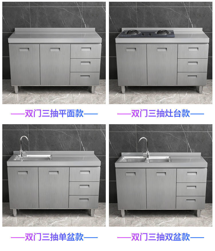 FANCYCHIC304 overall stainless steel white steel kitchen cabinet simple stove integrated storage cupboard household small apartment 80CM double door - flat style 201 stainless steel - installation free