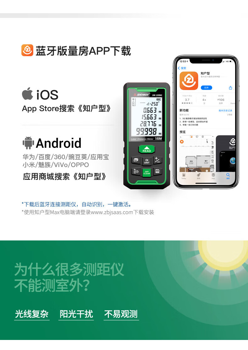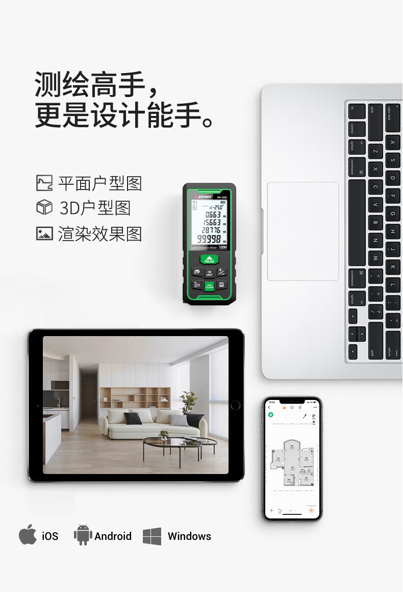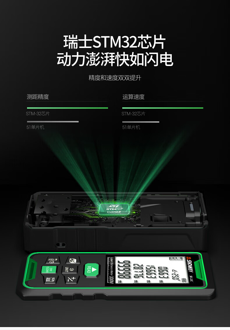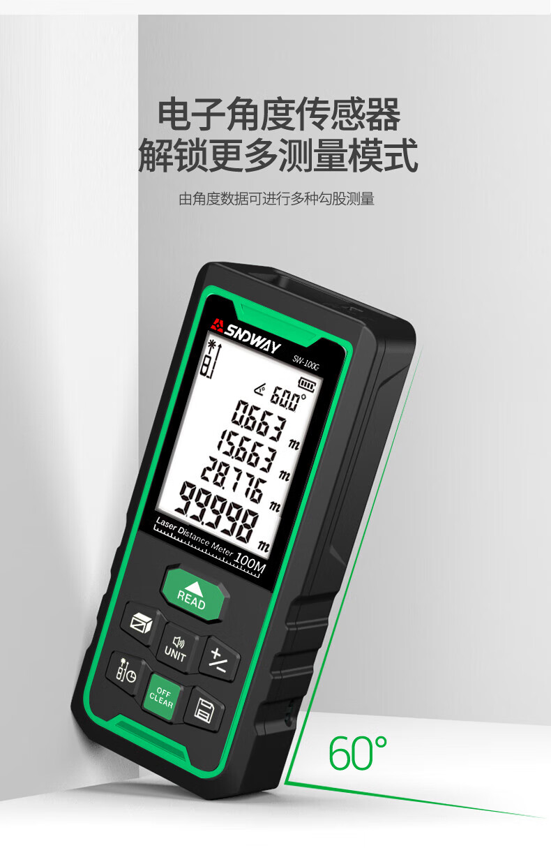 He Jiagong Shendawei Shendawei laser rangefinder outdoor handheld green light measuring instrument measuring room height 50 meters (lifetime CAD drawing software VIP)