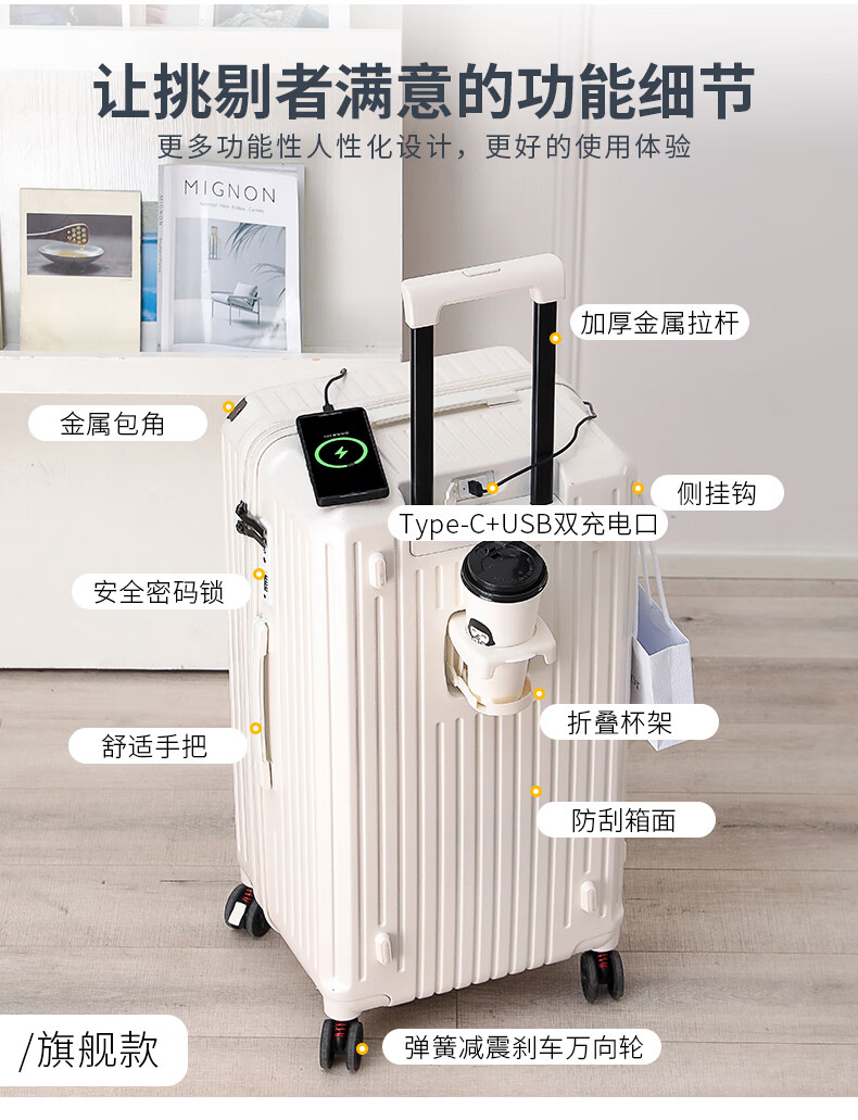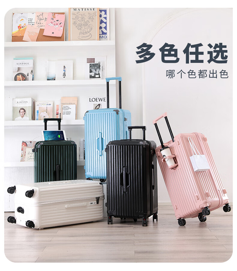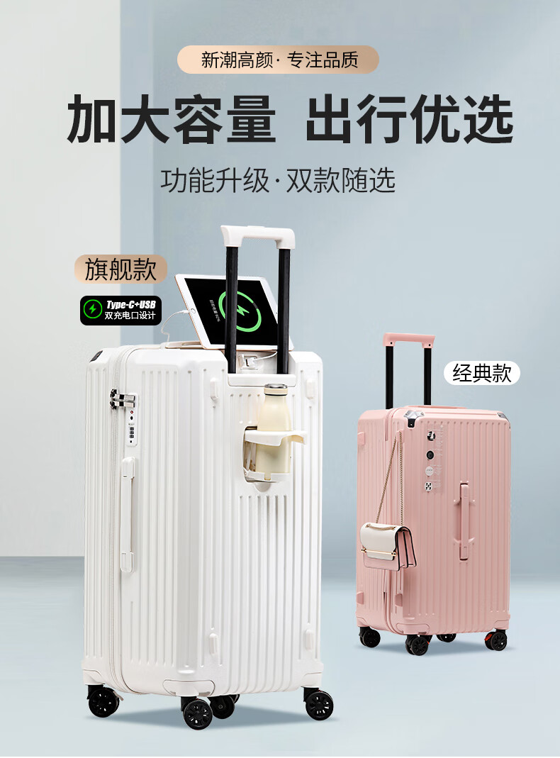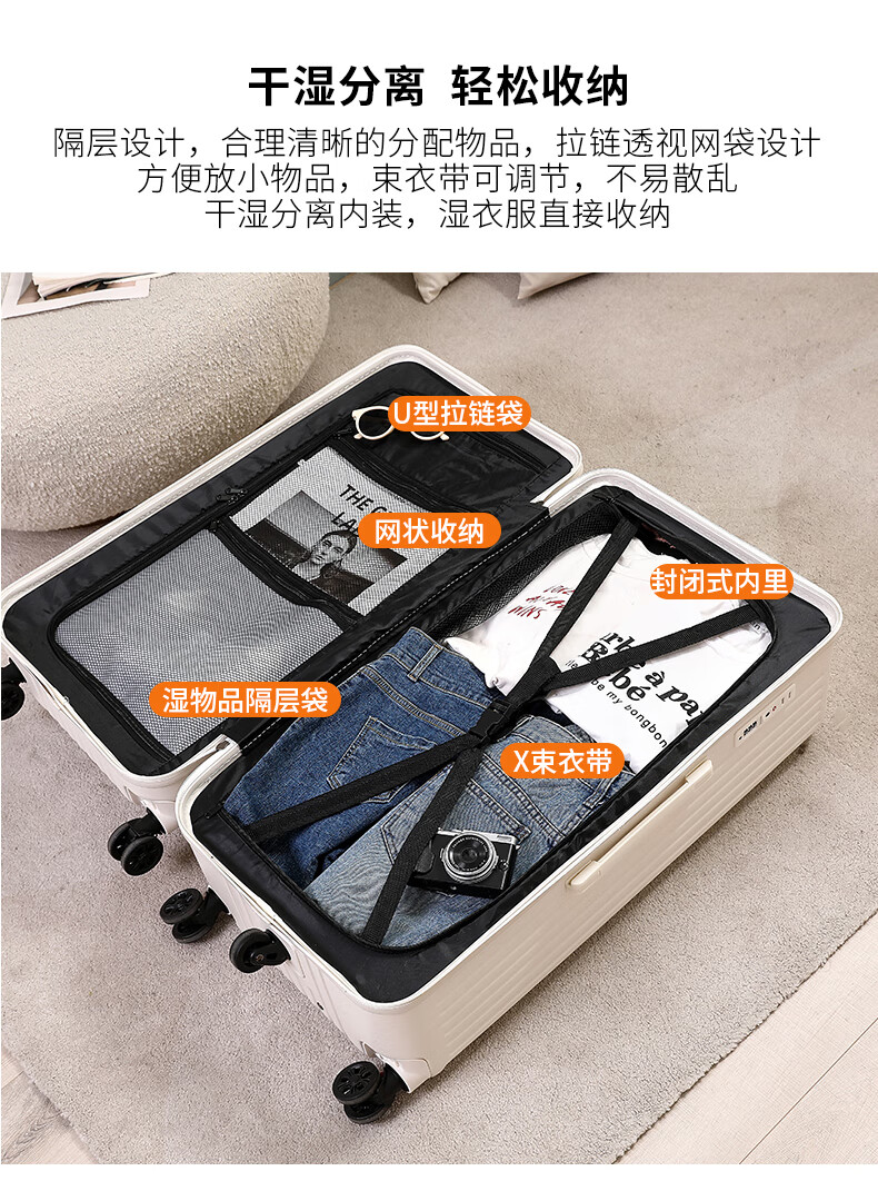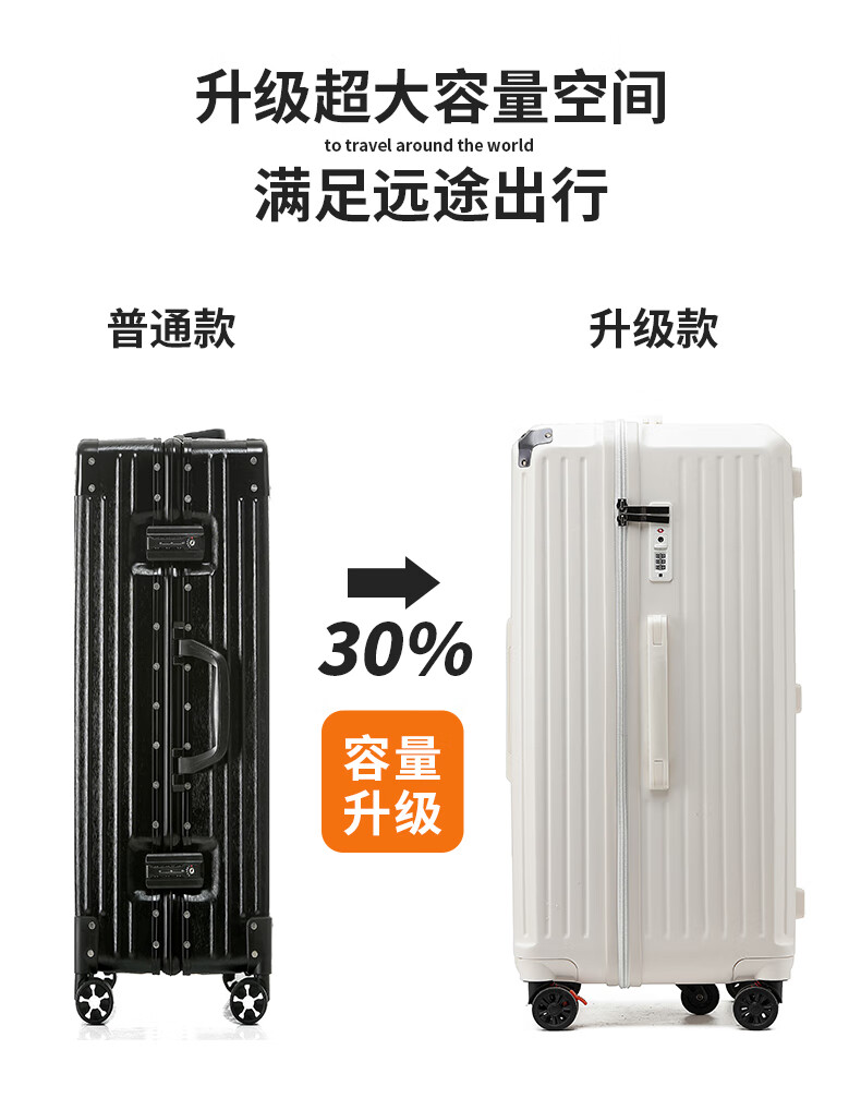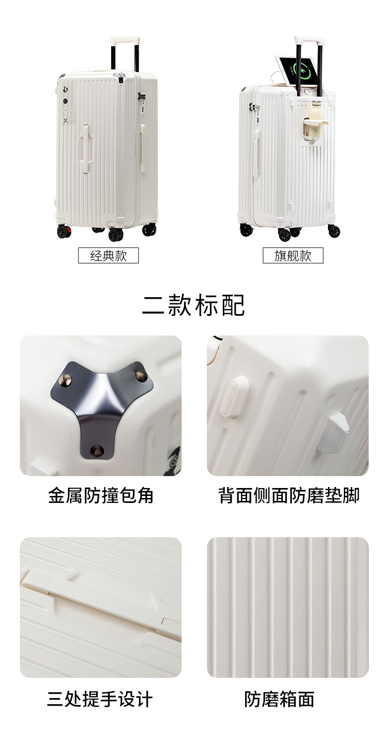 Youerlen suitcase, multifunctional trolley case, extra large capacity, coded five-wheel suitcase, fashionable and trendy, men and women can board the plane, Haoyue white classic model, with hook, brake wheel, spring shock absorption, 26 inches, 37-point case, extra large capacity