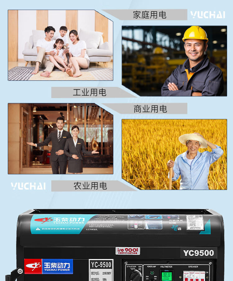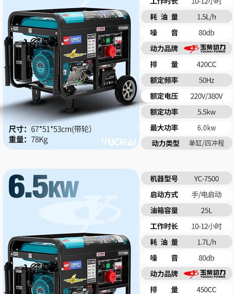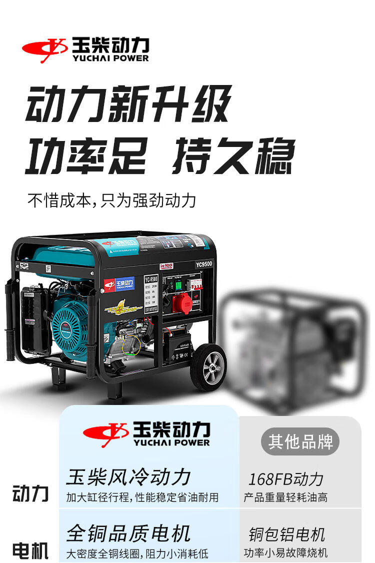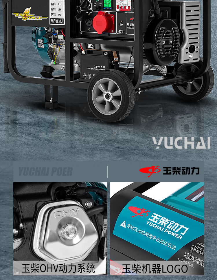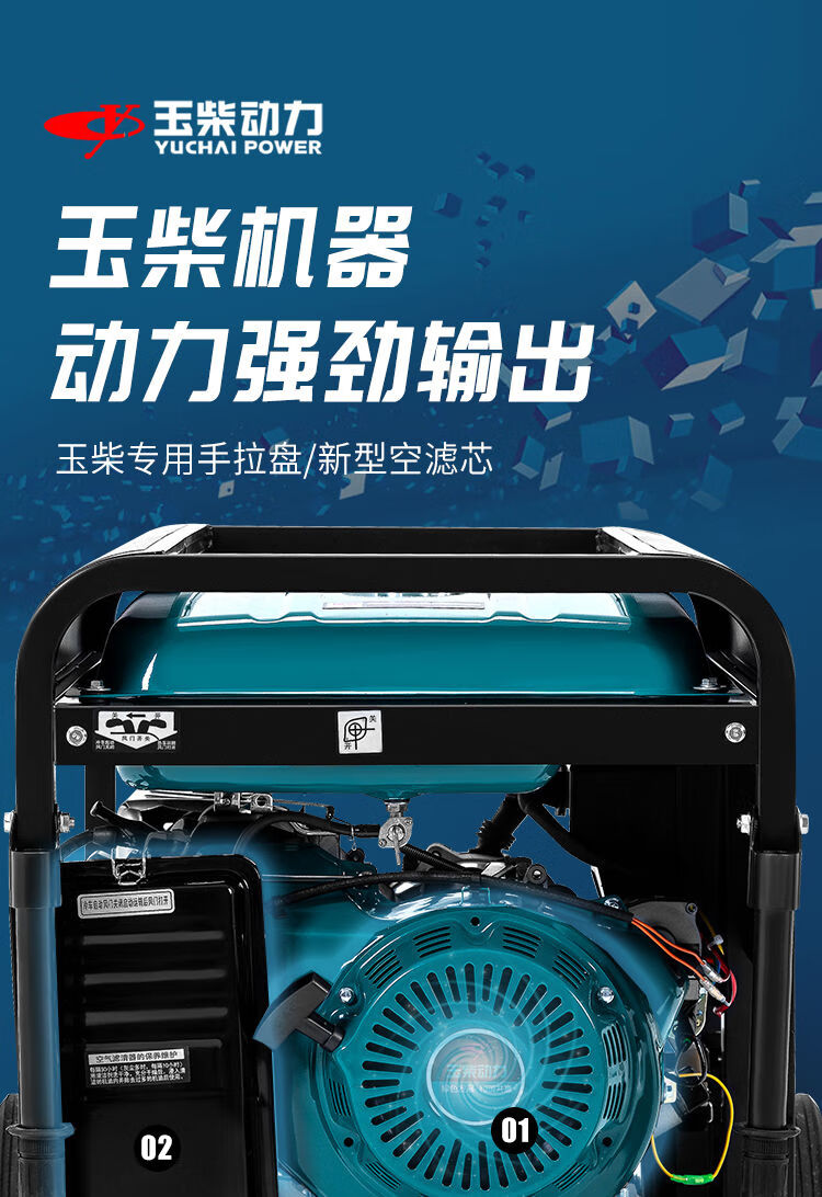 Yuchai gasoline generator 220V household small 3/5/6/8/10KW kilowatt single three-phase 380v outdoor new Yuchai 10kw dual voltage + multi-fuel