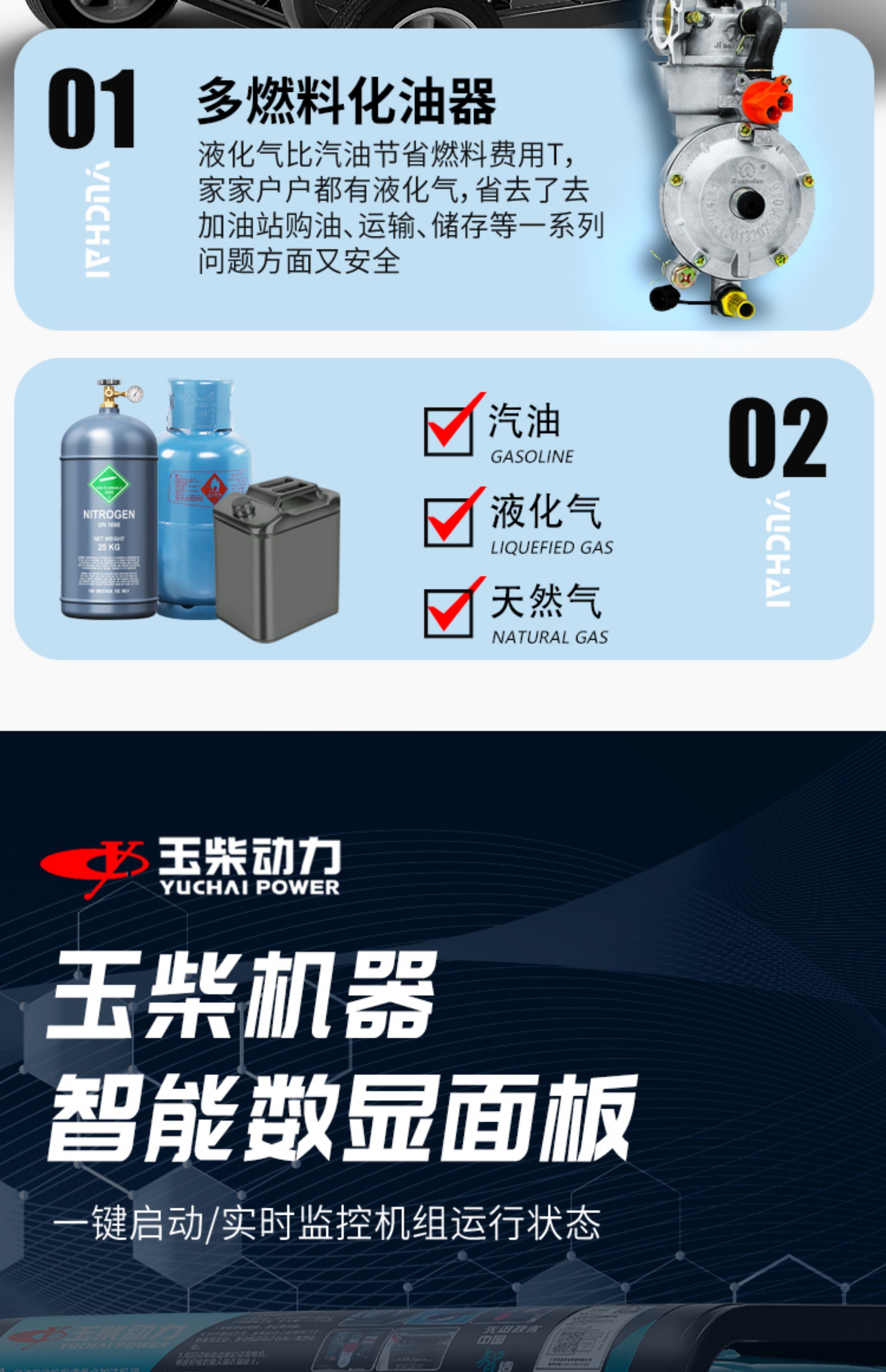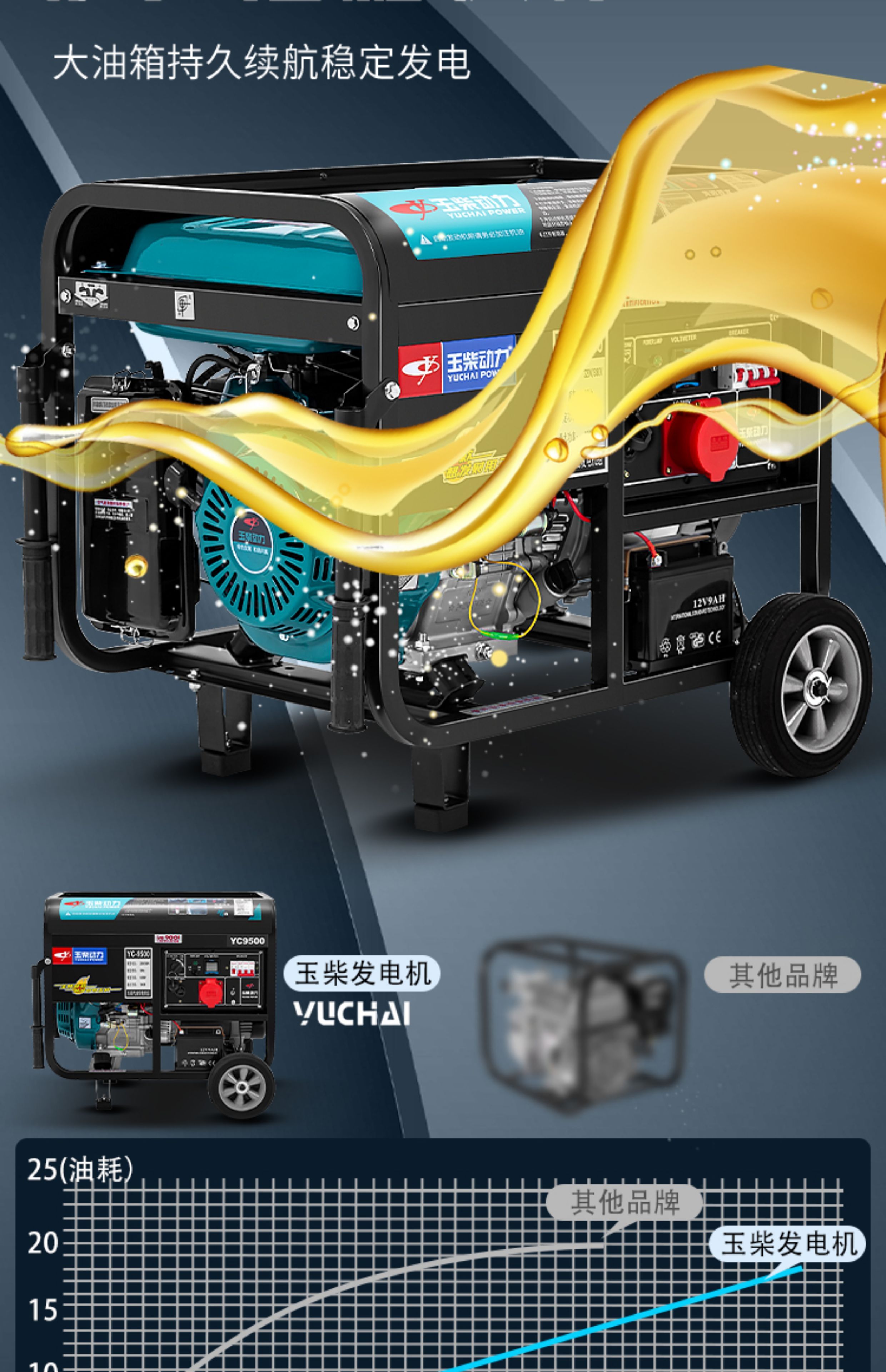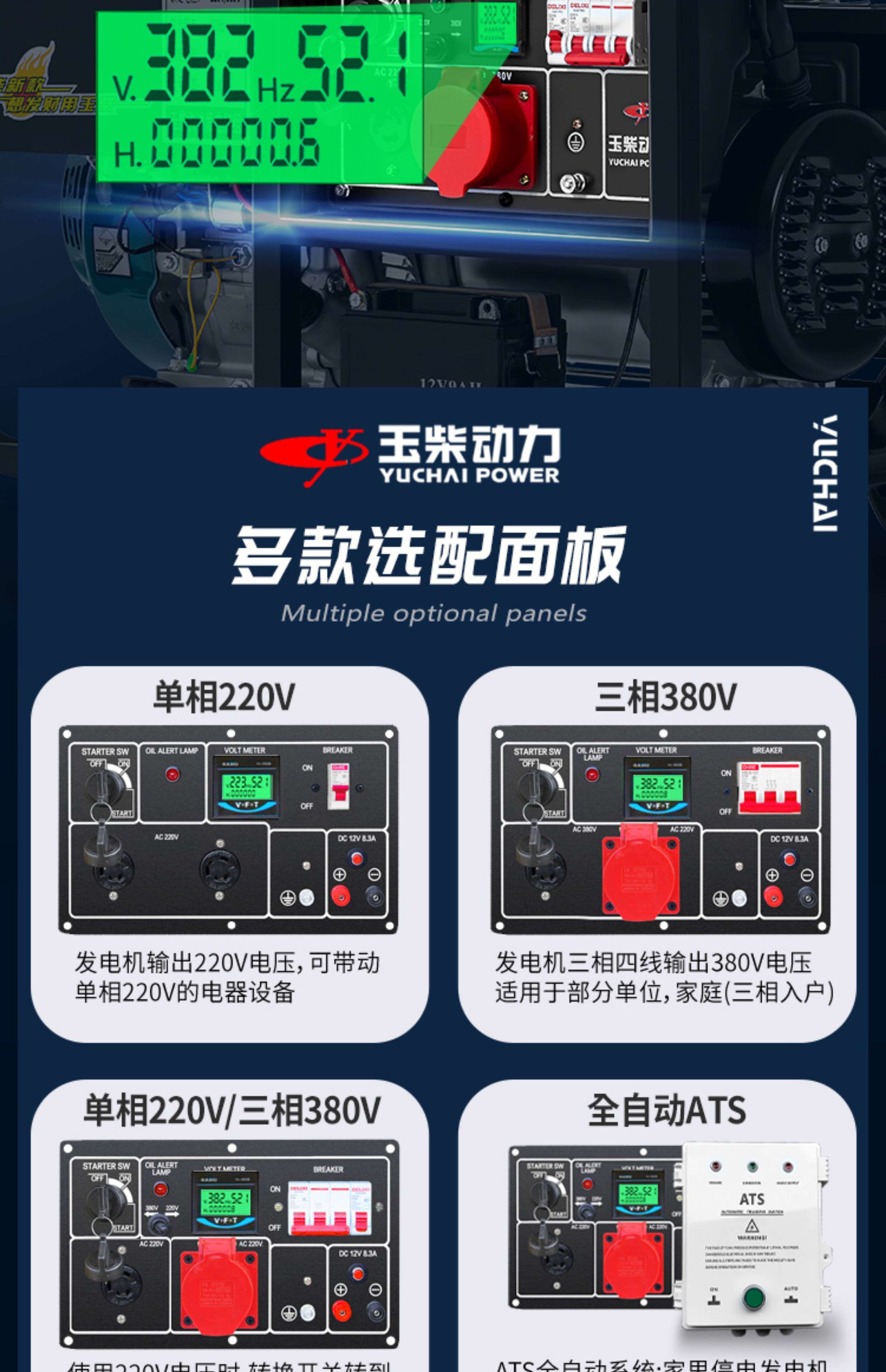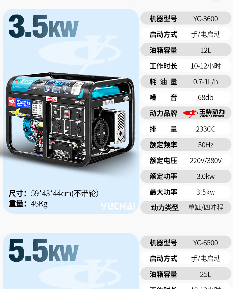 Yuchai gasoline generator 220V household small 3/5/6/8/10KW kilowatt single three-phase 380v outdoor new Yuchai 10kw dual voltage + multi-fuel