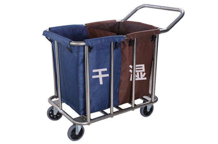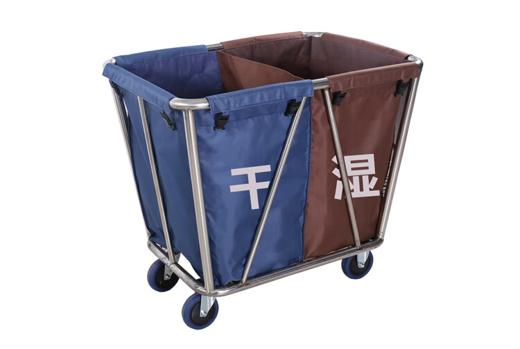 Kaosen Hotel Room Dry and Wet Classification Stainless Steel Dirty Linen Racing Service Car Laundry Collection Trolley Recycling Disassembly and Assembly (A)-4-inch Wheel
