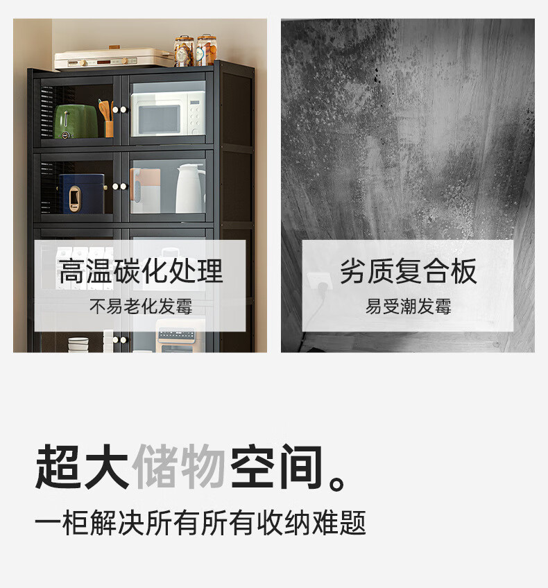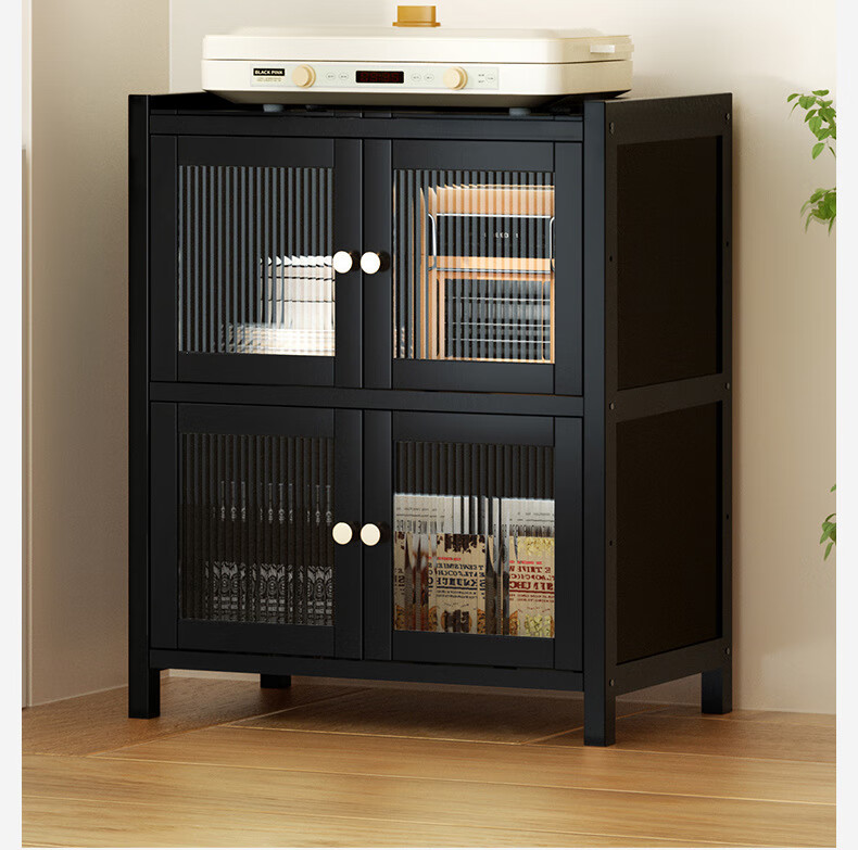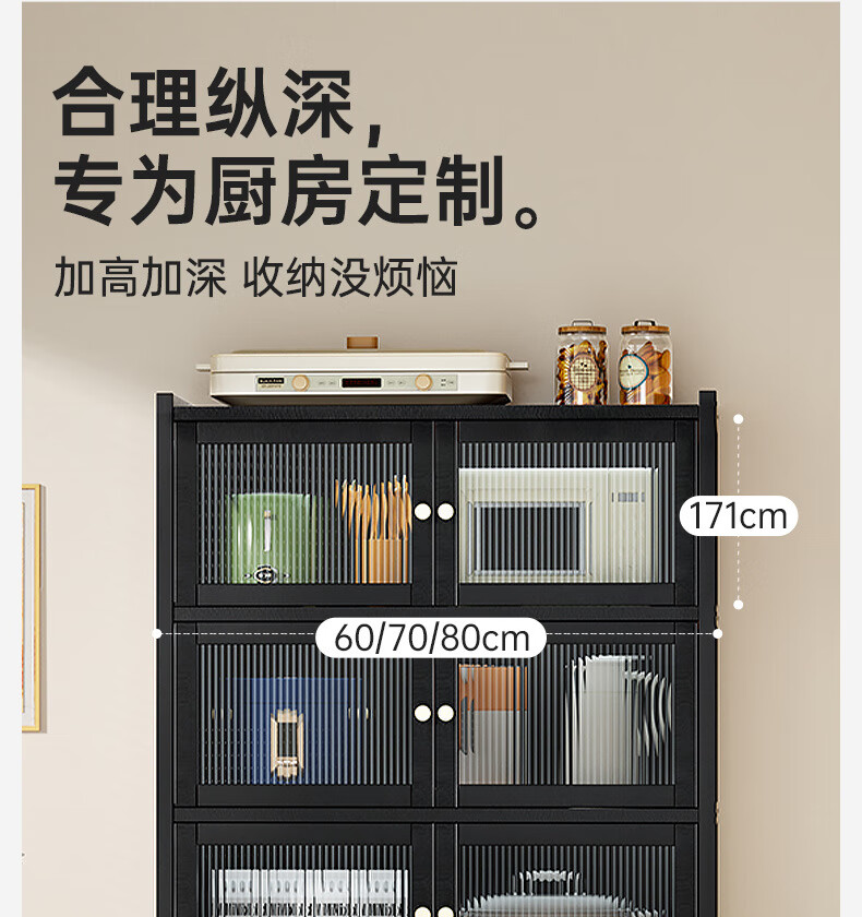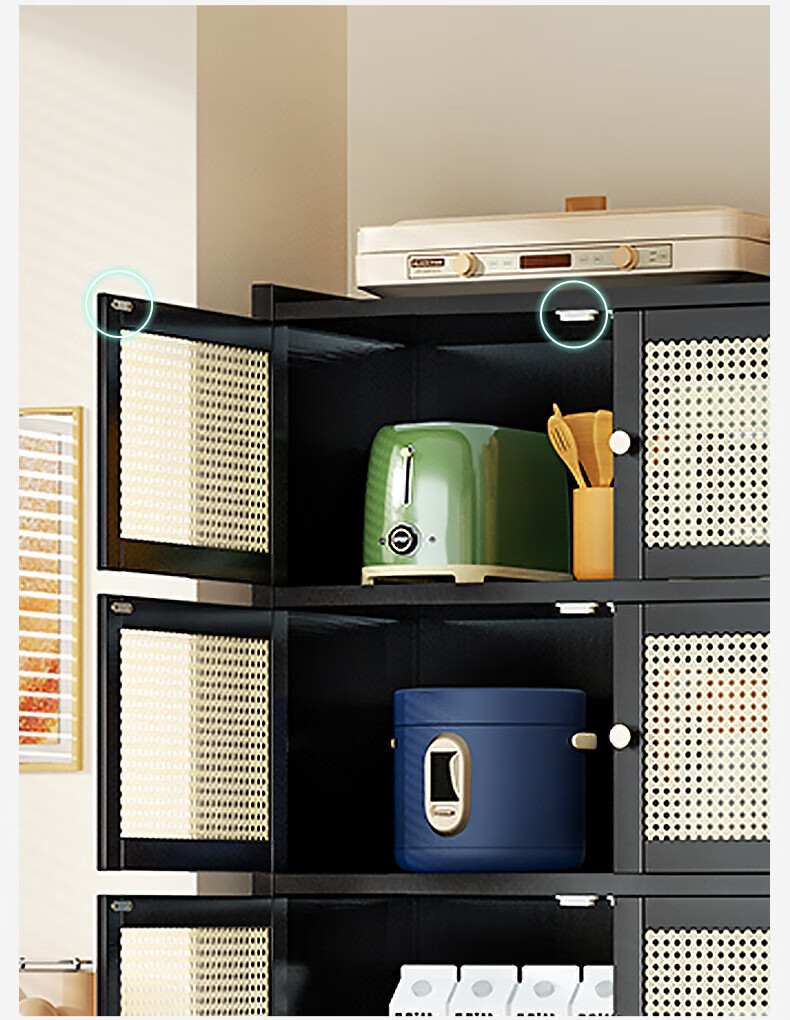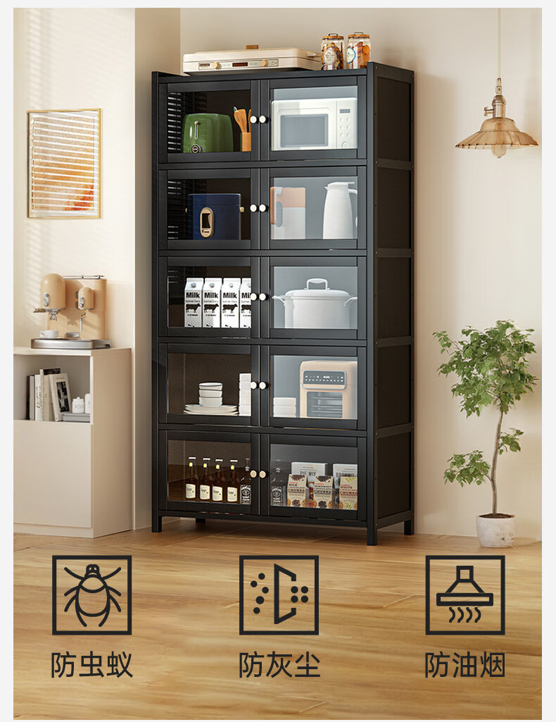 Multifunctional sideboard household kitchen cabinet with door simple dust-proof storage living room side cabinet storage tea cabinet black-six layers-plastic rattan door-80cm multiple specifications
