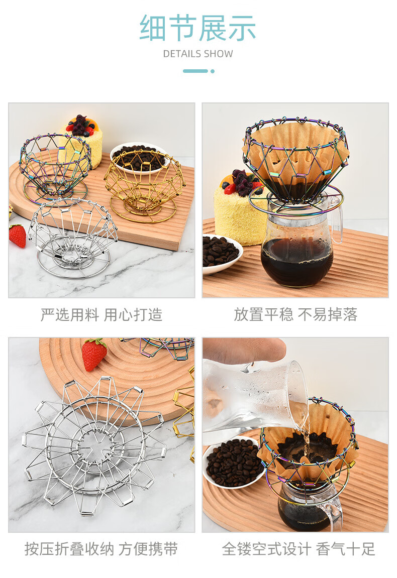 304 stainless steel coffee stand coffee filter hand brewed coffee drip stand Nordic outdoor folding portable filter cup silver