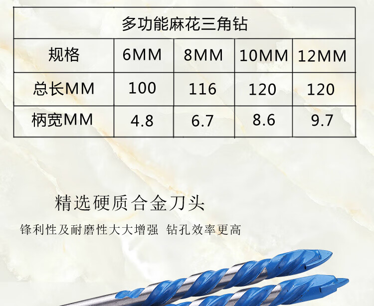 Mihong ceramic tile drilling bit 6mm hardened alloy triangle drill bit all-ceramic concrete brick wall special hand drill bit 8mm one pack