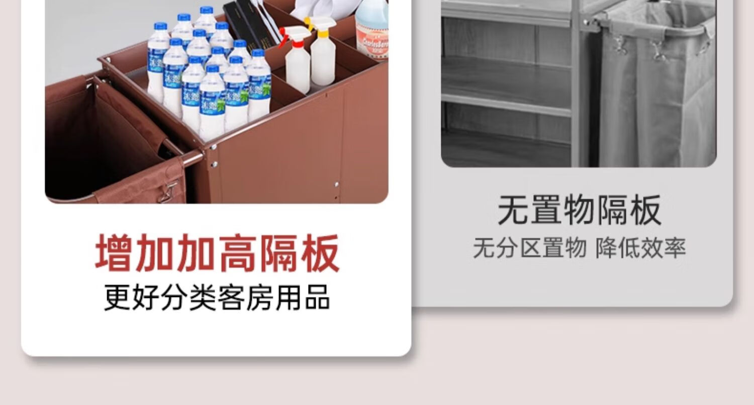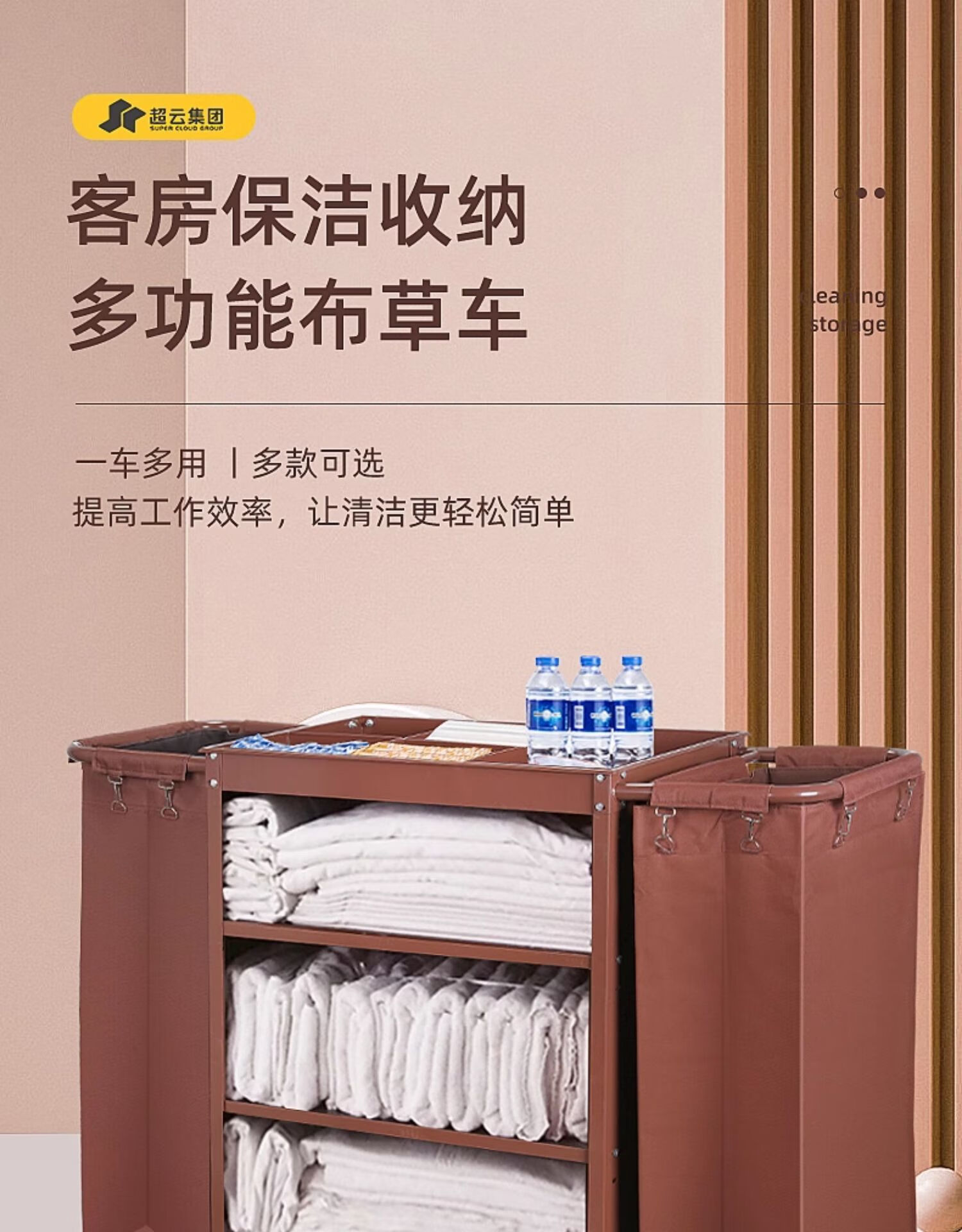 Huili's linen cart, hotel work cart, guest room special cleaning, multi-functional storage, cleaning service, cleaning trolley, carpet silent double-sided long bag type (5-inch polyester wheel)