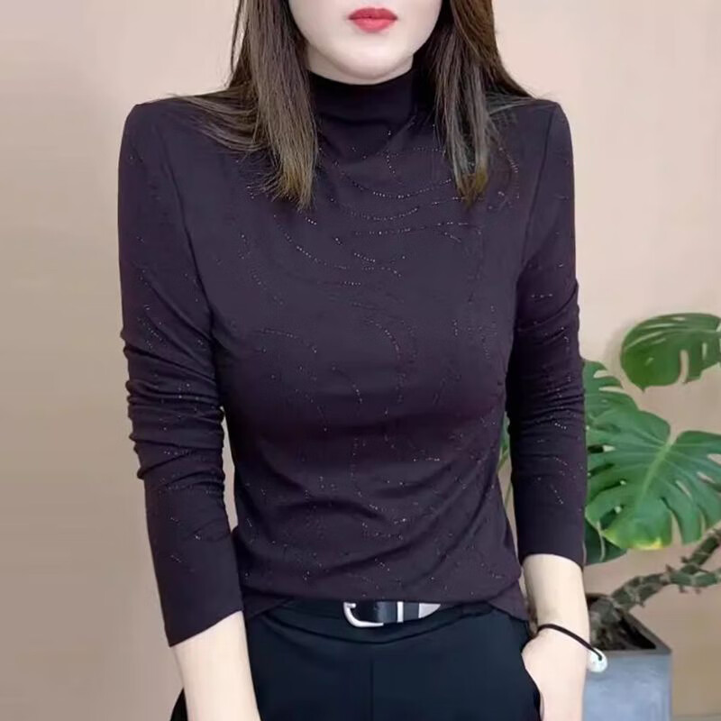Xia Dian Suding Queen (SE.PSTP) Half Turtle Collar German Velvet Bottoming Shirt Women's Autumn and Winter Fashionable Western Wave Pattern Hot Diamond Mother's Top Temperament Small Shirt Trendy Dark Red XL 110 to 125 Jin