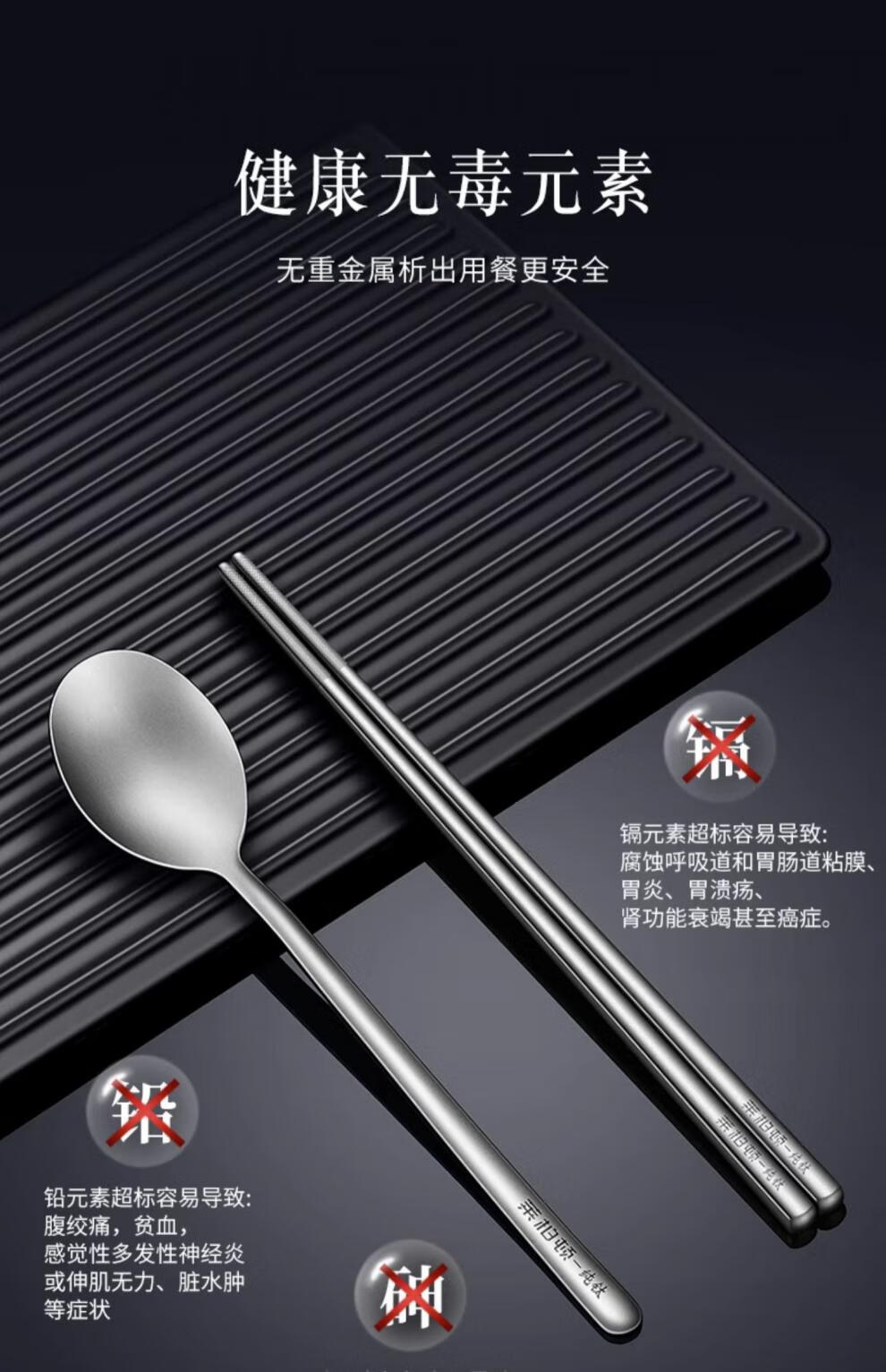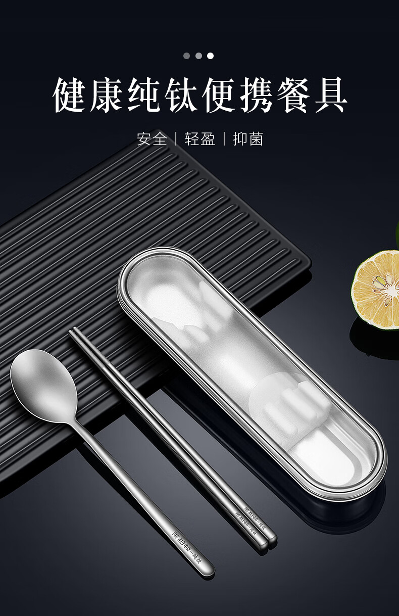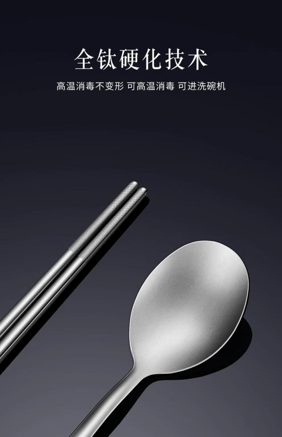 Pure titanium chopsticks, spoons, forks, three-piece set, portable cutlery box, student storage box for one person, titanium chopsticks + titanium spoon (free portable bag for collection orders)