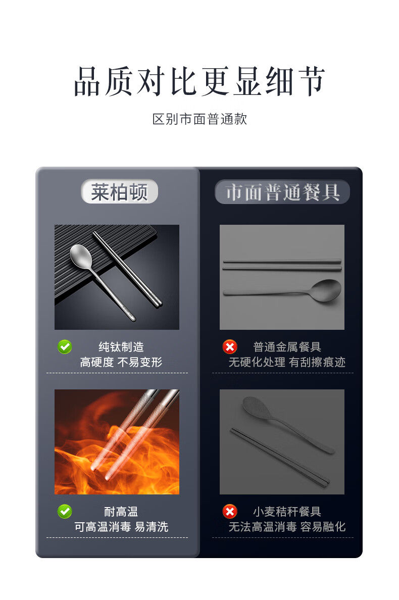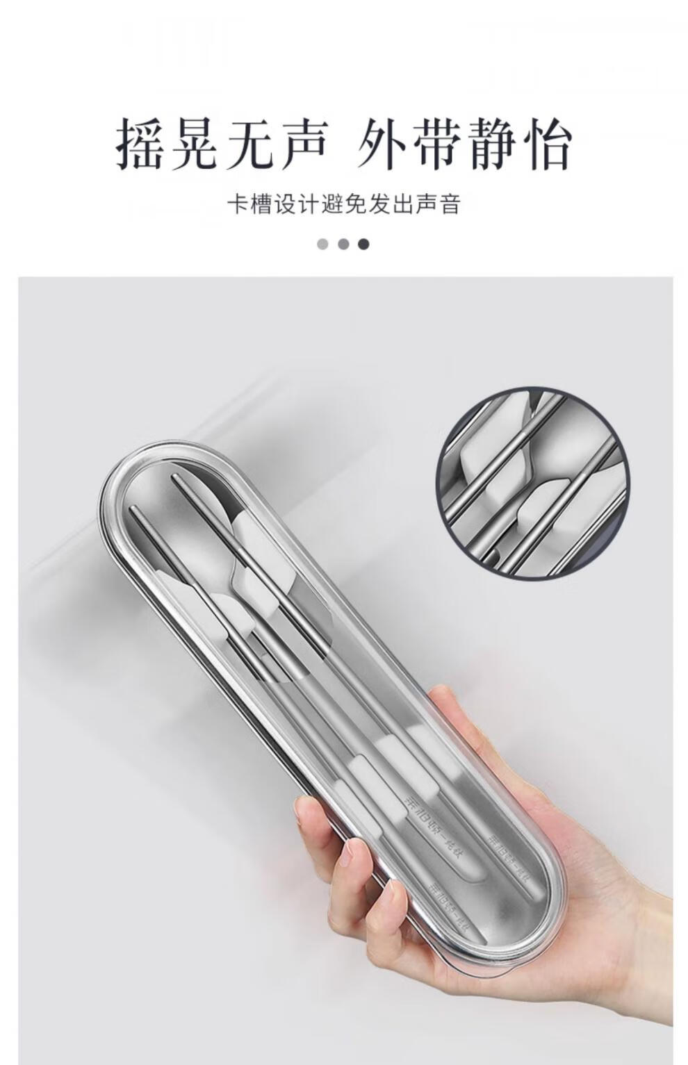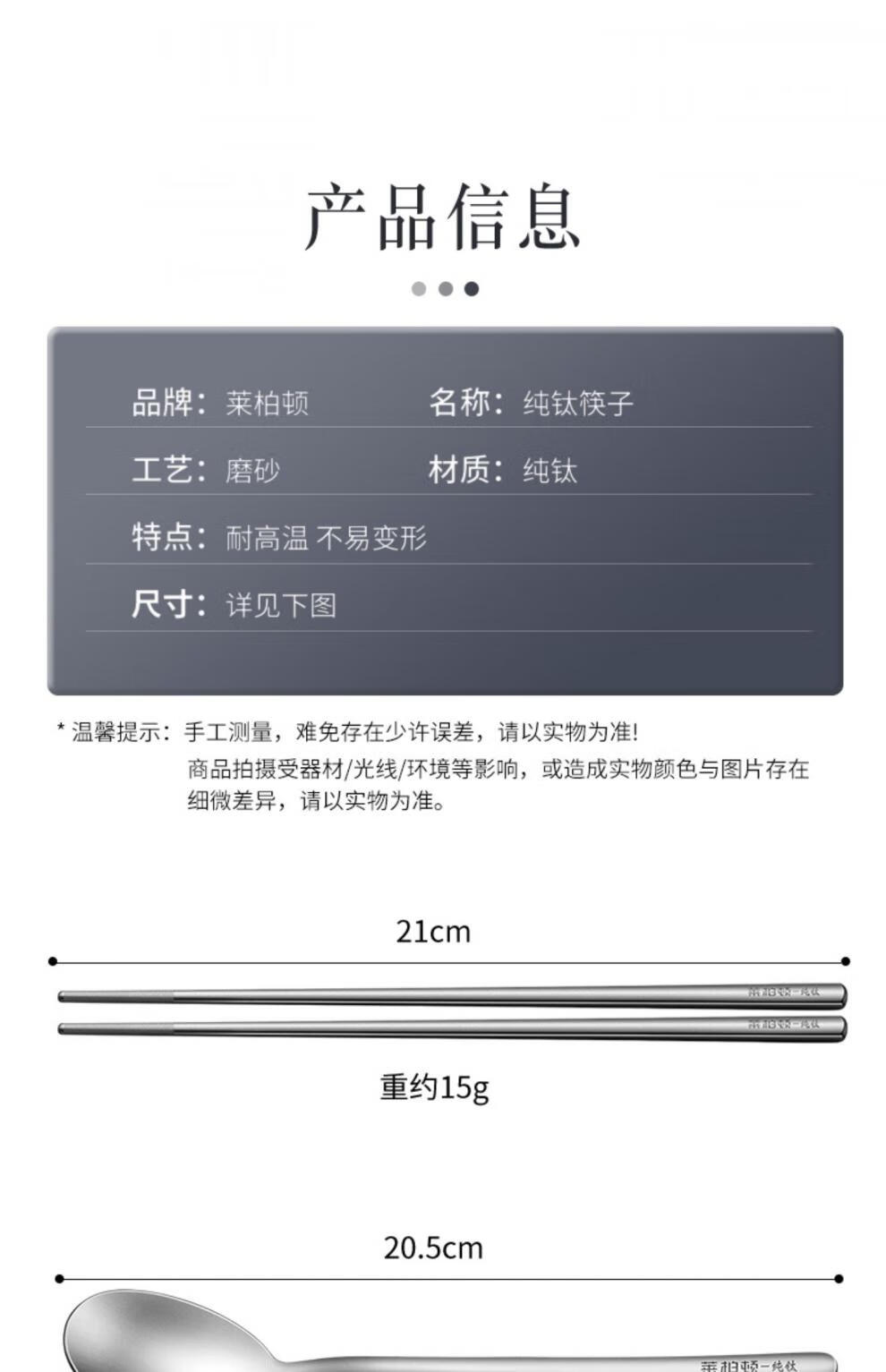 Pure titanium chopsticks, spoons, forks, three-piece set, portable cutlery box, student storage box for one person, titanium chopsticks + titanium spoon (free portable bag for collection orders)