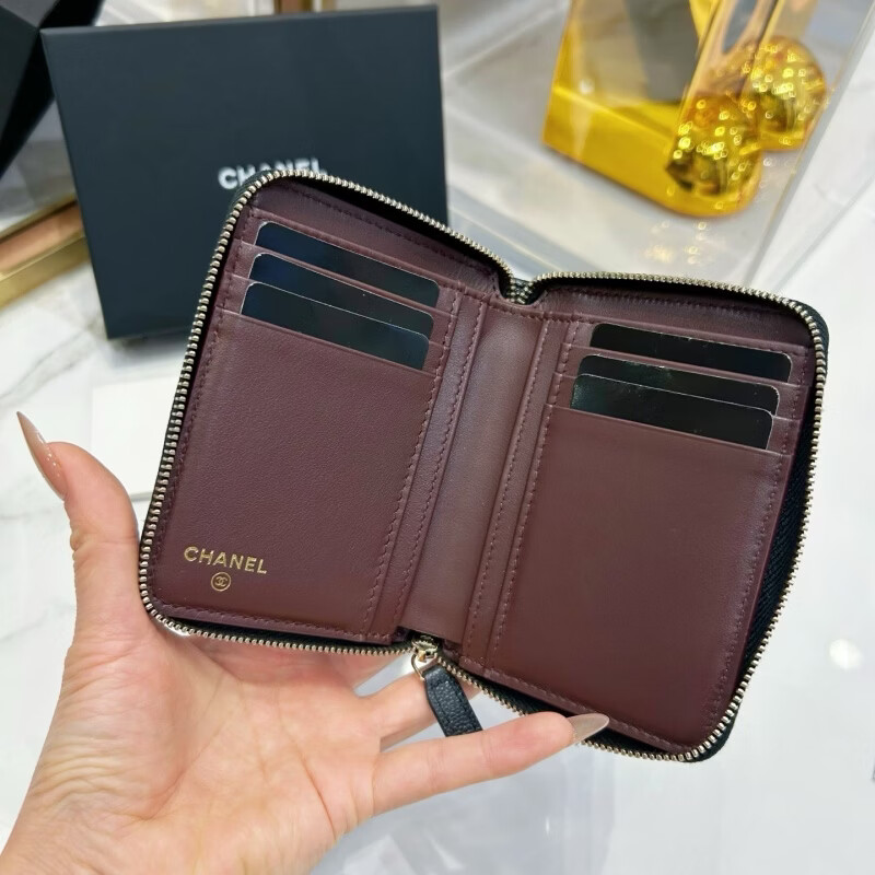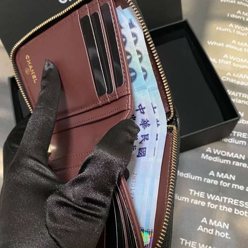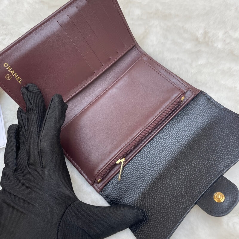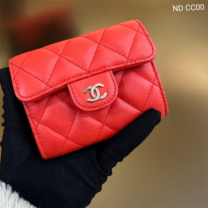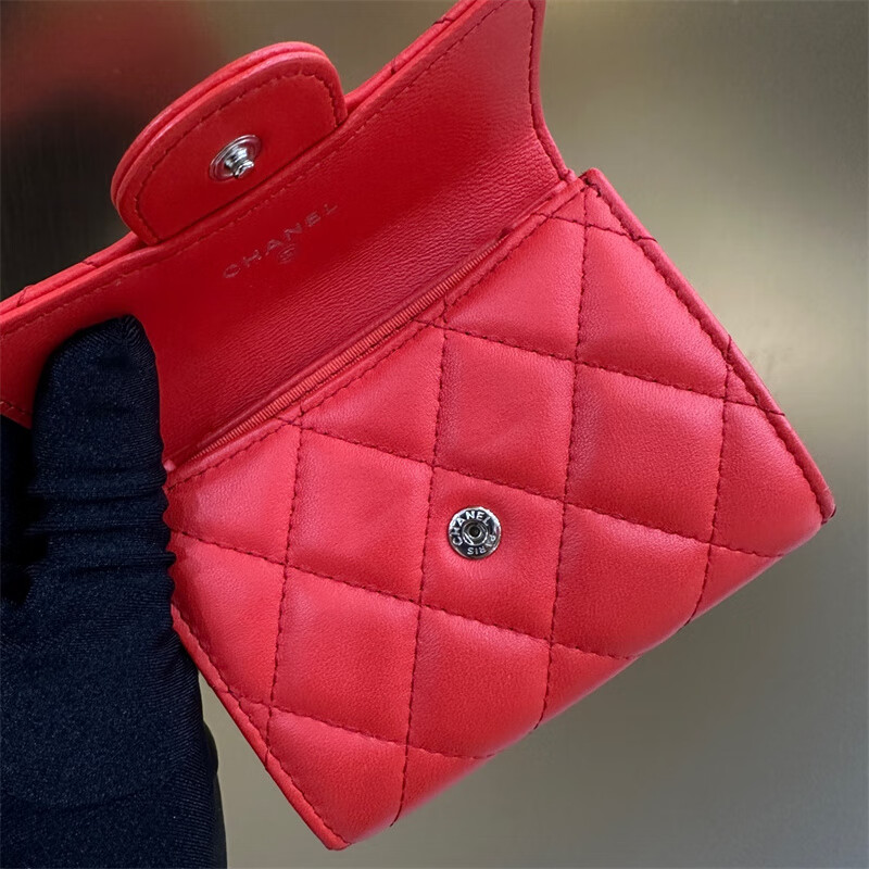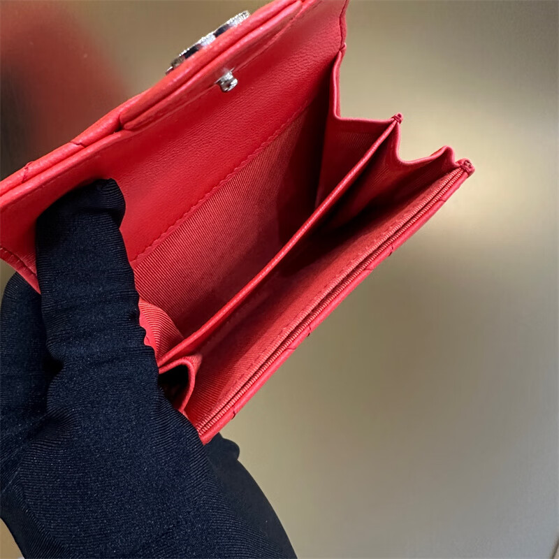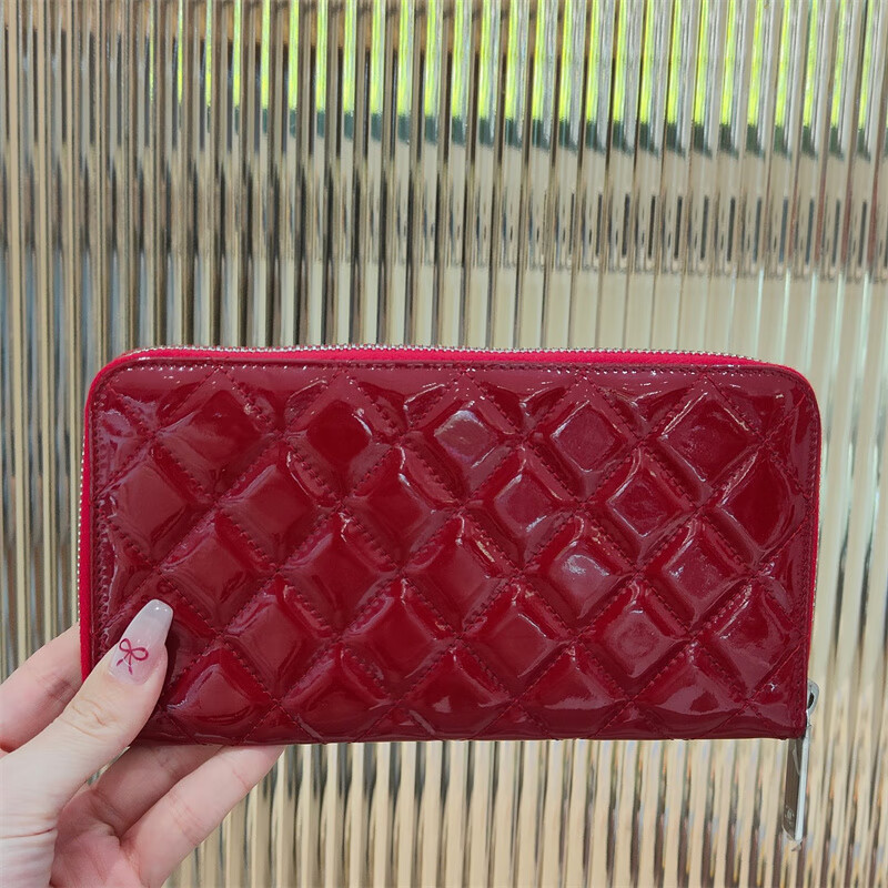 Second-hand 99 new Chanel cherry color patent leather long wallet long and short women's wallet 98 new Chanel diamond caviar leather wallet