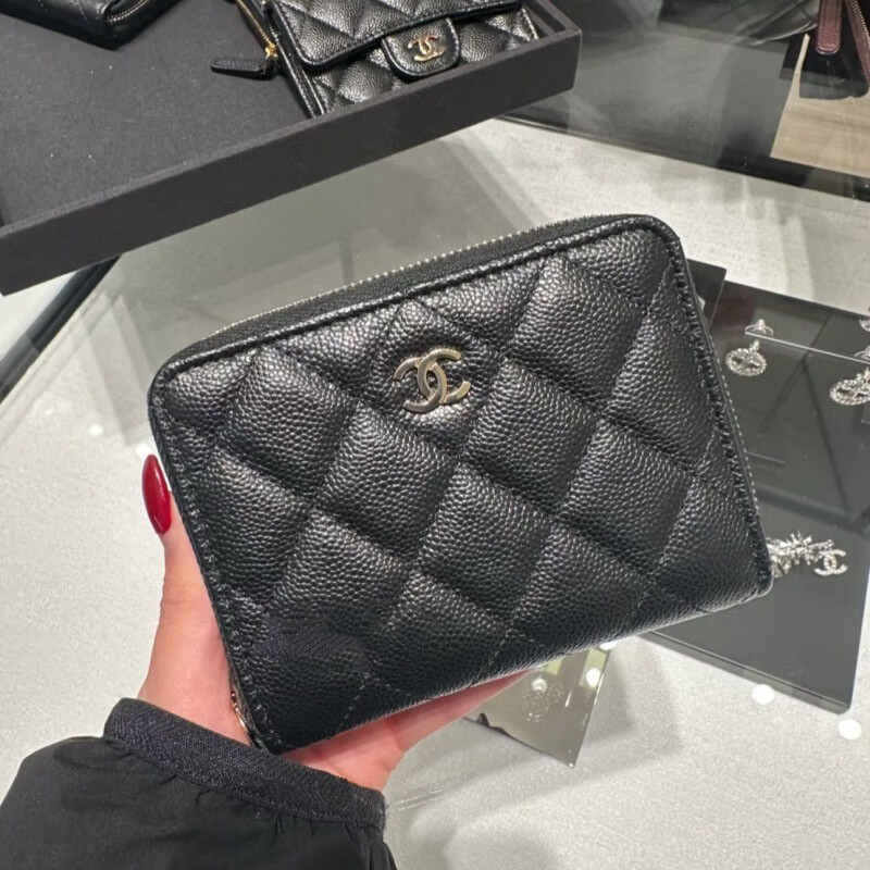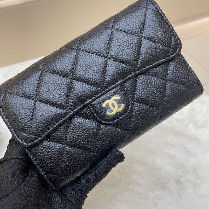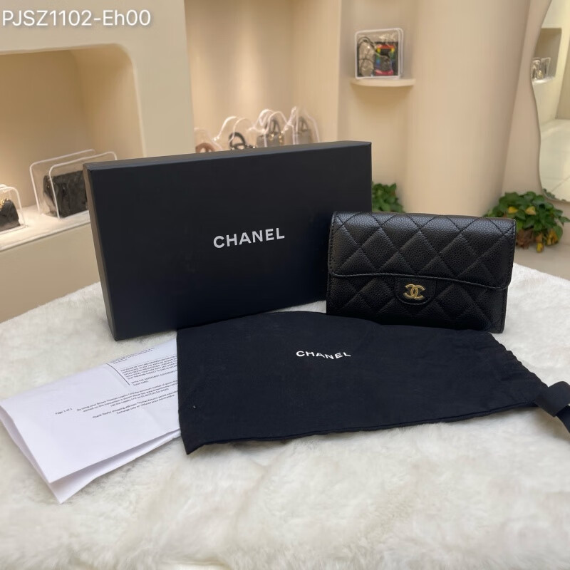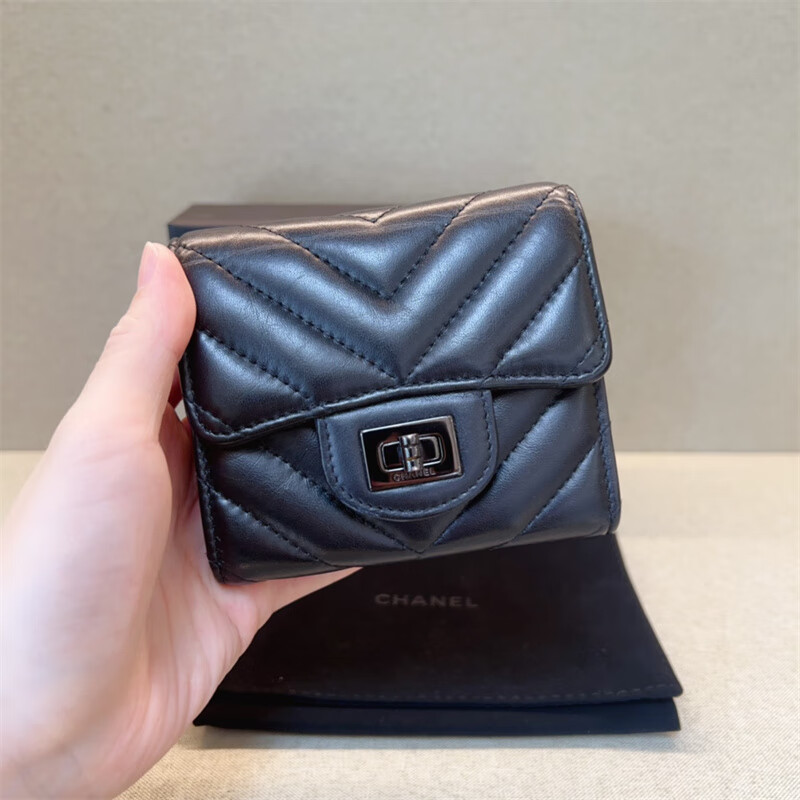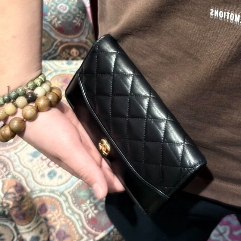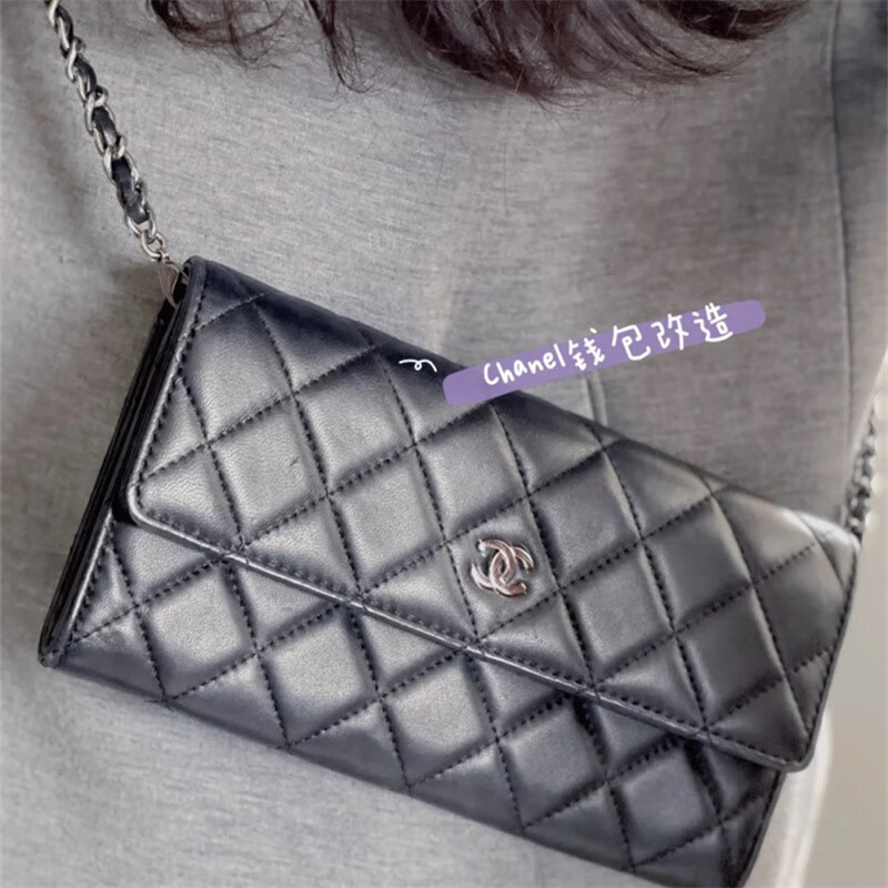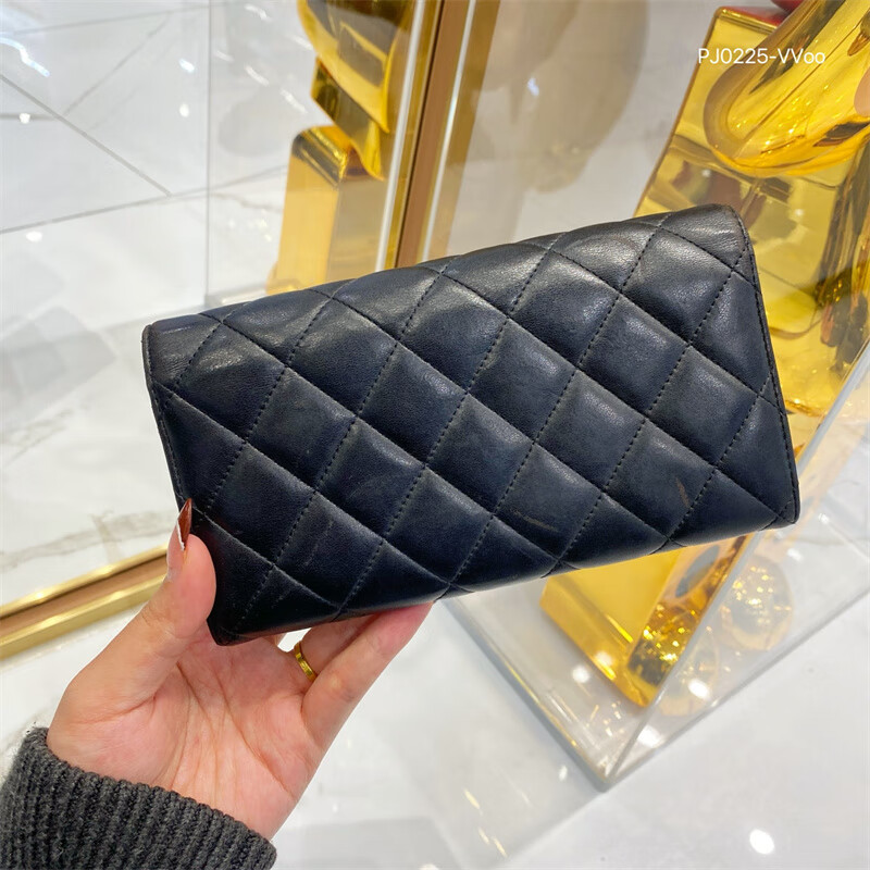 Second-hand 99 new Chanel cherry color patent leather long wallet long and short women's wallet 98 new Chanel diamond caviar leather wallet