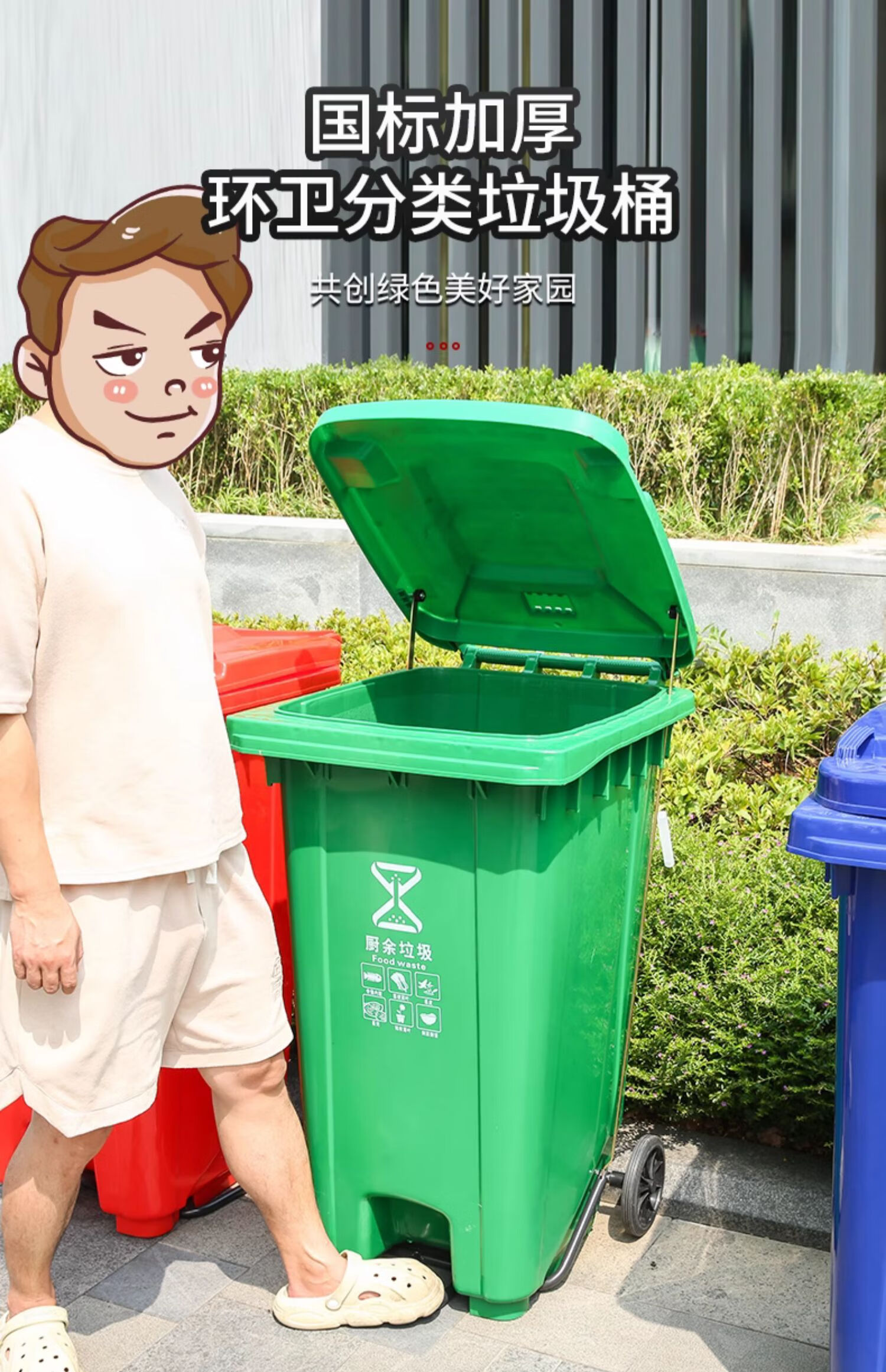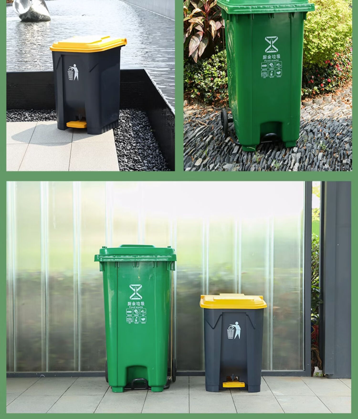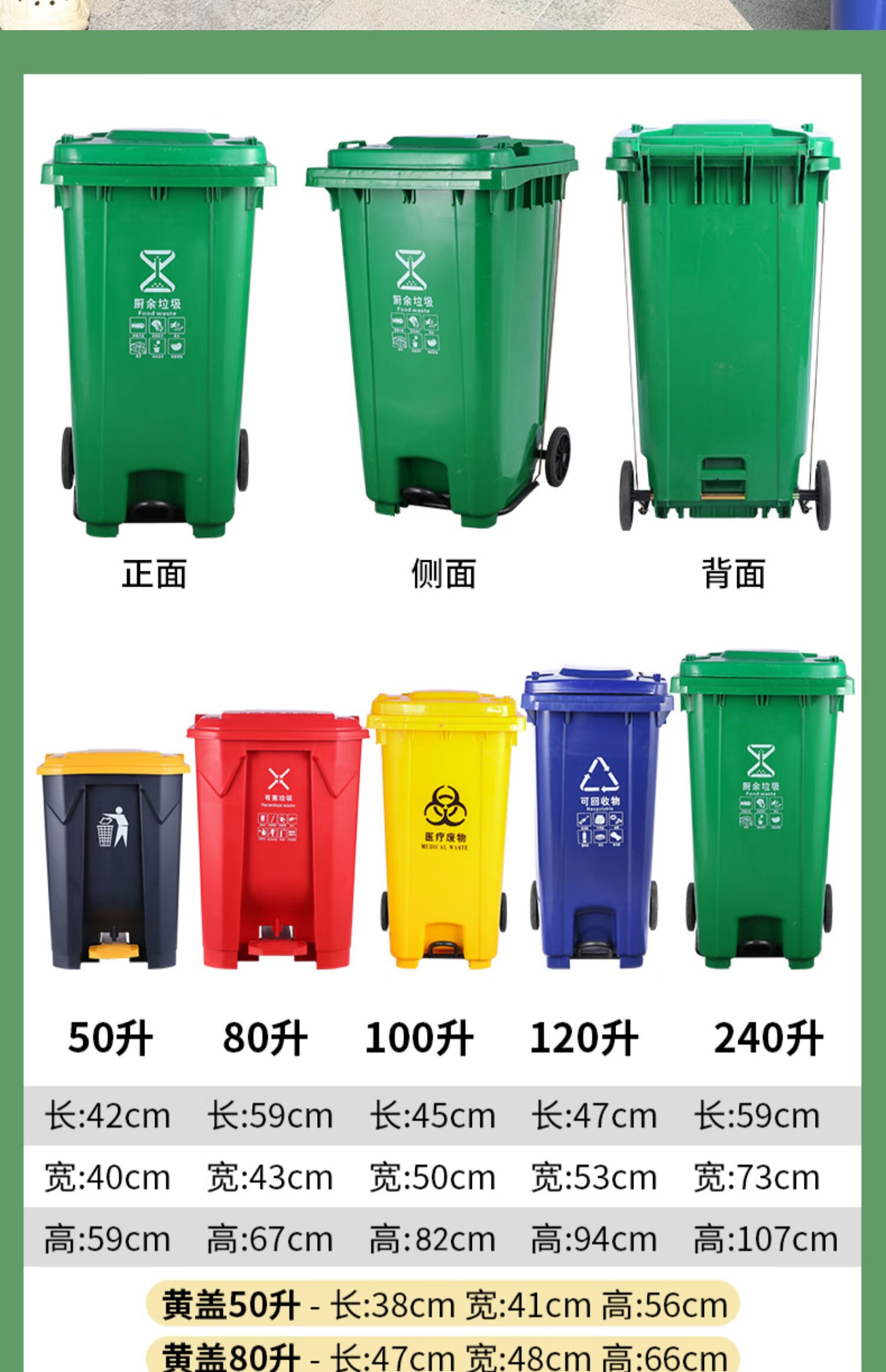 Trash can large commercial outdoor sanitation classification bucket with lid thickened large capacity foot-operated trash can 240L household 240L extra thick middle foot-operated wet garbage brown