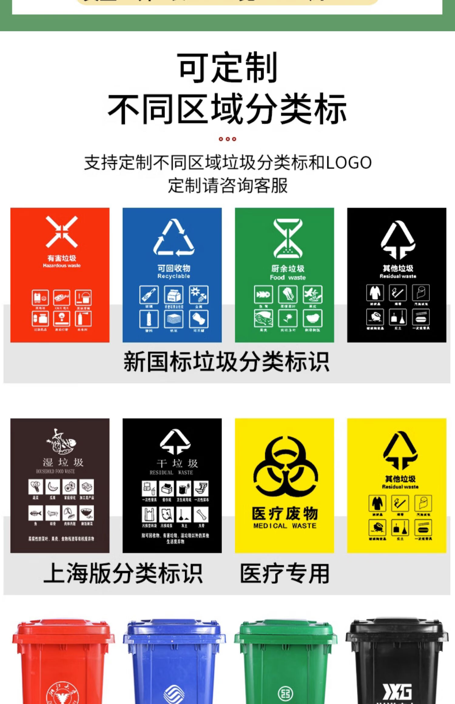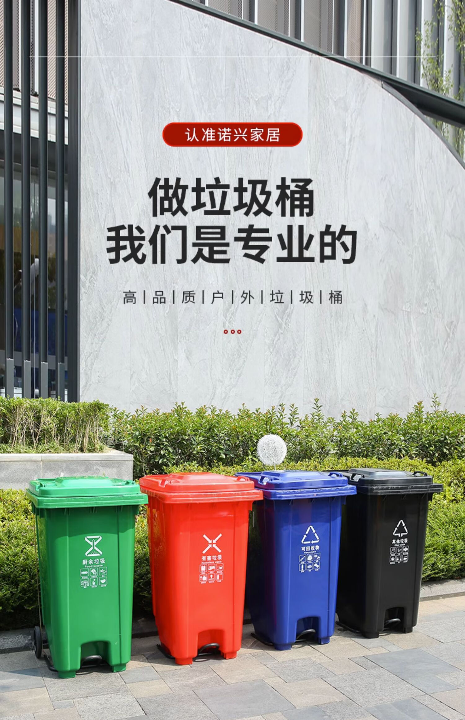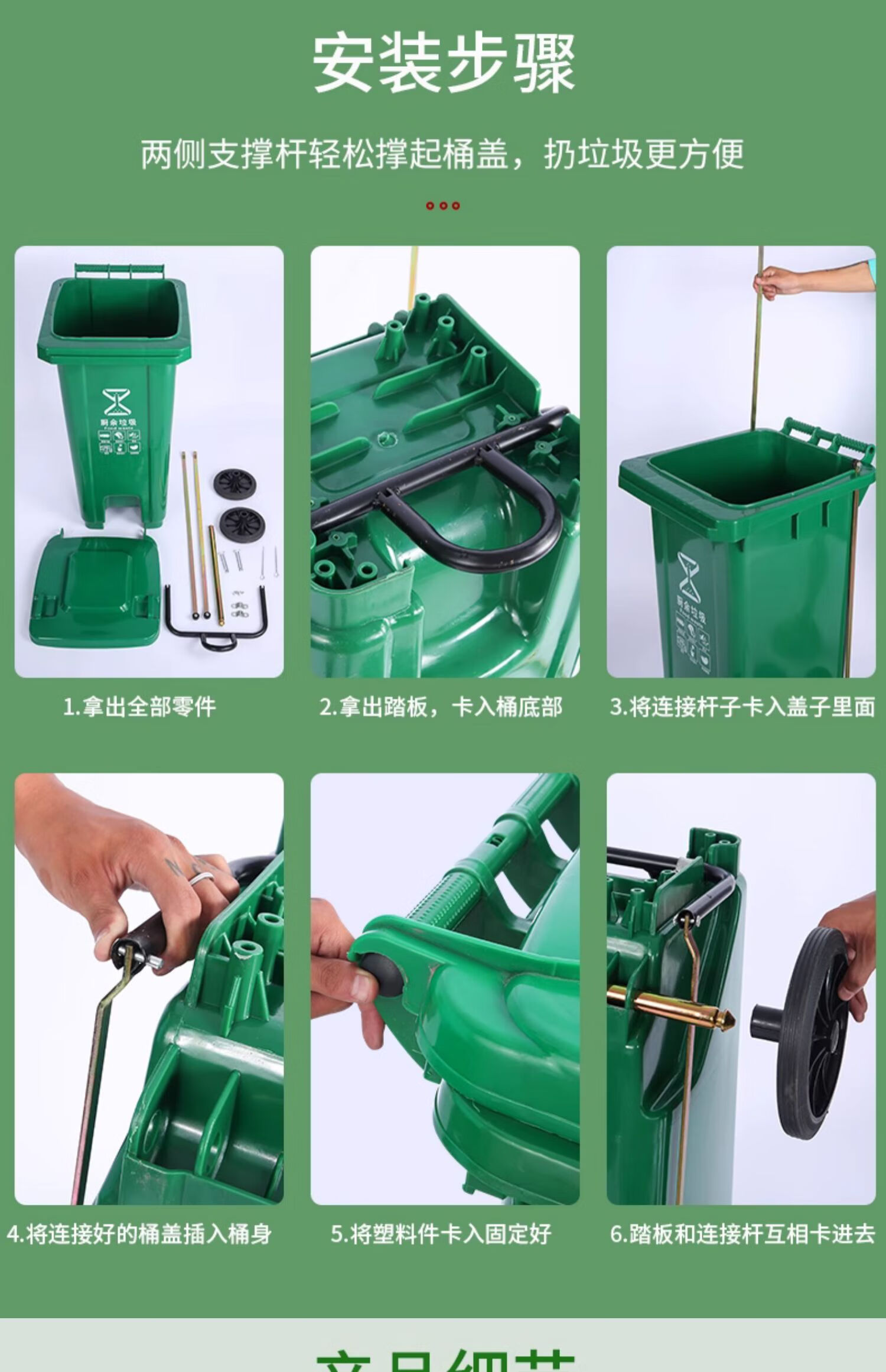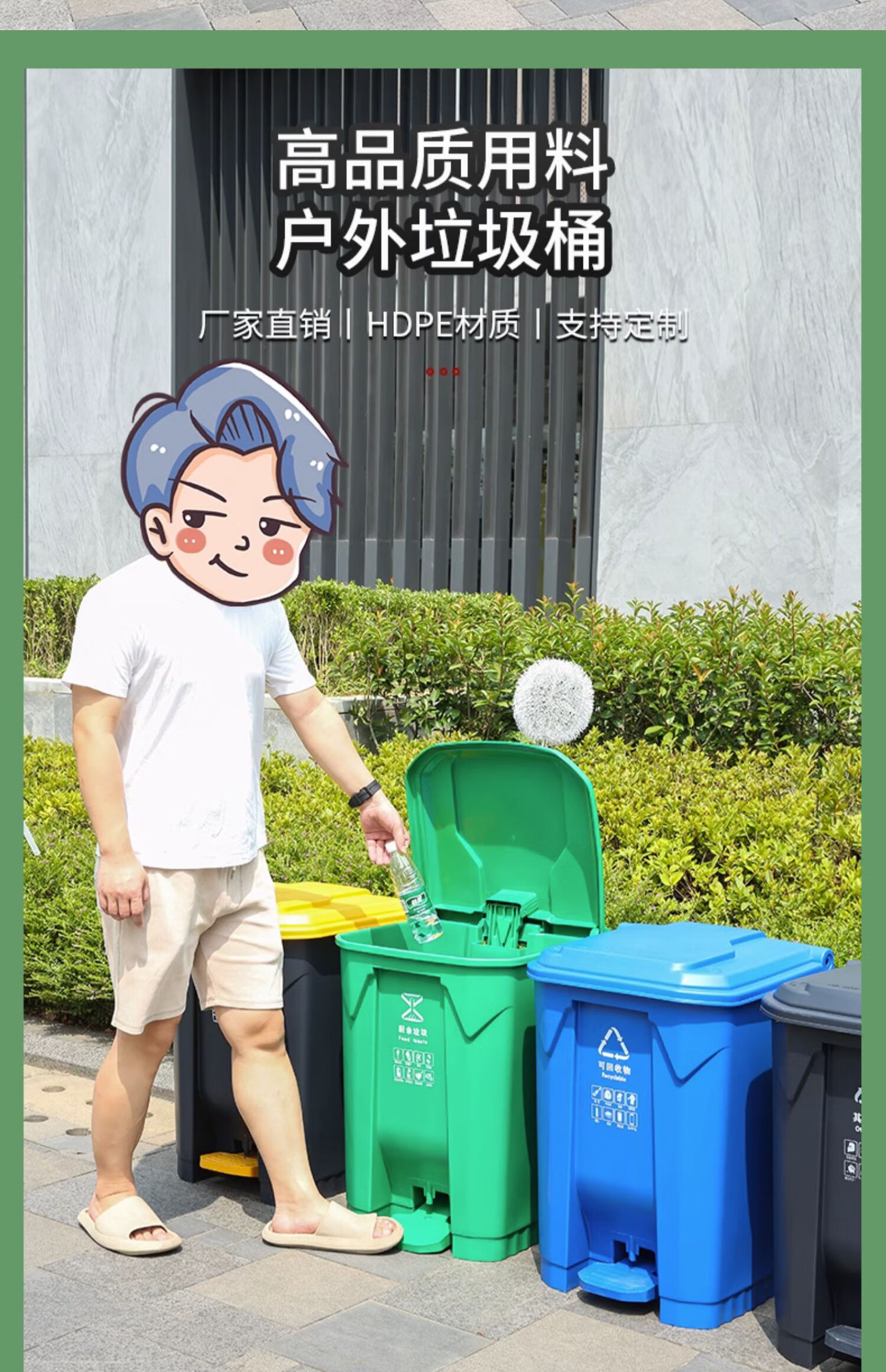 Trash can large commercial outdoor sanitation classification bucket with lid thickened large capacity foot-operated trash can 240L household 240L extra thick middle foot-operated wet garbage brown