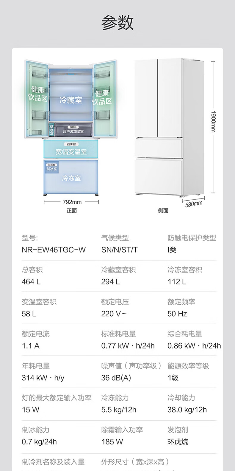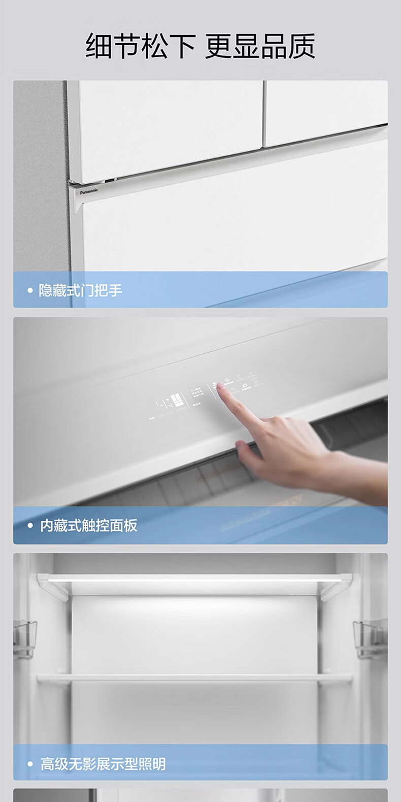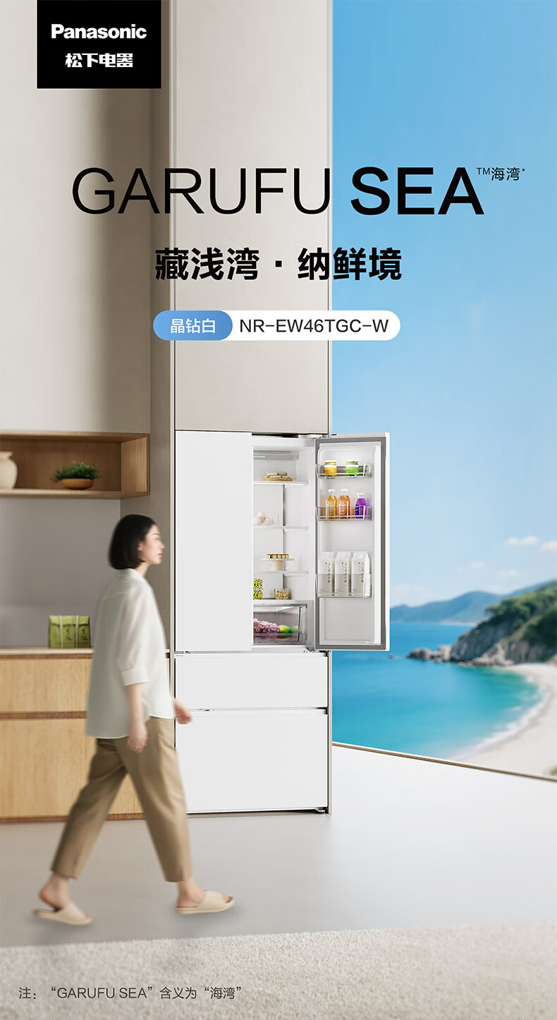 Panasonic's new subsidy Gulf French multi-door refrigerator 460 ultra-thin zero-embedded dual-system refrigerator air-cooled frost-free first-class energy efficiency NR-EW46TGC-W new Gulf 464L flat-embedded automatic ice making
