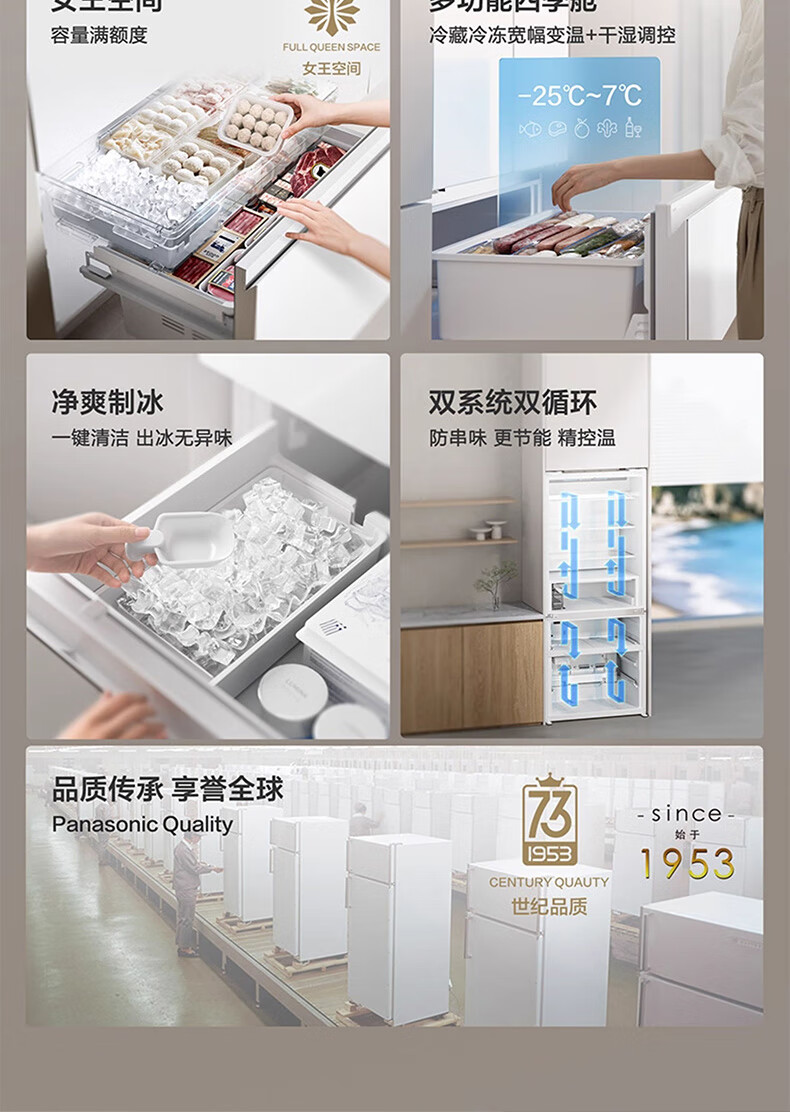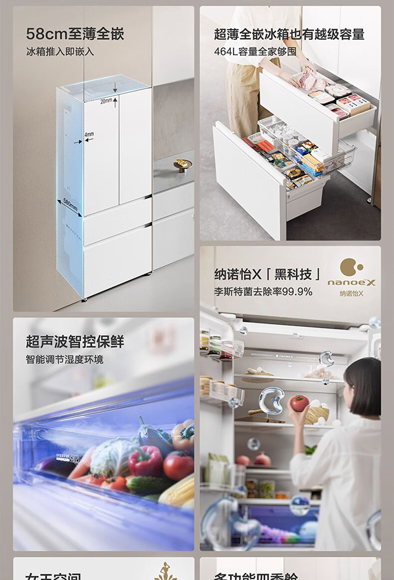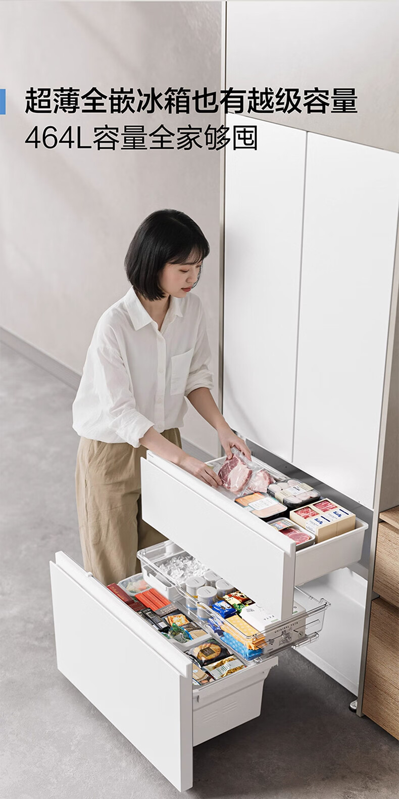 Panasonic's new subsidy Gulf French multi-door refrigerator 460 ultra-thin zero-embedded dual-system refrigerator air-cooled frost-free first-class energy efficiency NR-EW46TGC-W new Gulf 464L flat-embedded automatic ice making