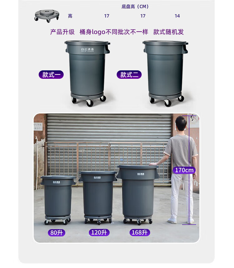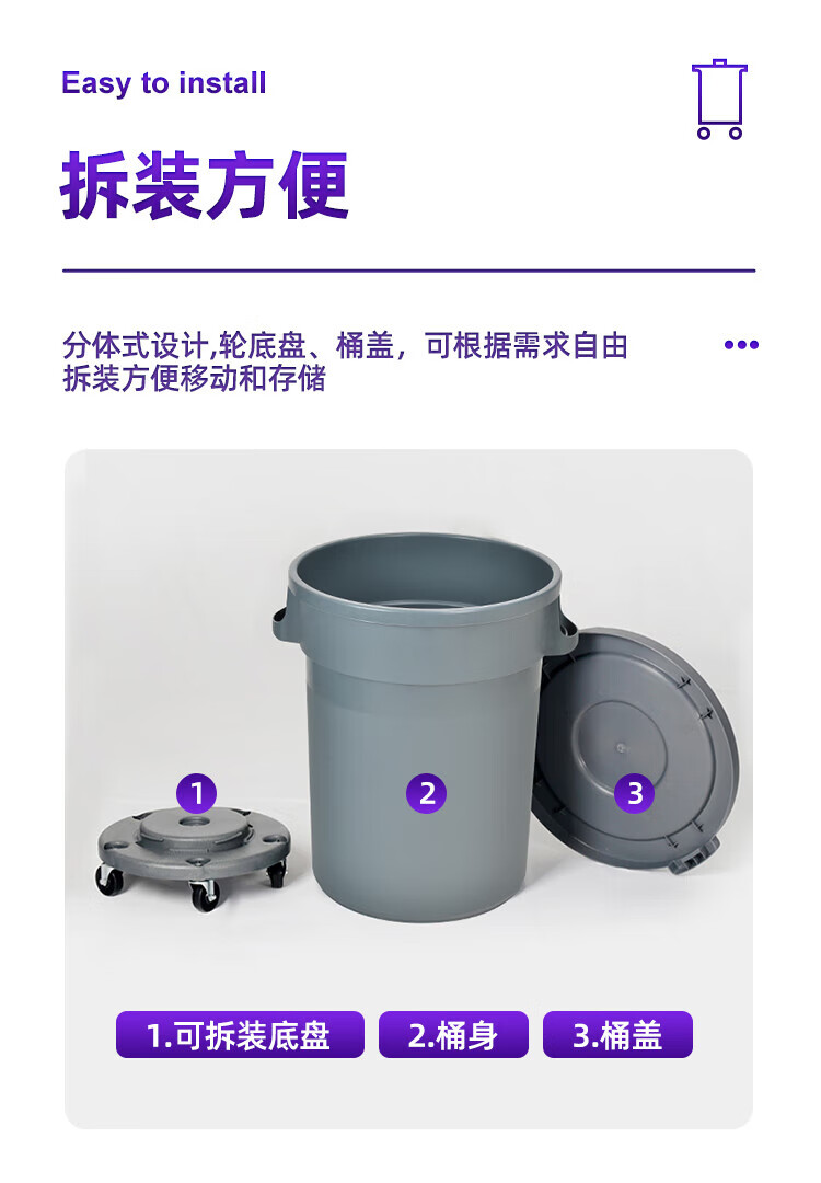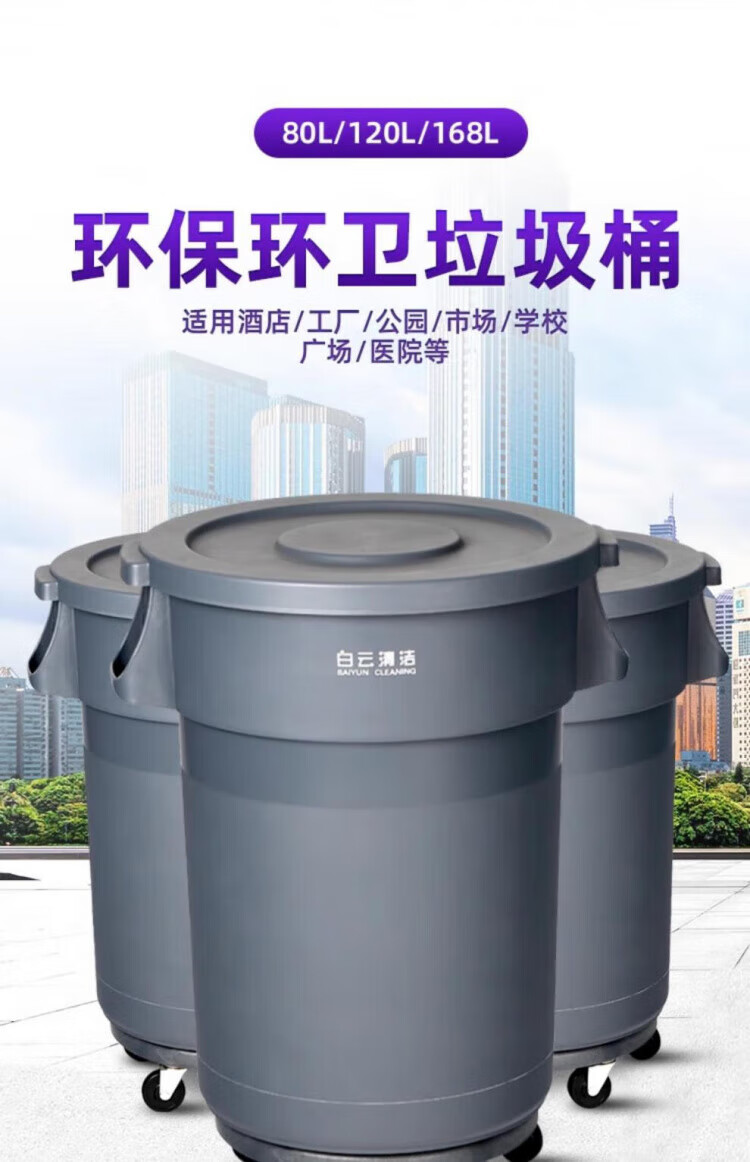 Miyi Baiyun Clean Sewage Bucket Trash Can Water Draining Commercial Large Wheeled Outdoor Large Capacity Meal Baiyun 120L Trash Can with Base + Garbage Bag