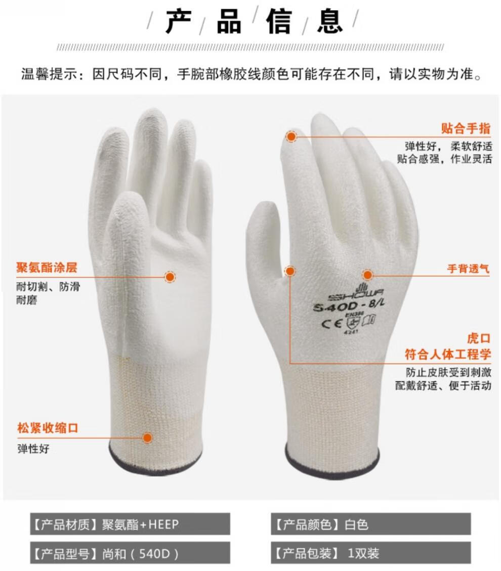 Shanghe gloves PU coated HPPE anti-cut gloves dust-free laboratory anti-cut gloves one pair M
