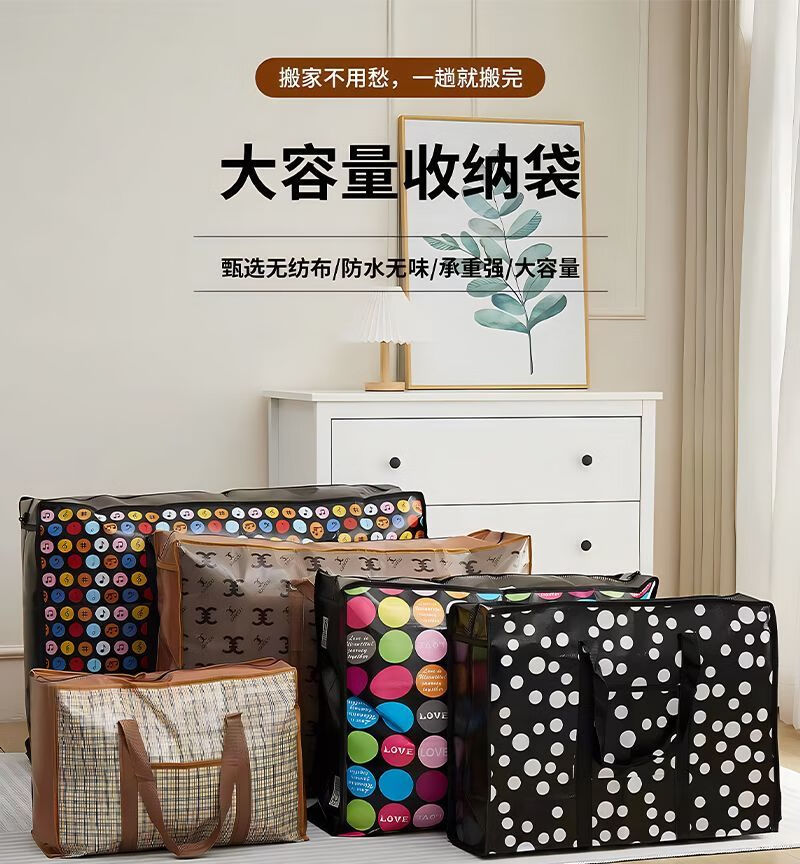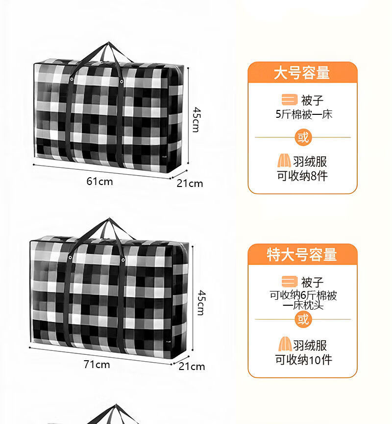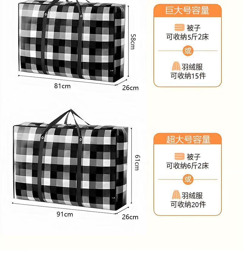 Quilt Dustproof Moving Packing Hand Luggage Travel Large Capacity Thickened Extra Large Storage Bag Thickened 175g Perforated Style Random Pattern Black 200L 8 Pack Big Mac 91*61*26