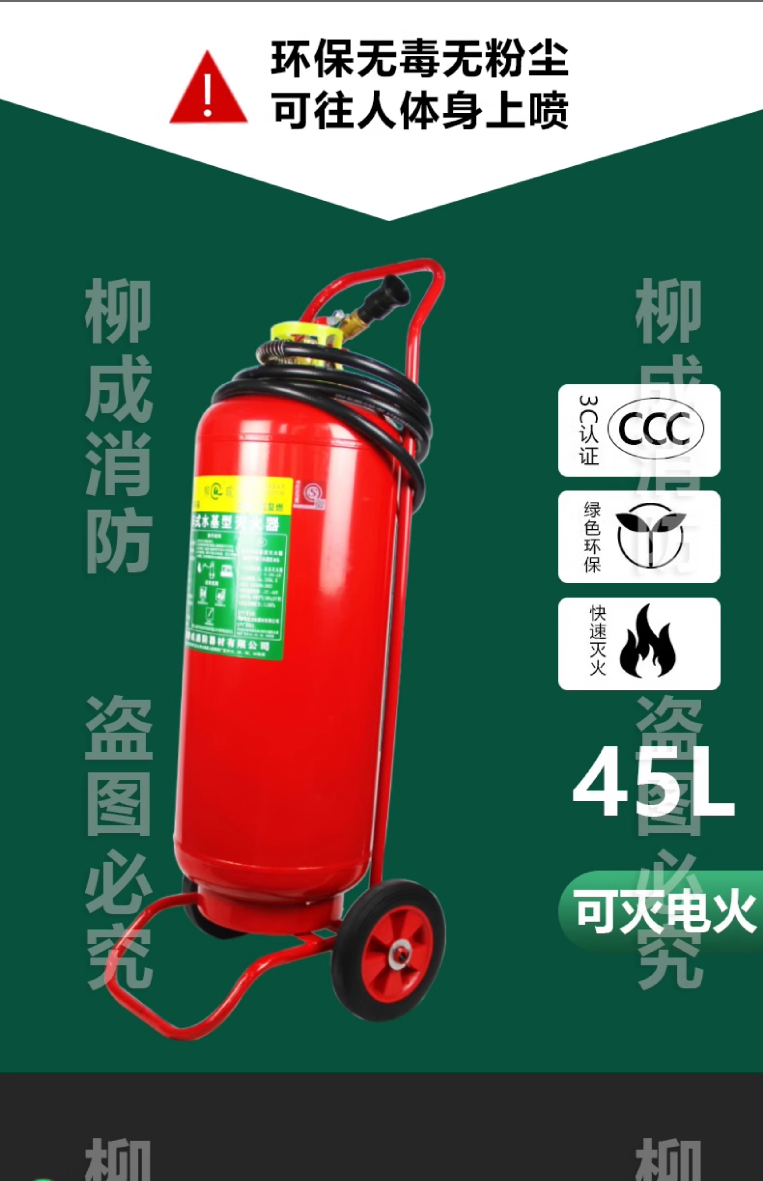 Water-based trolley-type fire extinguisher MSTZ25L/45L65L foam low-temperature fire-fighting anti-freeze extinguisher 25L water-based foam type (red bottle)