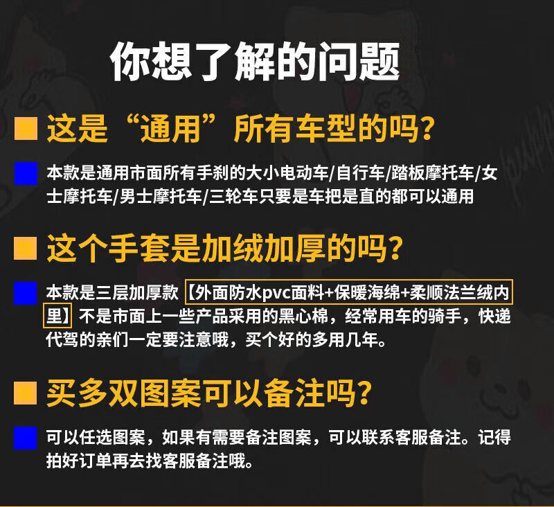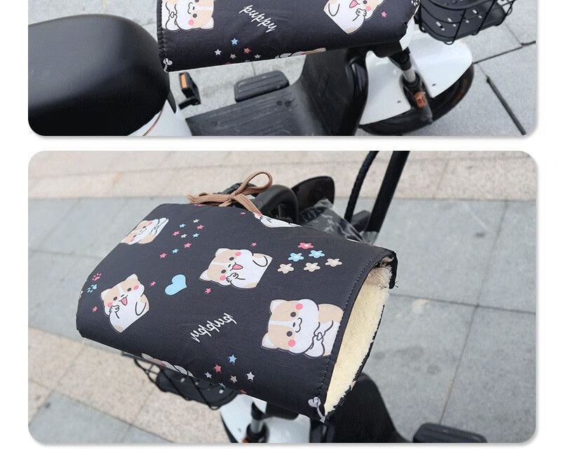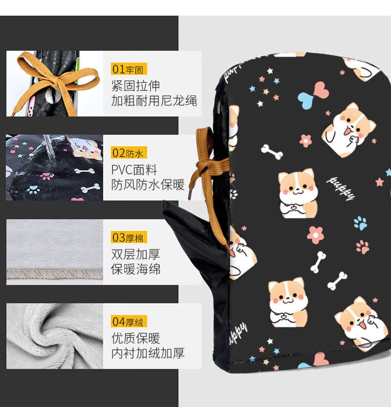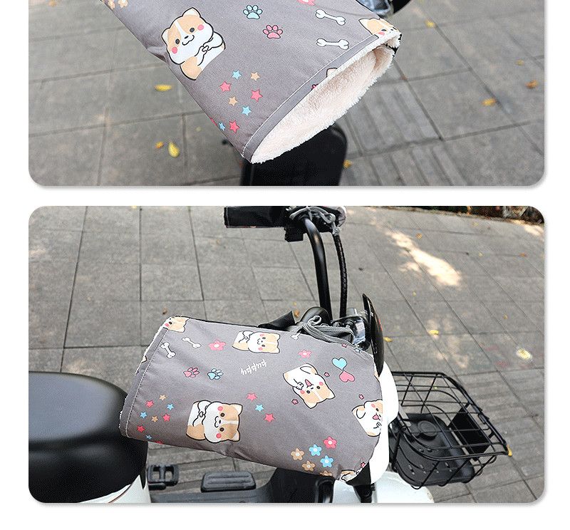 Electric vehicle winter gloves, motorcycle battery car cotton handlebar covers, waterproof, thickened and velvet, windproof, cold and warm protective gloves, dog black, thickened and velvet, one pair