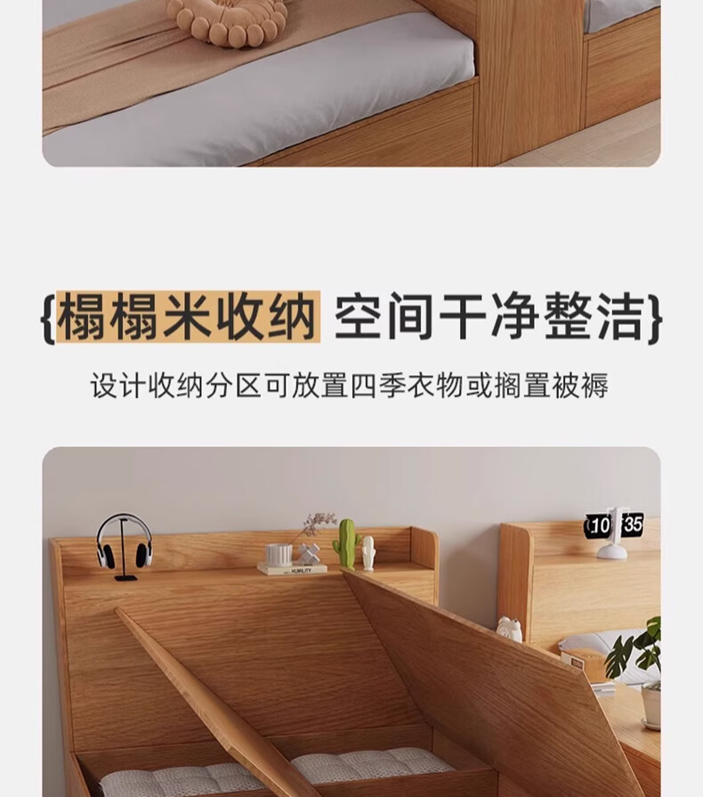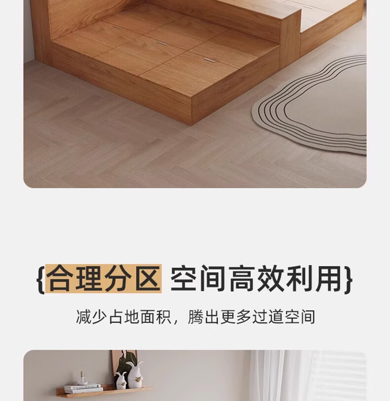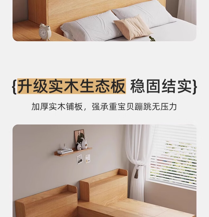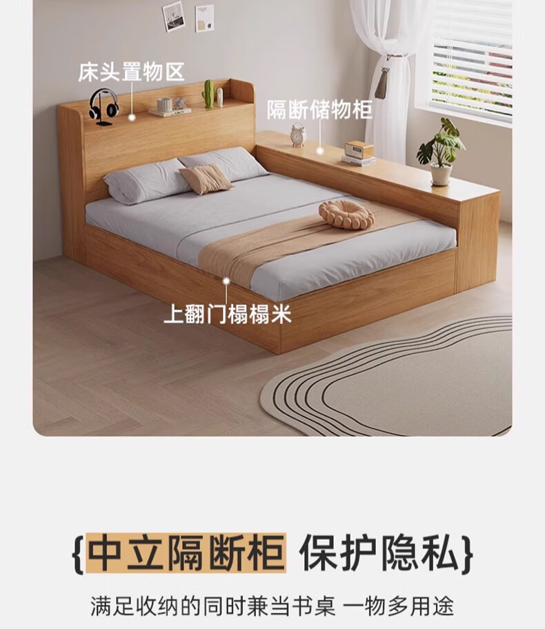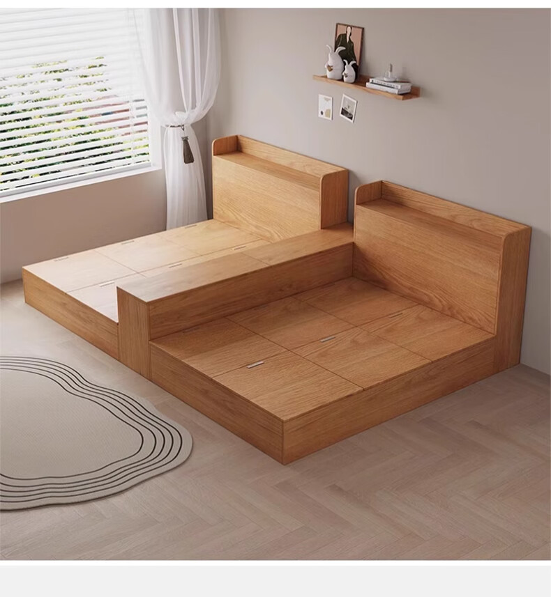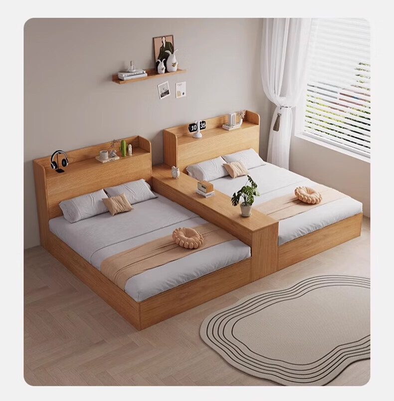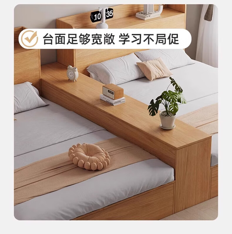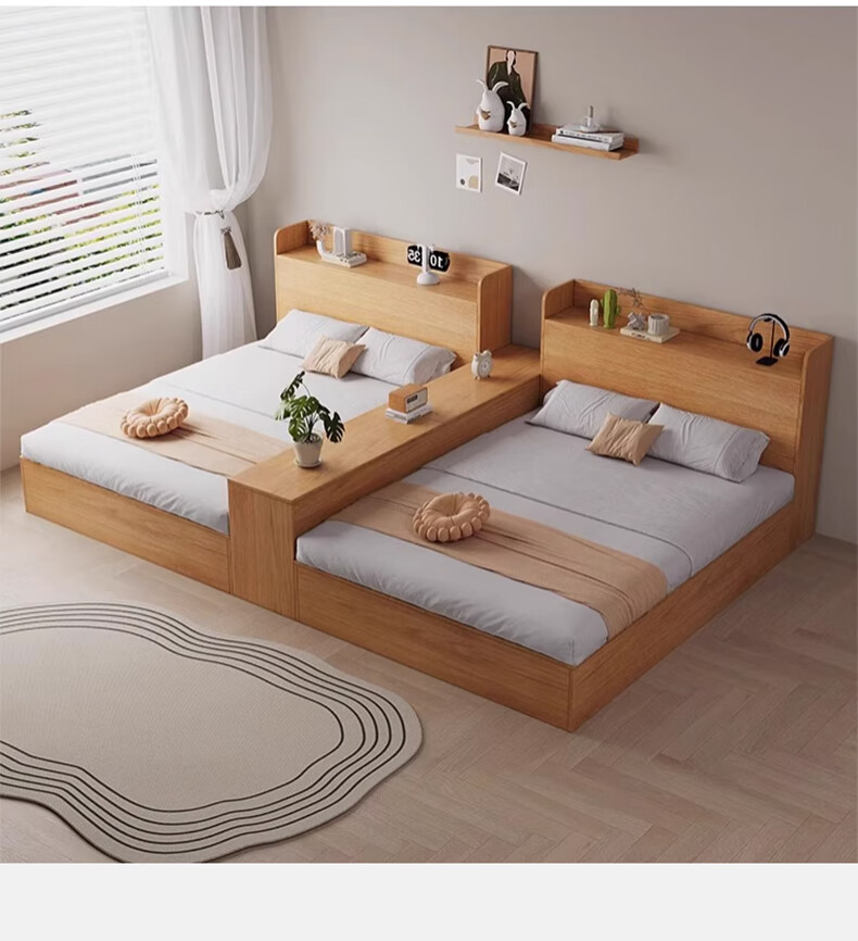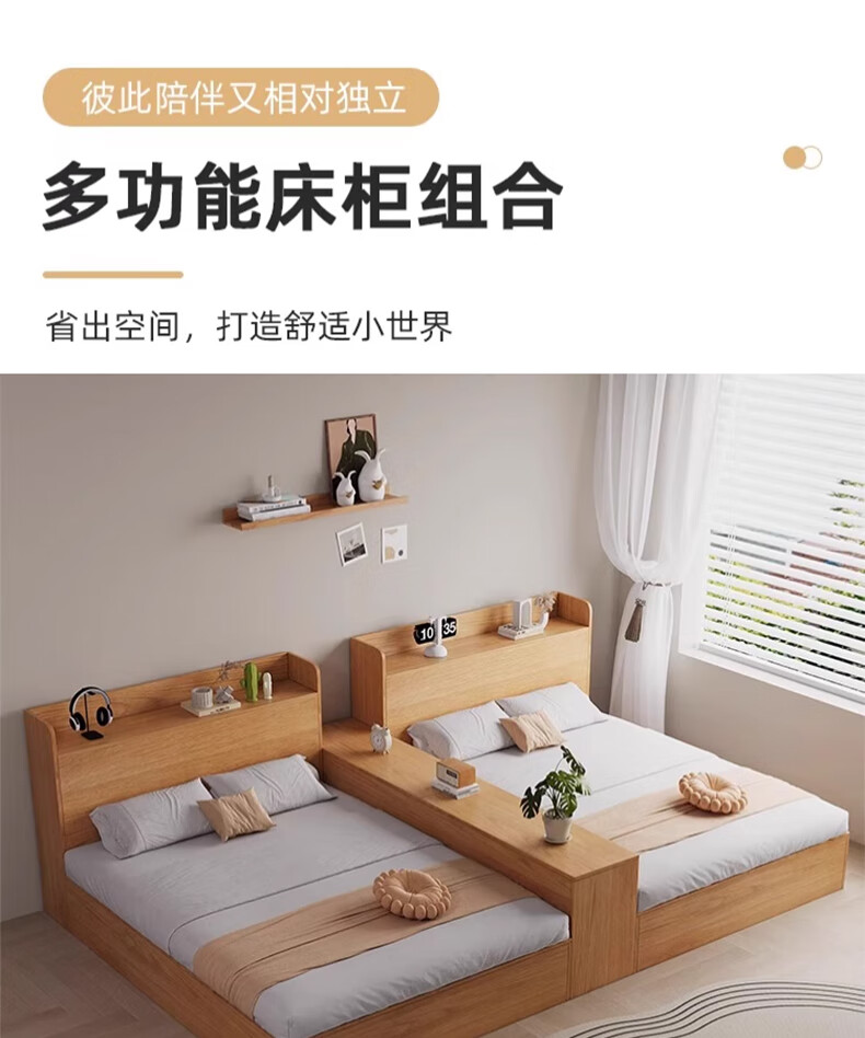 Qiuye Zhuifeng solid wood bed double bed tatami children's low bed floor-standing partition bed twins do not interfere with each other bedroom second child bed twin bed + locker 215*212cm including installation