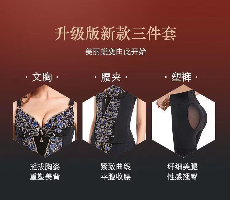 AIRFENOting Manyi Body Shaping Underwear Body Manager Butt Lift Shaping Bra Waist Clip Plastic Pants Mold Shuyu Second Generation Three-piece Set M 70 Recommended 85-100 Jin
