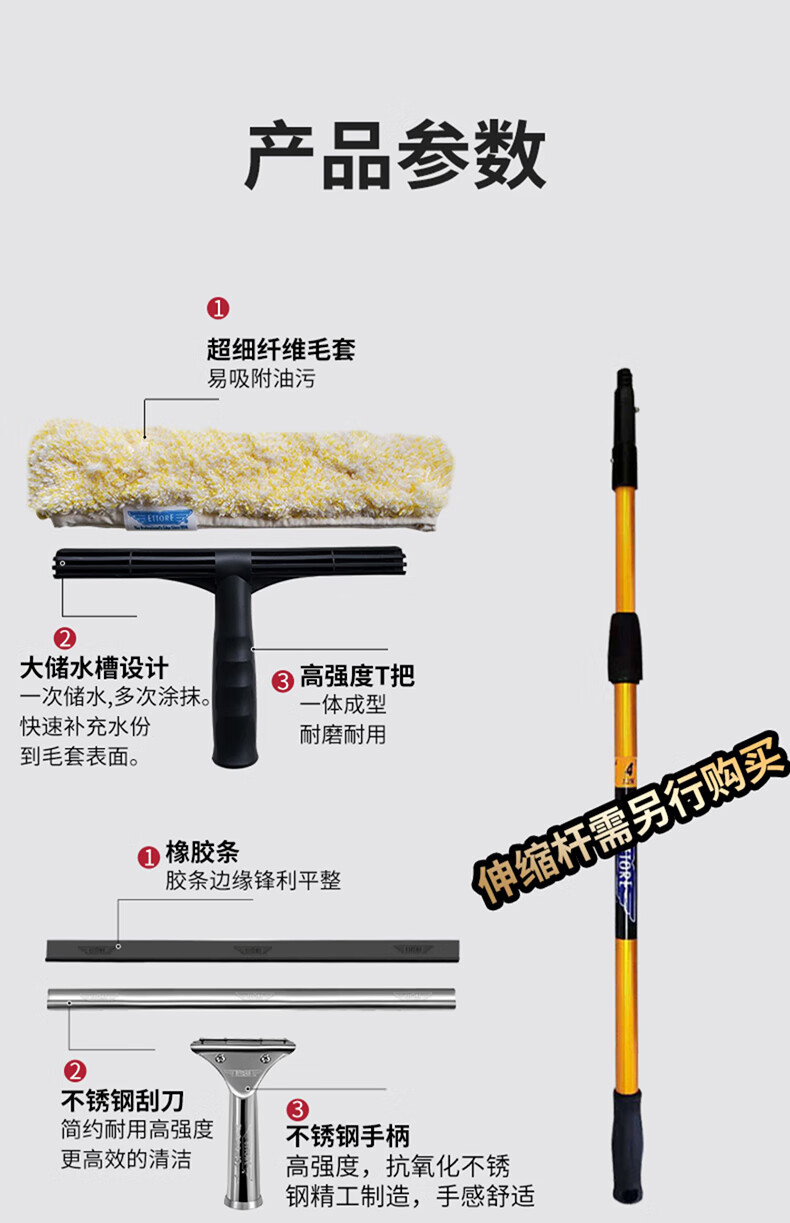 ETTORE American Golden Eagle imported glass wiper flip-up combination tool scrubbing glass water cleaning window wiper two-in-one set stainless steel flip-up wiper 35CM
