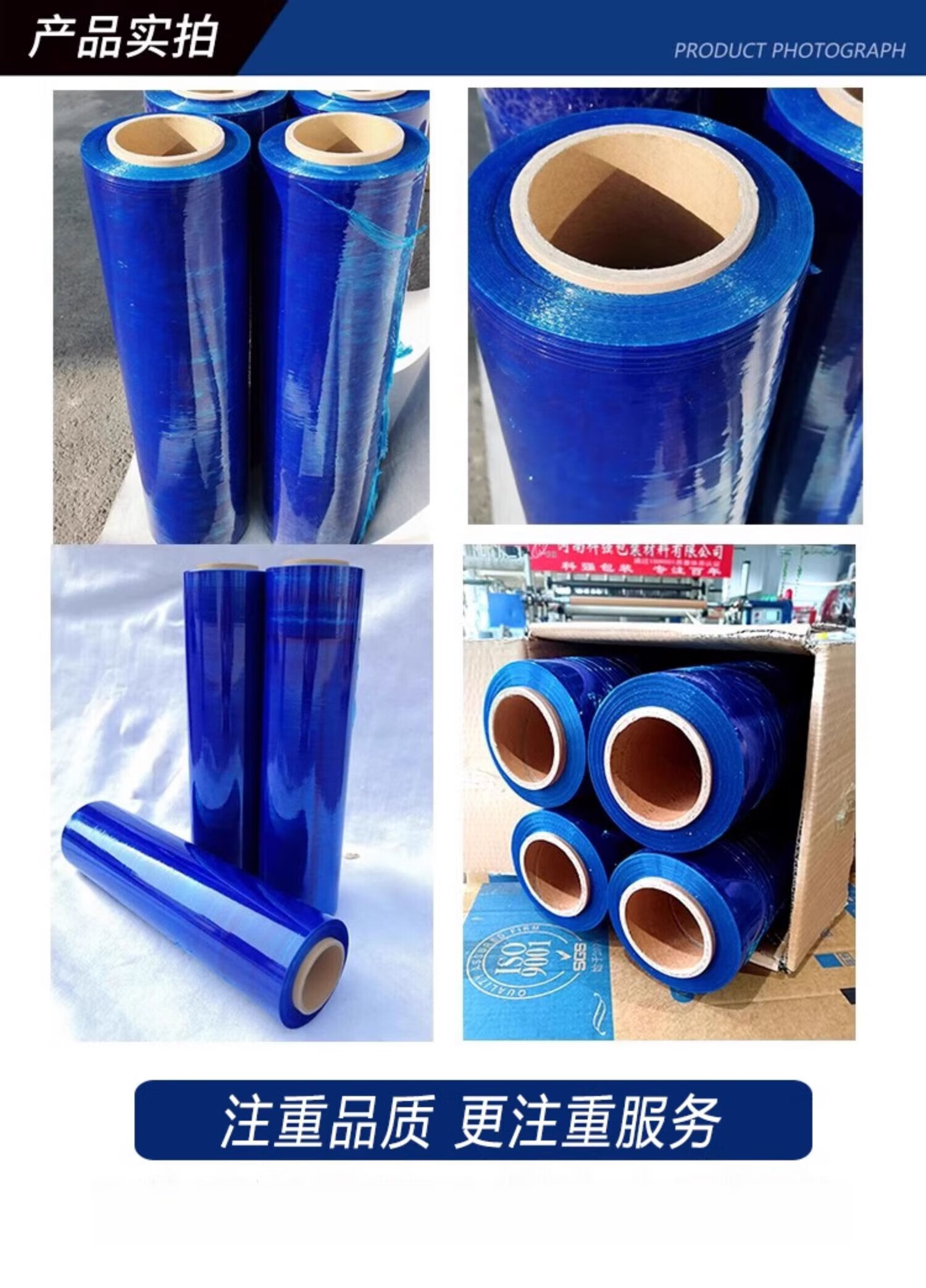 Stretch film blue PE packaging film 50cm wide stretch film guardrail protective film industrial machinery packaging special film blue 50cm*5kg*300m 1 roll