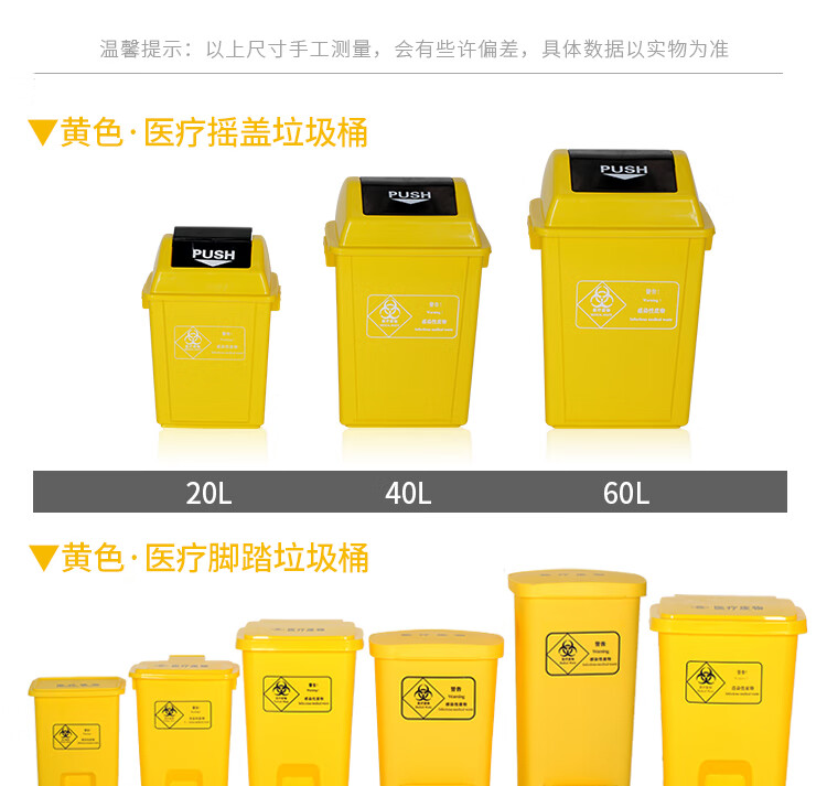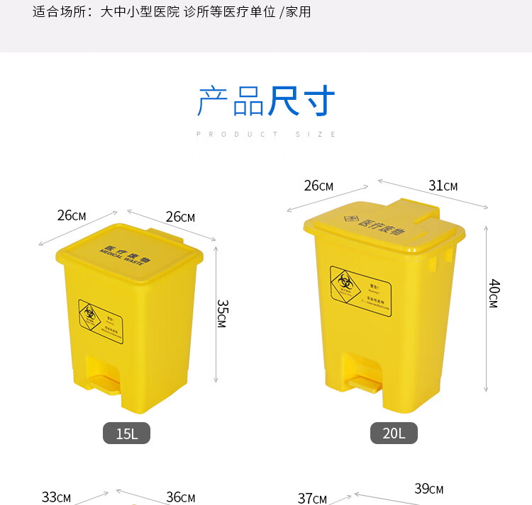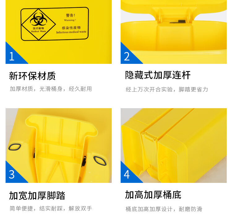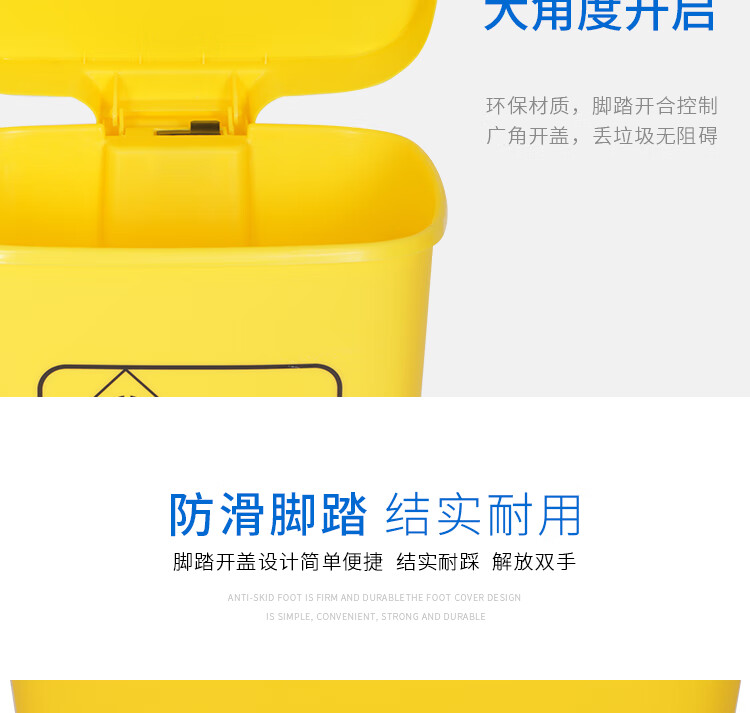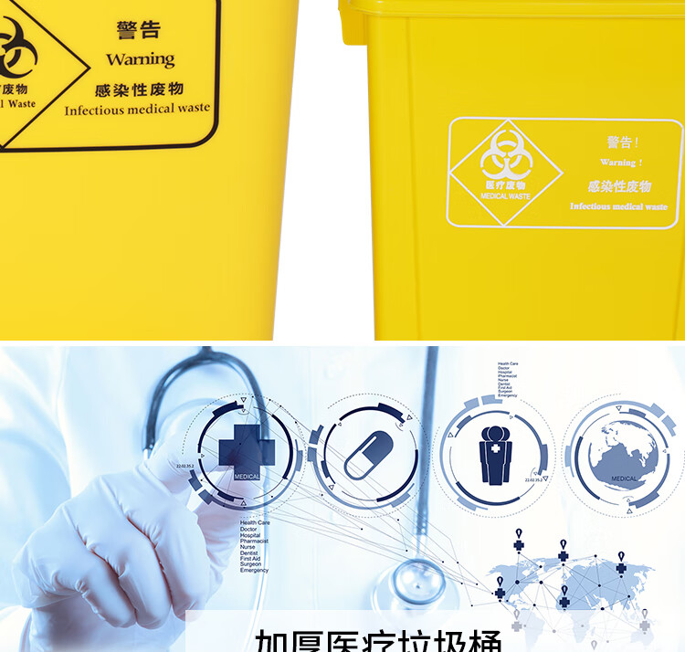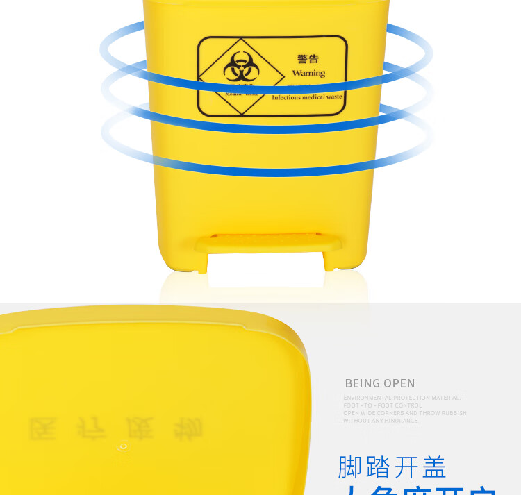 Medical trash can waste recycling box thickened yellow clinic foot-operated with lid outdoor large sharps box 20 liter yellow swing lid bucket medical logo medical logo