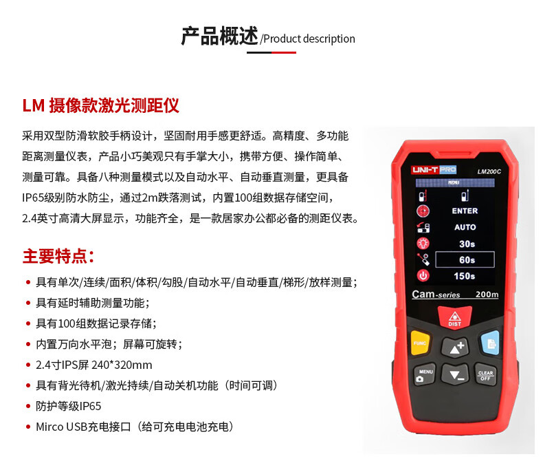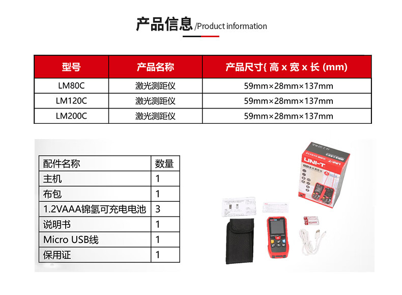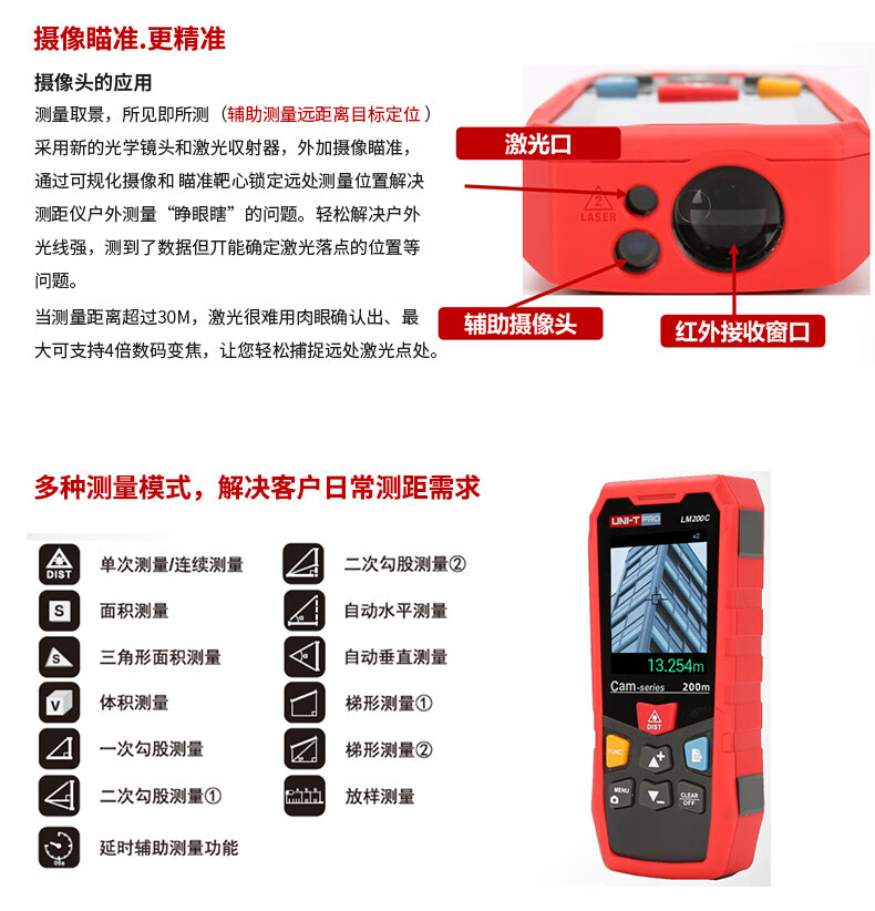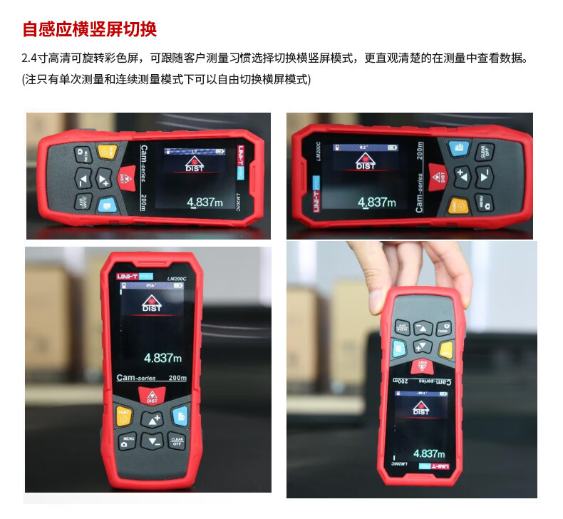 Unilide laser rangefinder camera high-precision laser handheld measuring instrument electronic ruler 200/120m LM80C (80 meters) IPS display