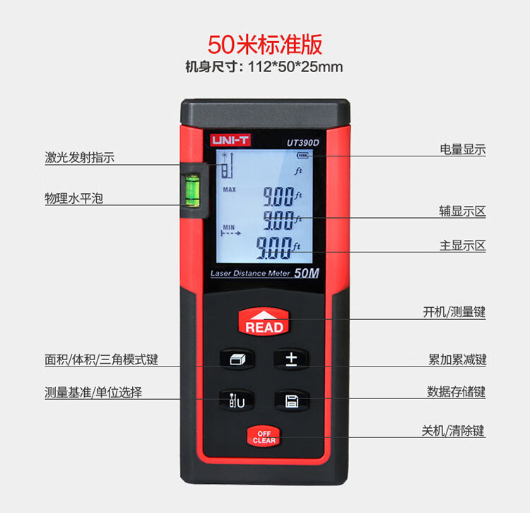 Unilide UT398A handheld laser rangefinder 120 meters measurement UT398A