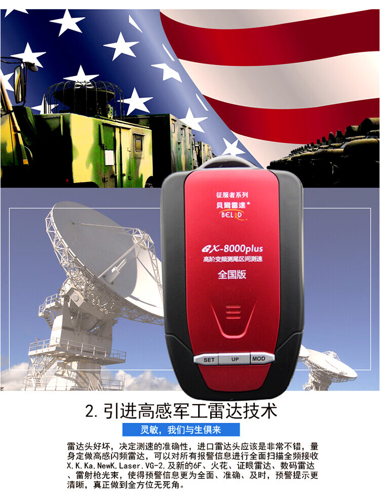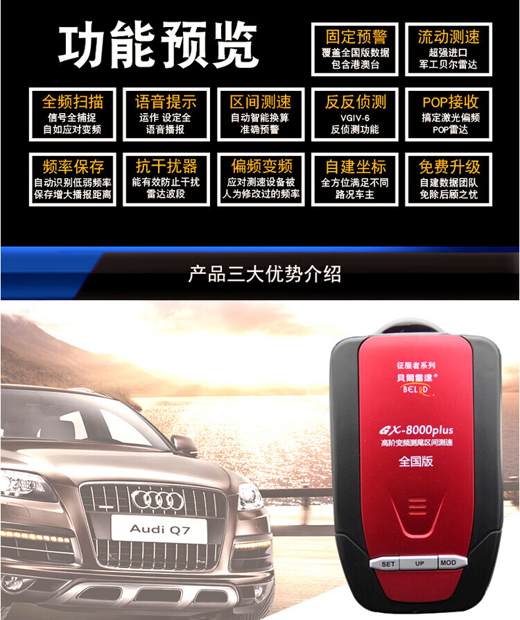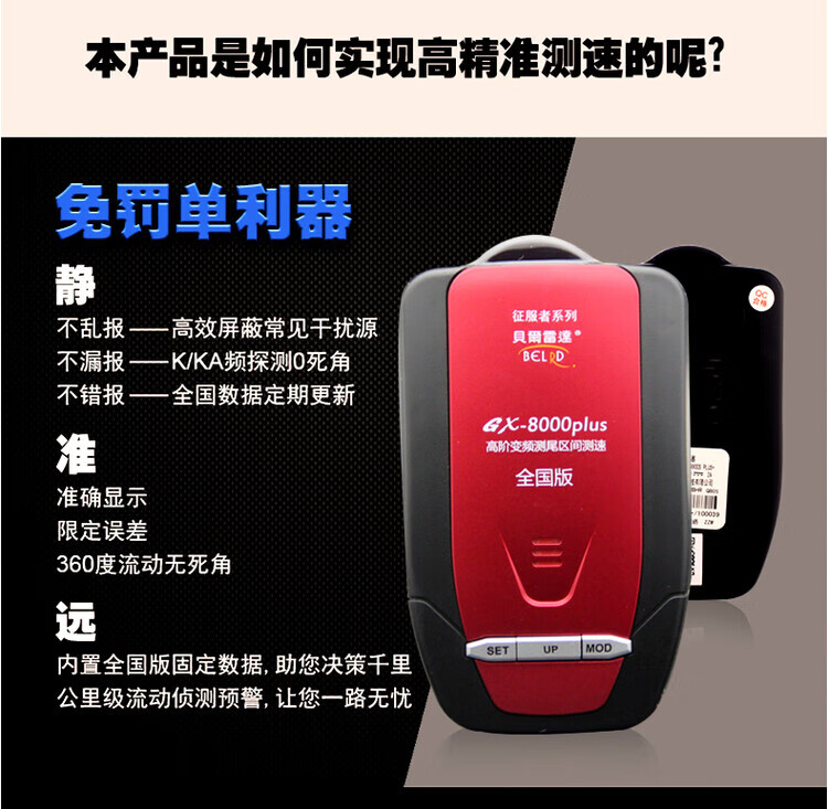 Bell electronic dog fixed mobile speed radar vehicle-mounted Amap voice car safety warning device Conqueror GX-8000plus
