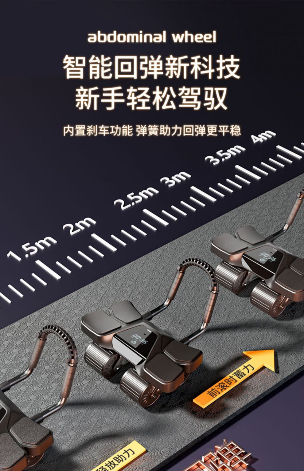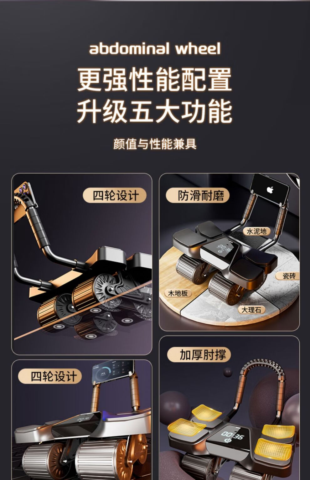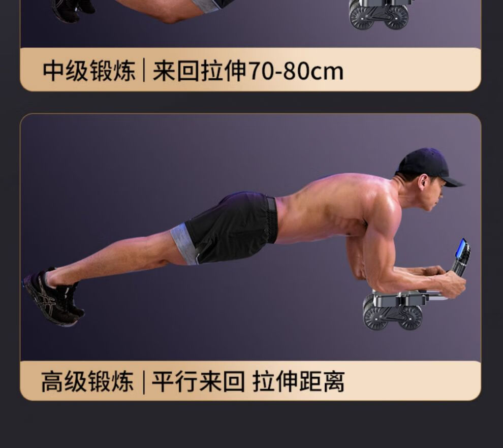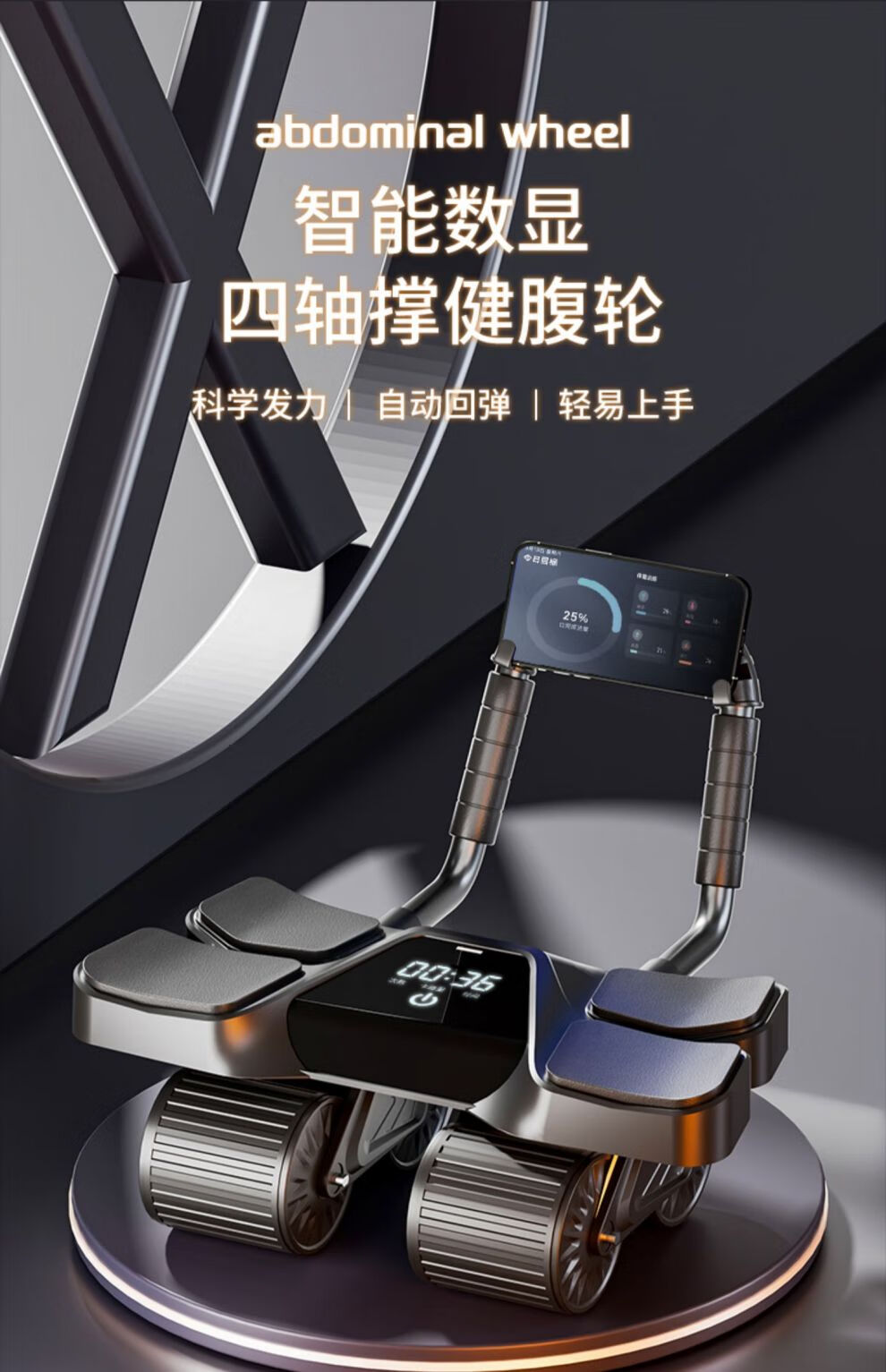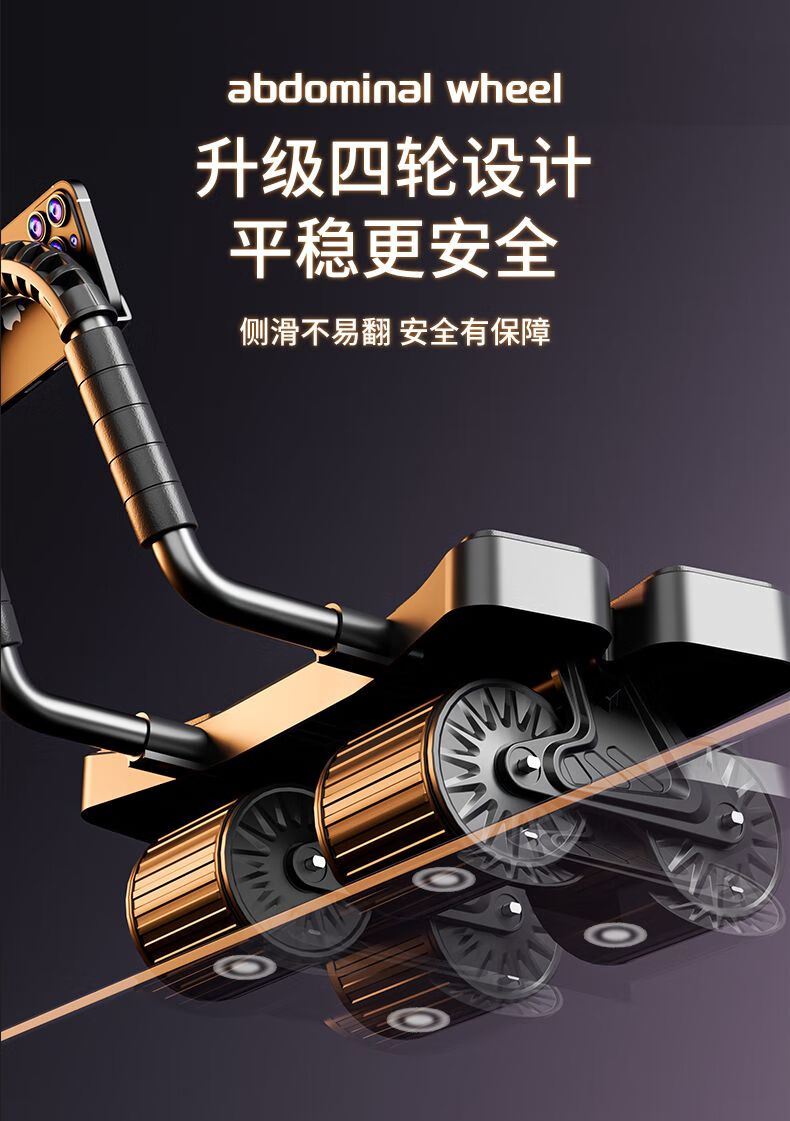 MFT USA - MFT Four Wheel 2025 New Automatic Rebound Abdominal Wheel for Abdominal Muscle Training and Crunch Men's Belly Slimming Artifact High-End Intelligent Counting Model - Black Upgraded Four-Wheel Four-Elbow Support (Free Thickened Kneeling Mat)
