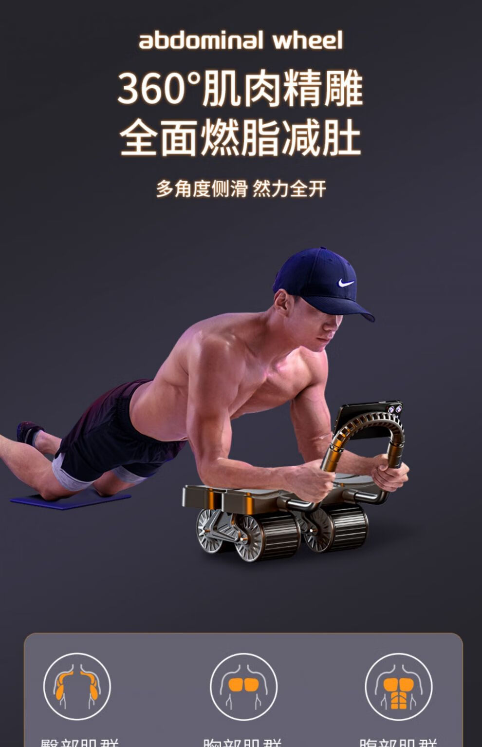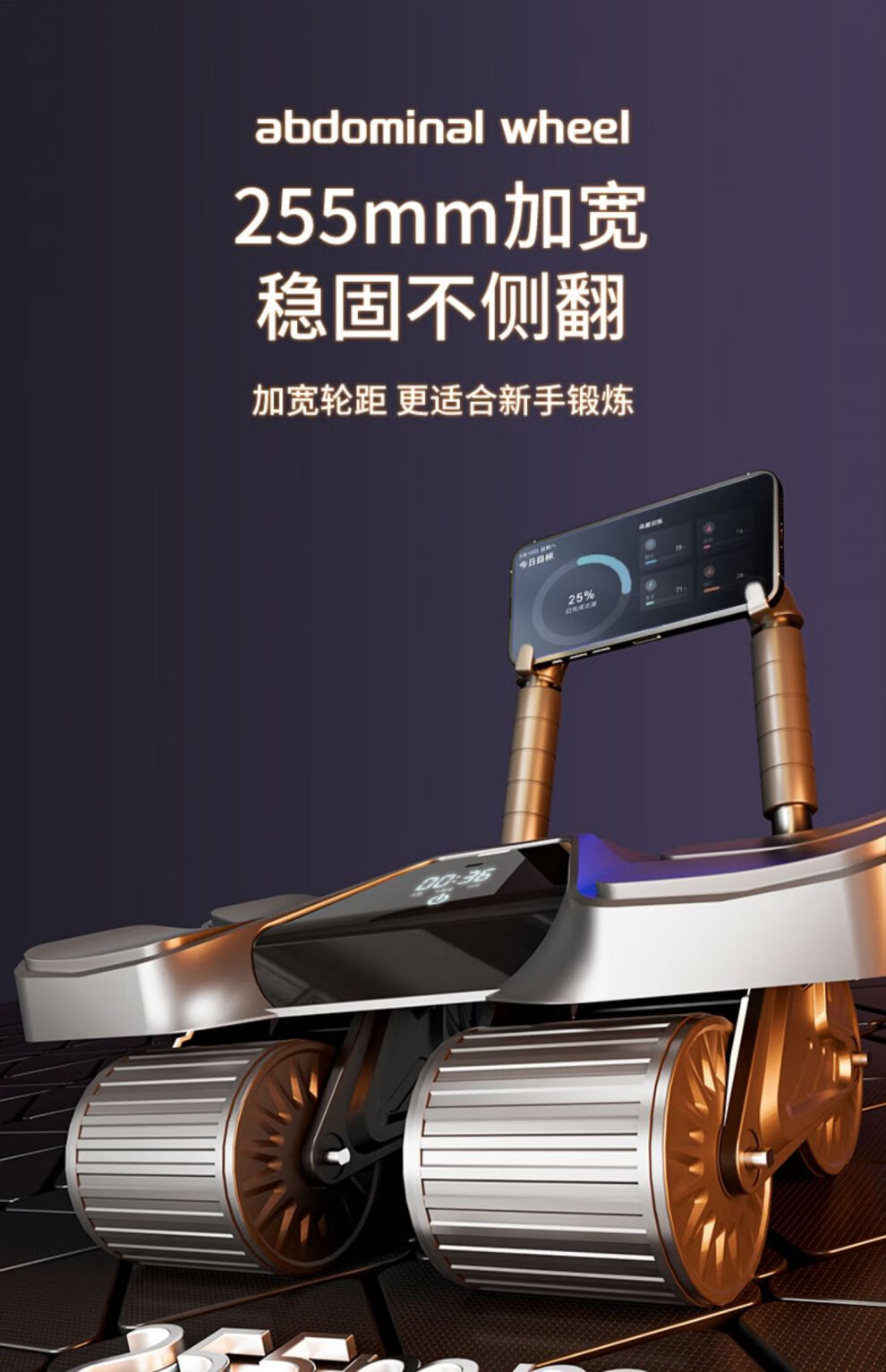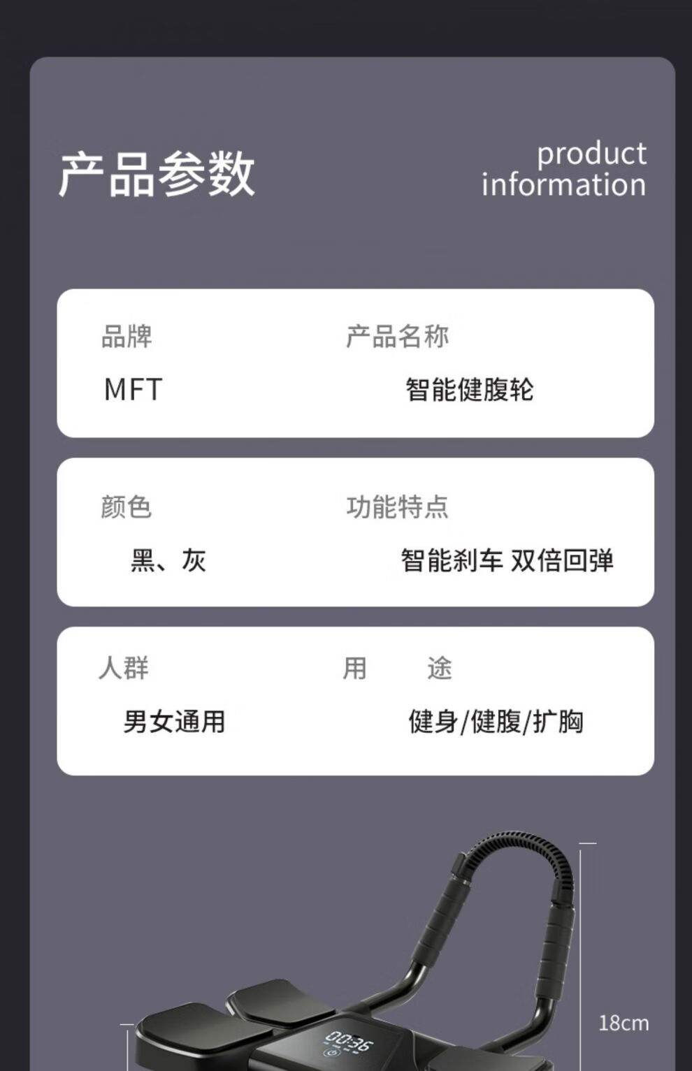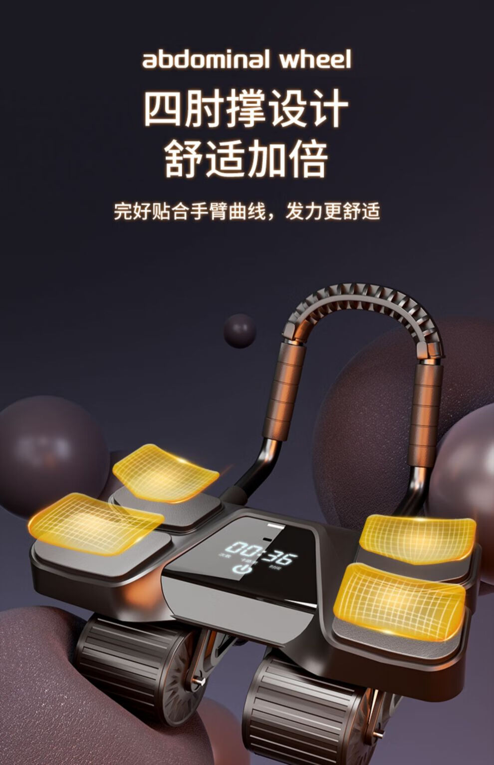 MFT USA - MFT Four Wheel 2025 New Automatic Rebound Abdominal Wheel for Abdominal Muscle Training and Crunch Men's Belly Slimming Artifact High-End Intelligent Counting Model - Black Upgraded Four-Wheel Four-Elbow Support (Free Thickened Kneeling Mat)