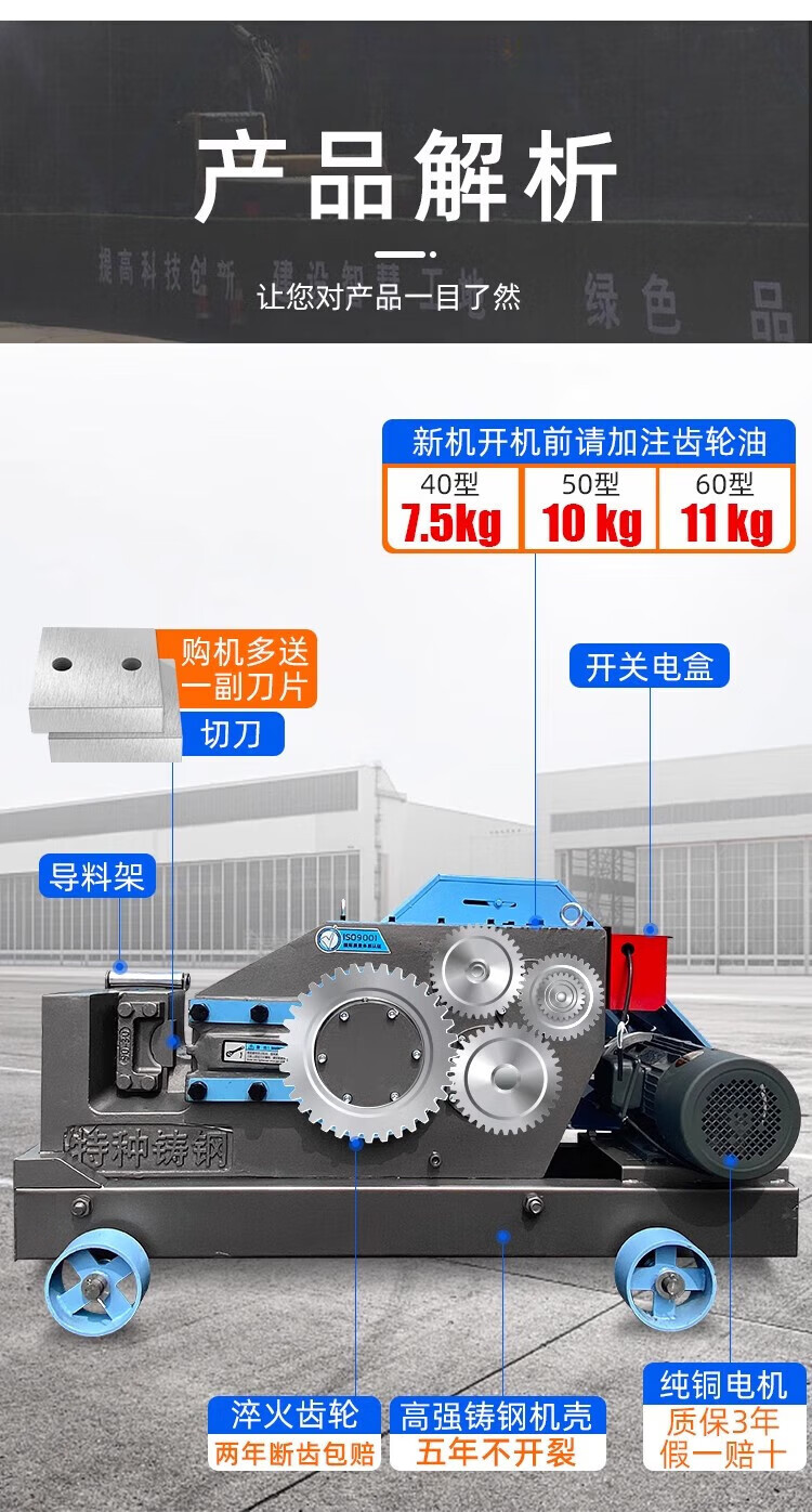 YHGFEE steel bar cutting machine shearing machine heavy-duty steel cutting machine rebar shearing machine 40 type steel bar cutting machine 40 type flat knife cutting machine