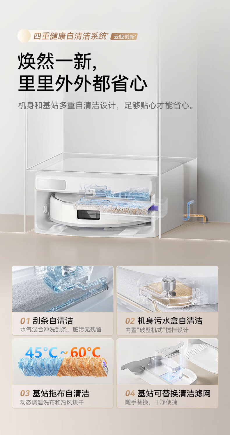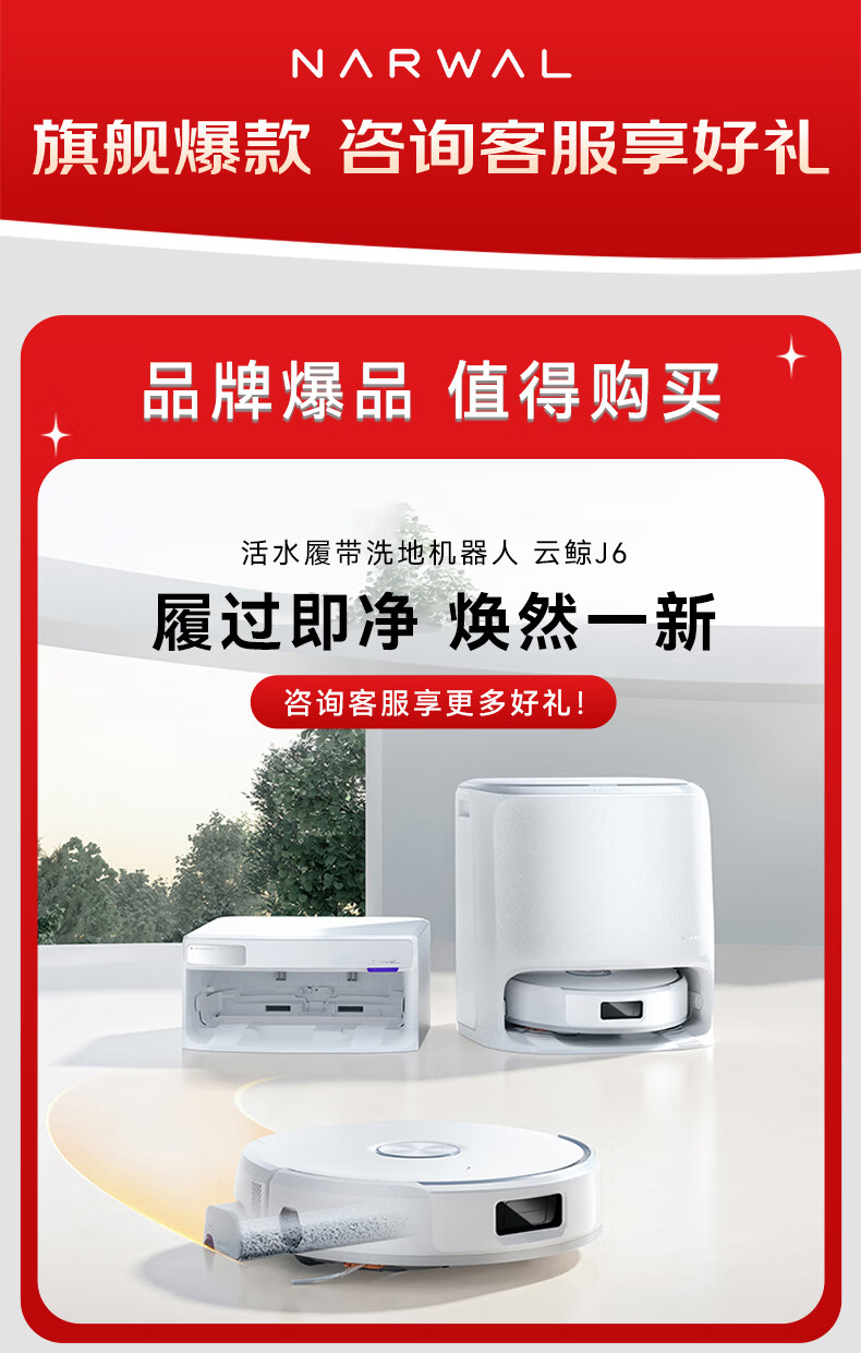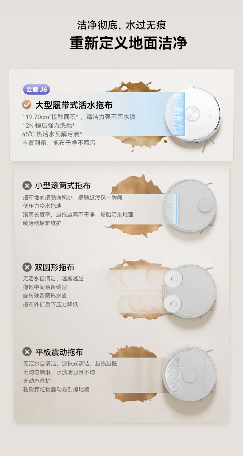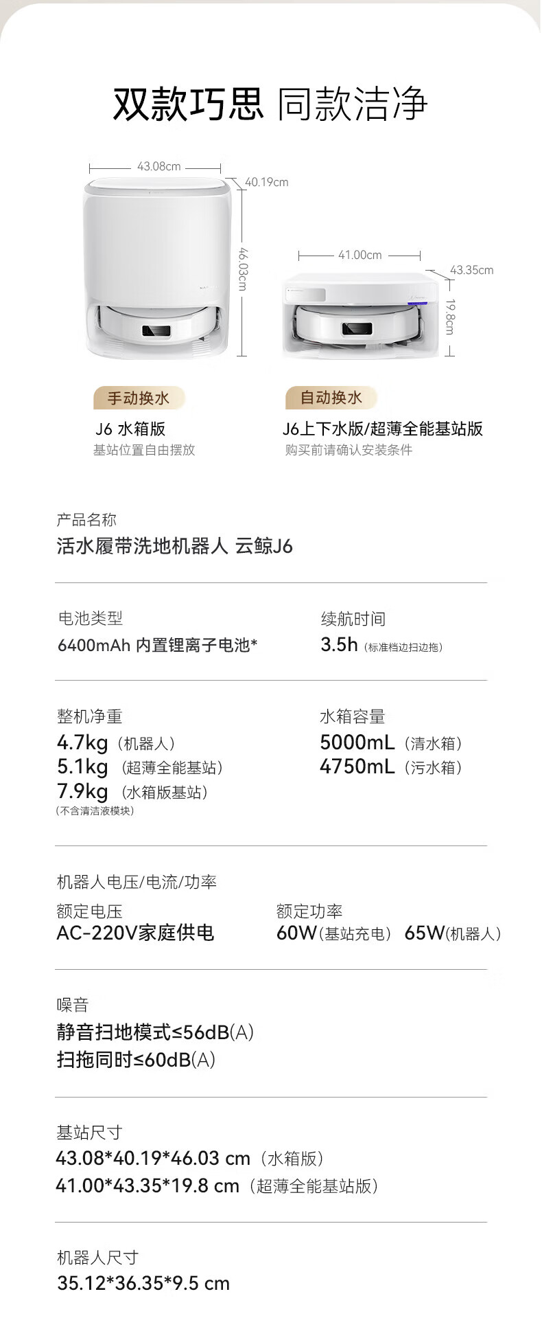 Cloud Whale Sweeping Robot J6 Intelligent Sweeping and Mopping Automatic Cleaning Dust Collection Live Water Crawler Floor Washer Fully Automatic Vacuum Cleaner Mop Floor Mopping Robot Flagship New Product Cloud Whale J6-Water Tank Version