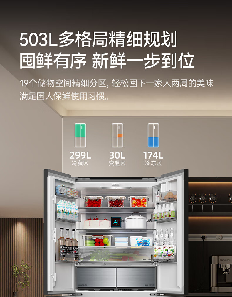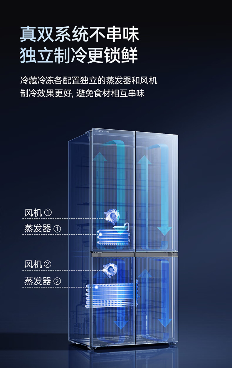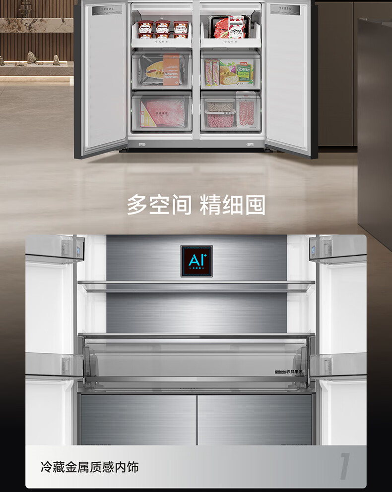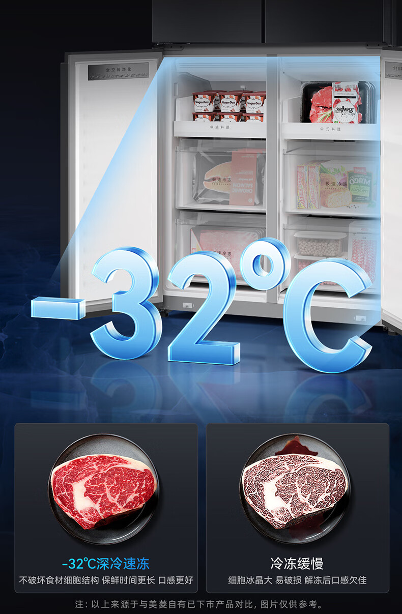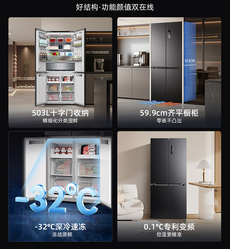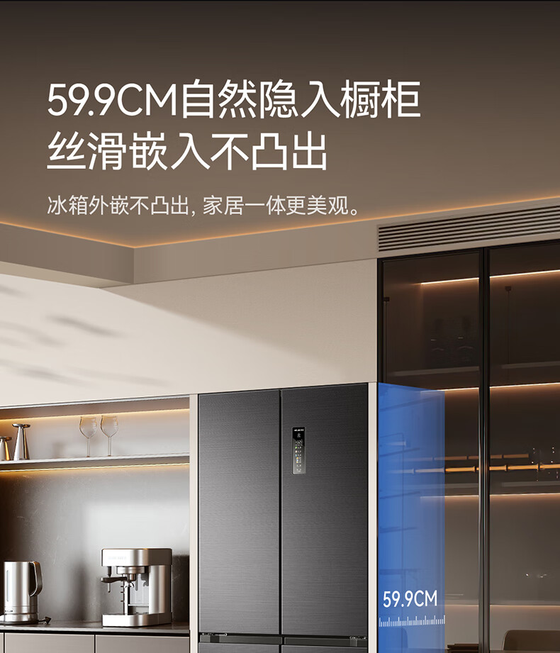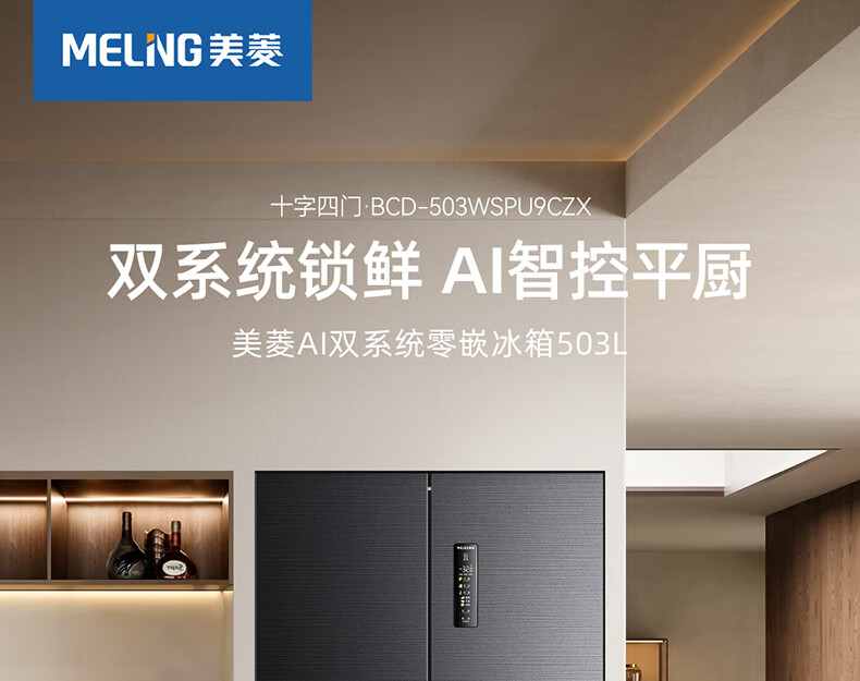 Meiling AI smart refrigerator 503 liter cross-door ultra-thin zero-level embedded dual-system dual-cycle active sterilization and deodorization first-class air-cooling subsidy white refrigerator BCD-503WSPU9CZX-grey/AI smart