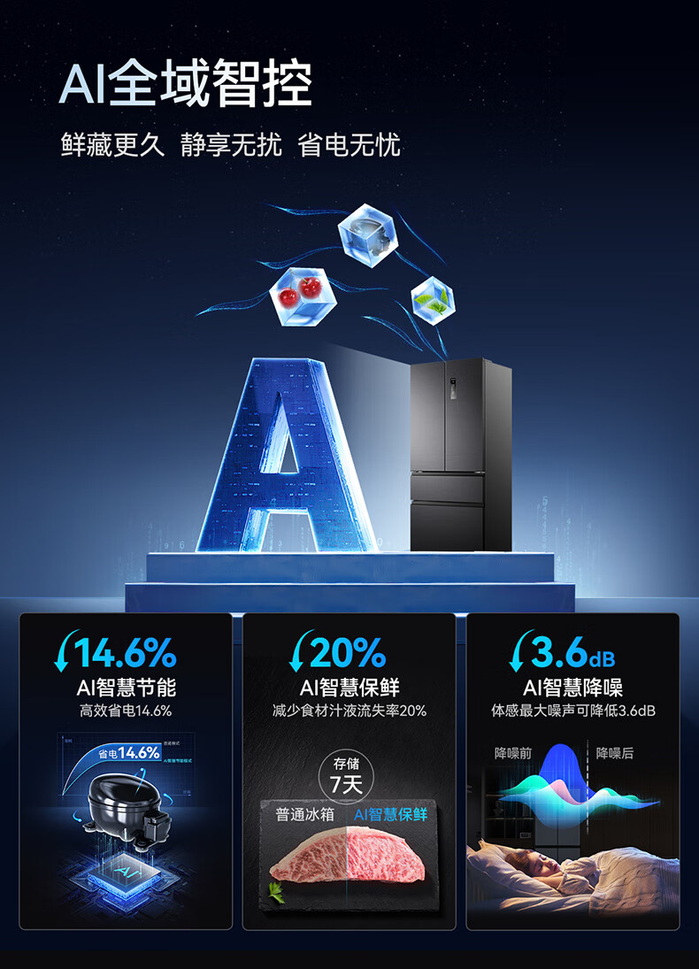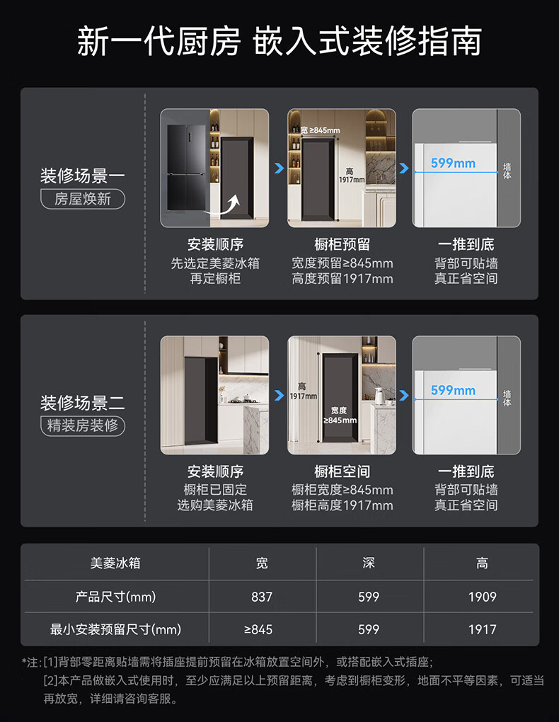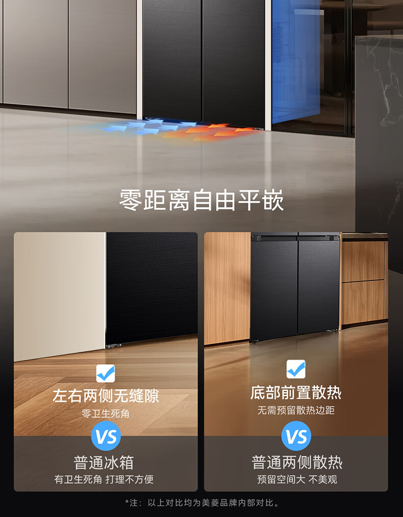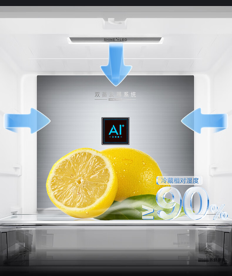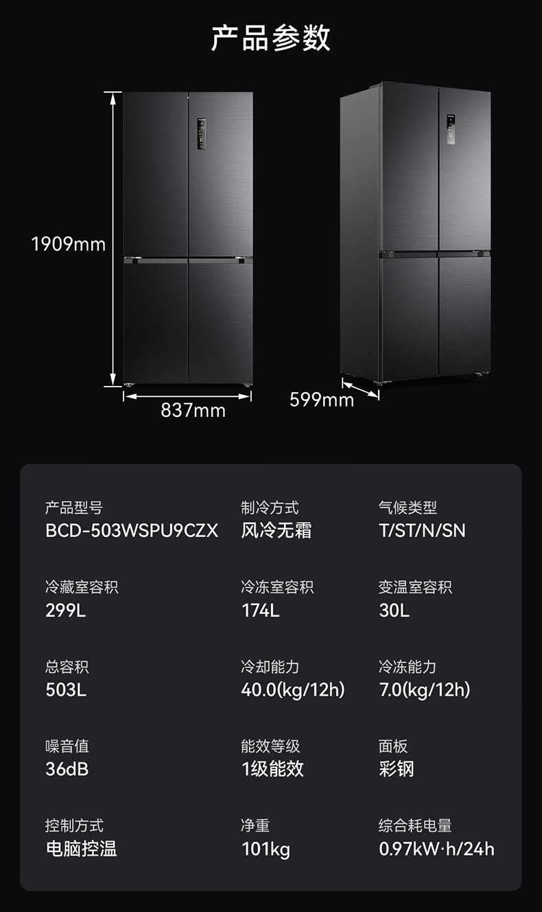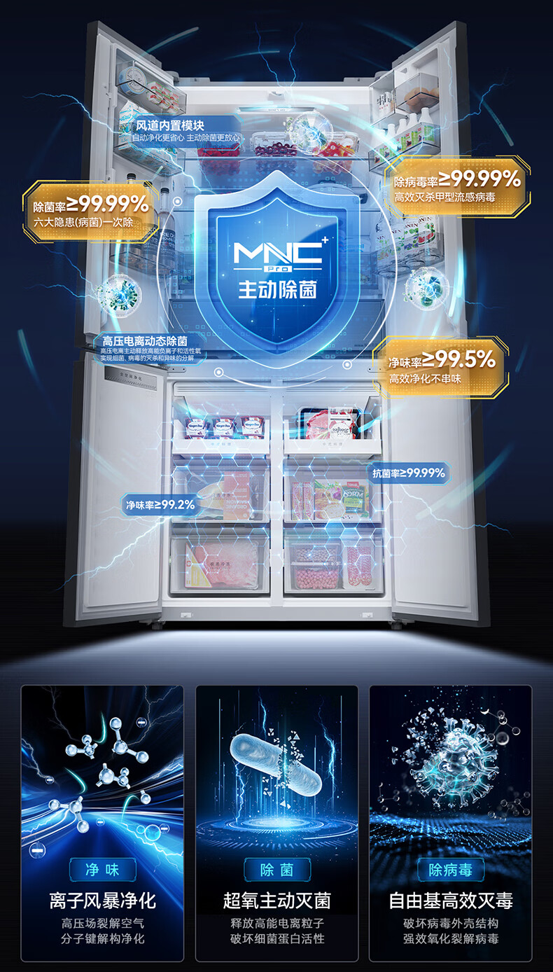 Meiling AI smart refrigerator 503 liter cross-door ultra-thin zero-level embedded dual-system dual-cycle active sterilization and deodorization first-class air-cooling subsidy white refrigerator BCD-503WSPU9CZX-grey/AI smart