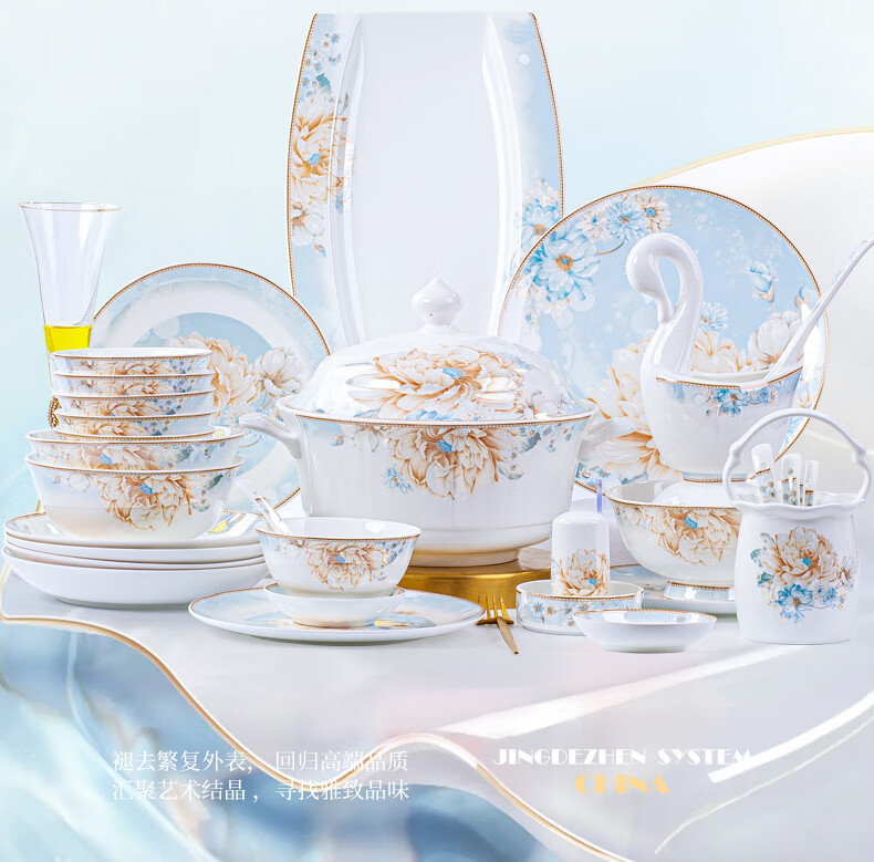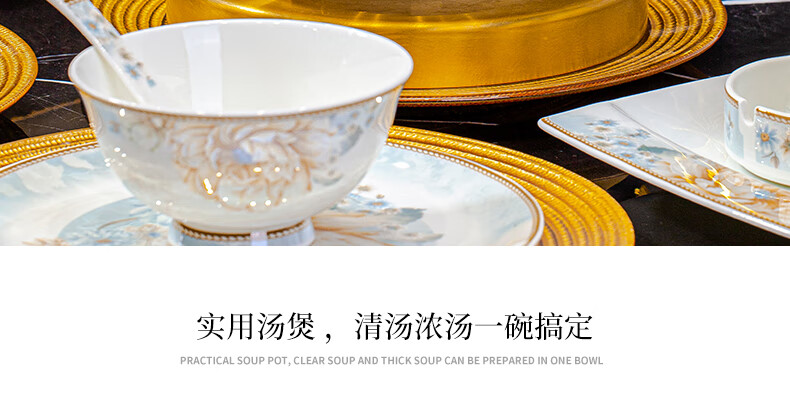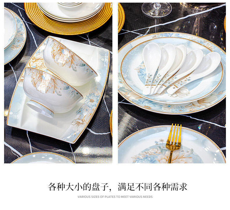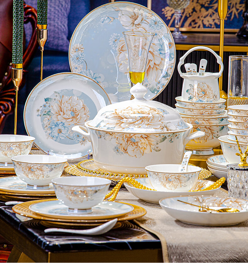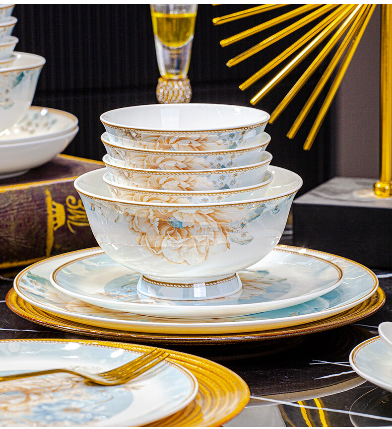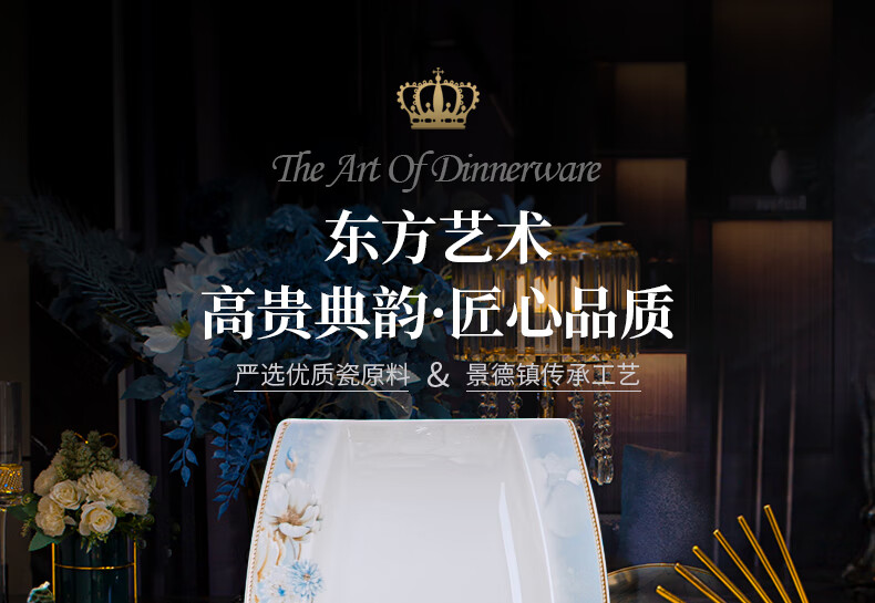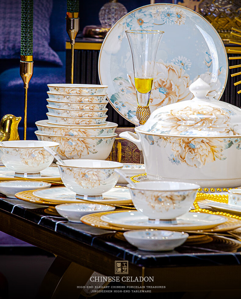 CROOZER dish set household new light luxury Jingdezhen bone china ceramic tableware set bowls and plates high-end housewarming gift gift with high-end brocade box - Phnom Penh Glaze Yingxue * 62 heads square luxury configuration