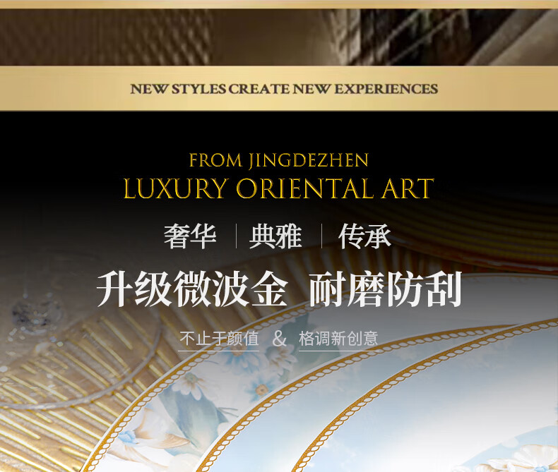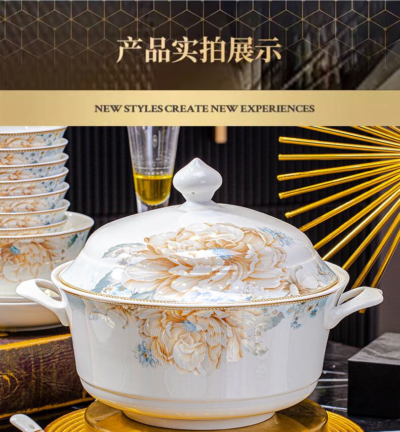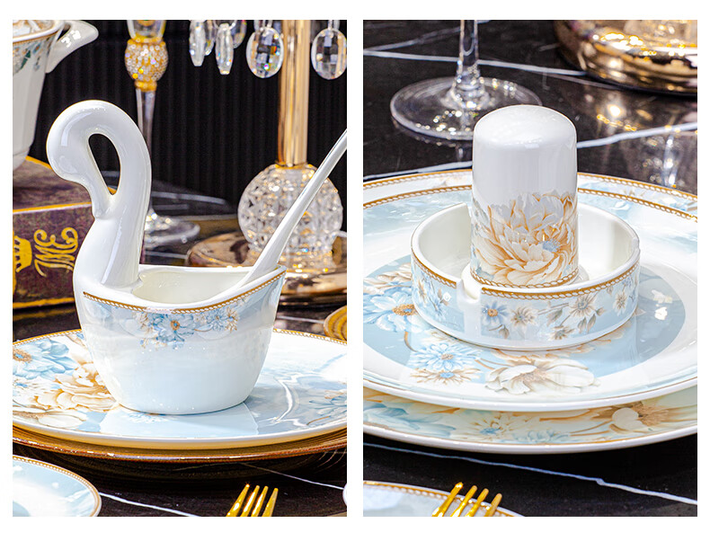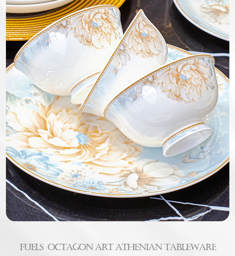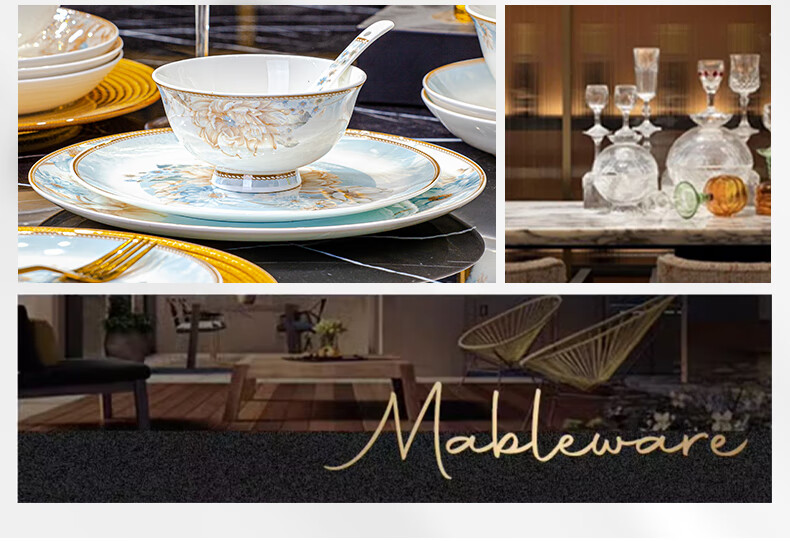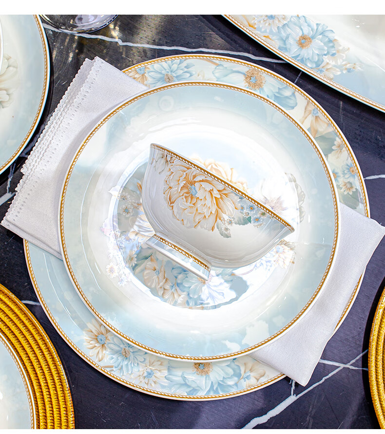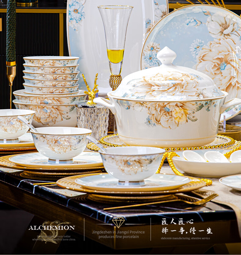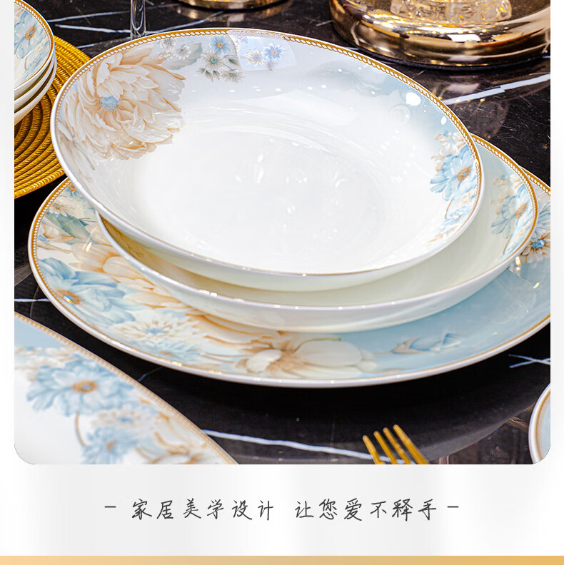 CROOZER dish set household new light luxury Jingdezhen bone china ceramic tableware set bowls and plates high-end housewarming gift gift with high-end brocade box - Phnom Penh Glaze Yingxue * 62 heads square luxury configuration
