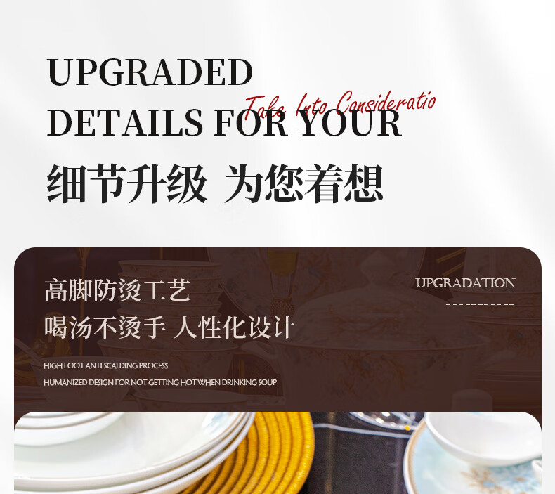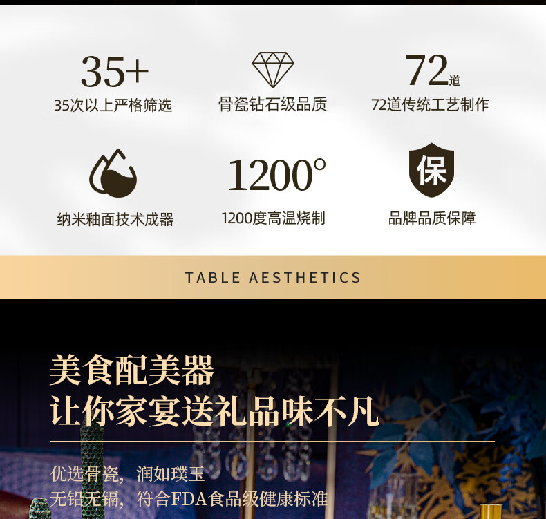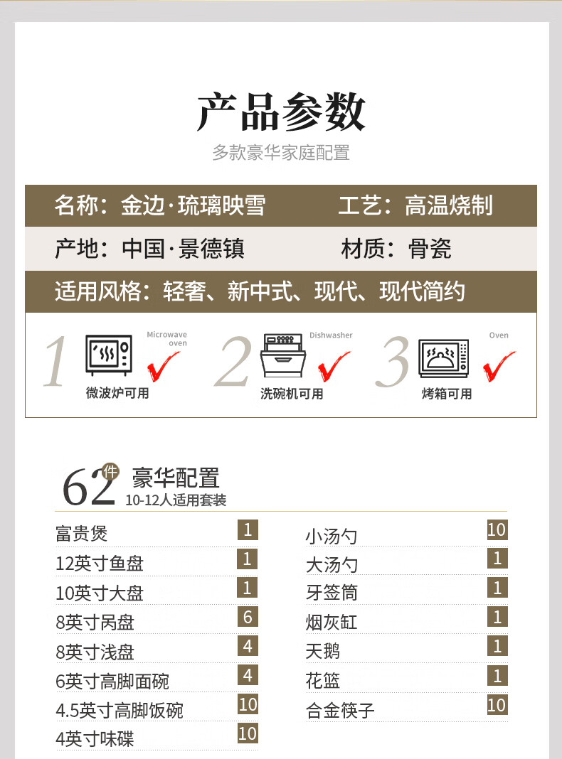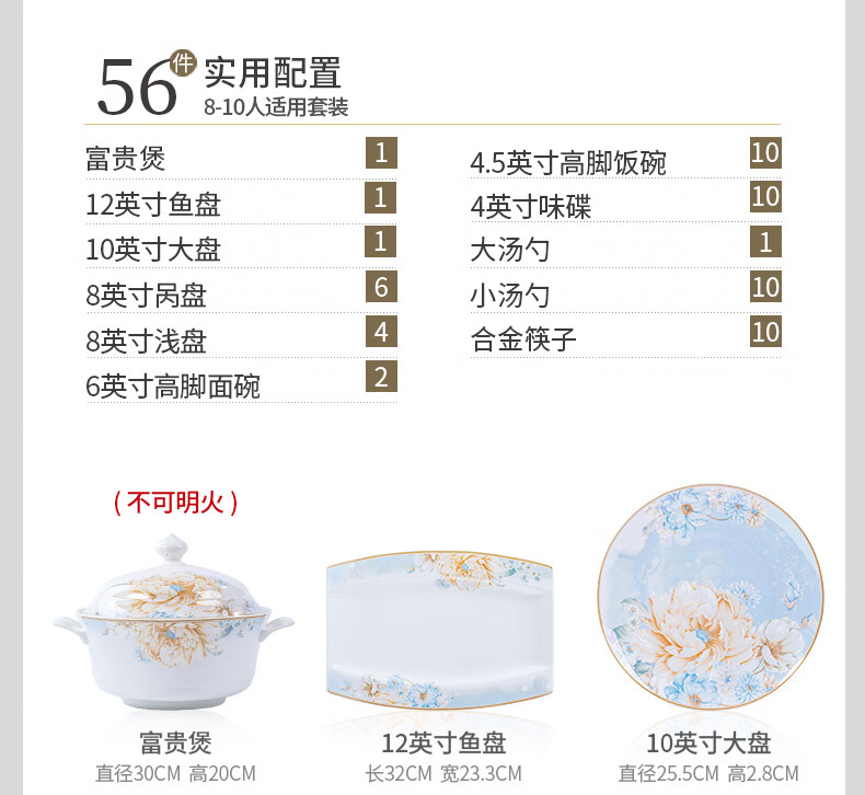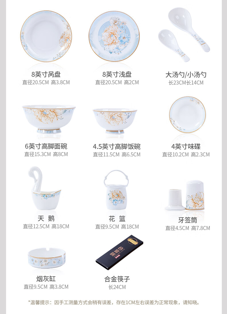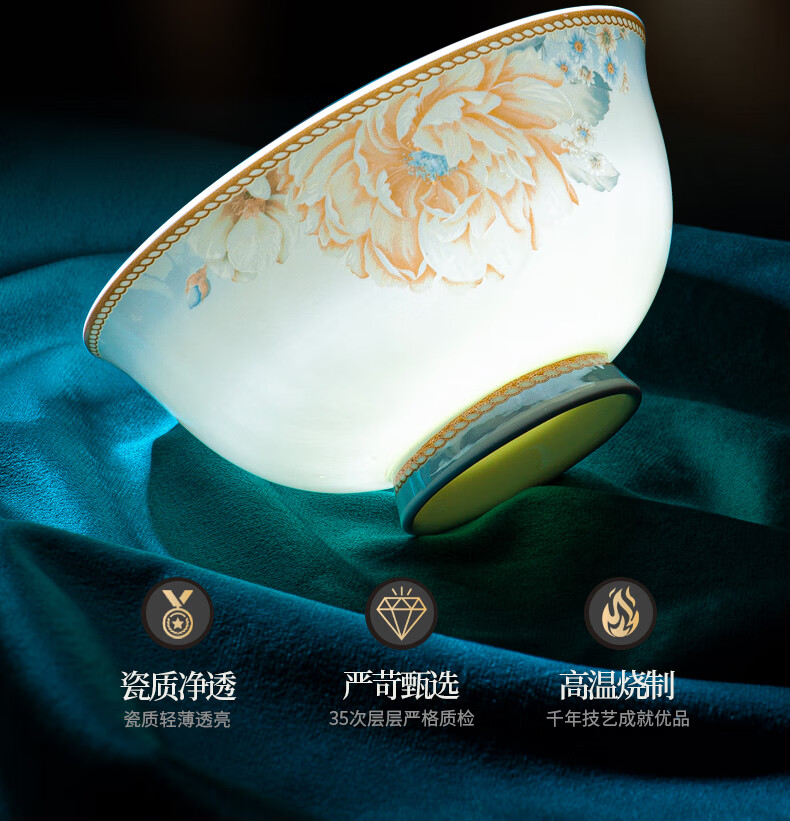 CROOZER dish set household new light luxury Jingdezhen bone china ceramic tableware set bowls and plates high-end housewarming gift gift with high-end brocade box - Phnom Penh Glaze Yingxue * 62 heads square luxury configuration