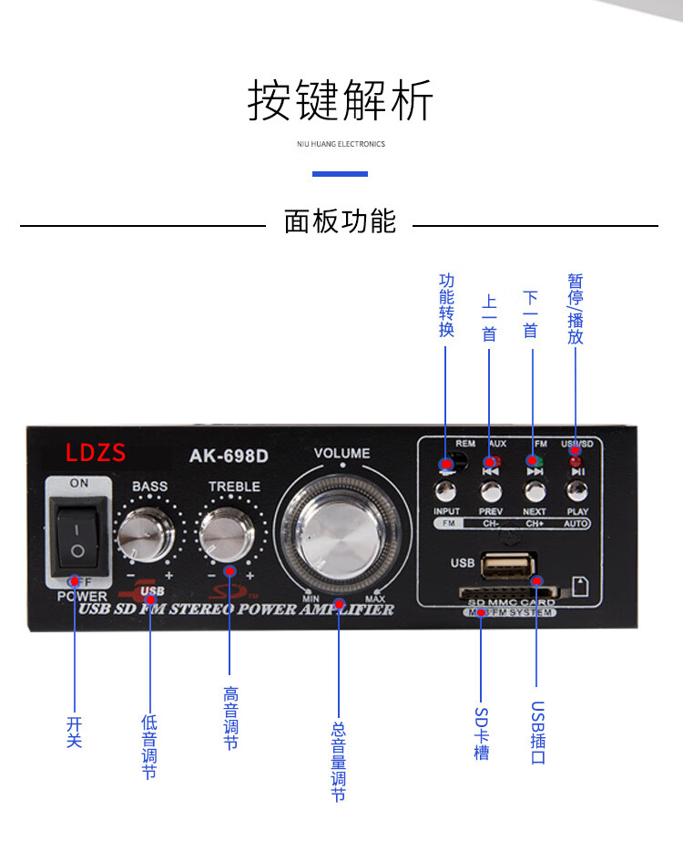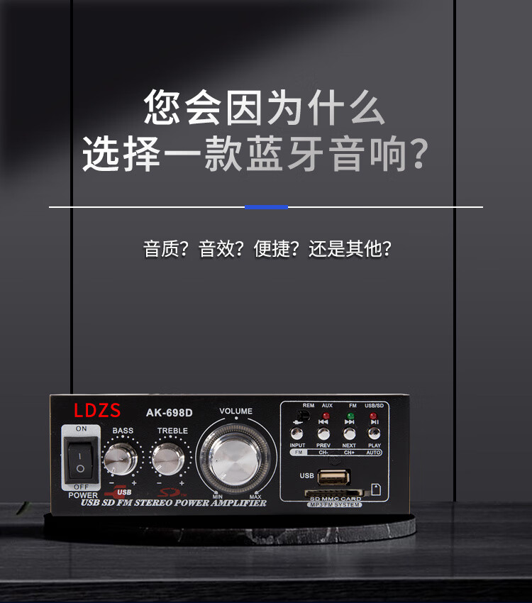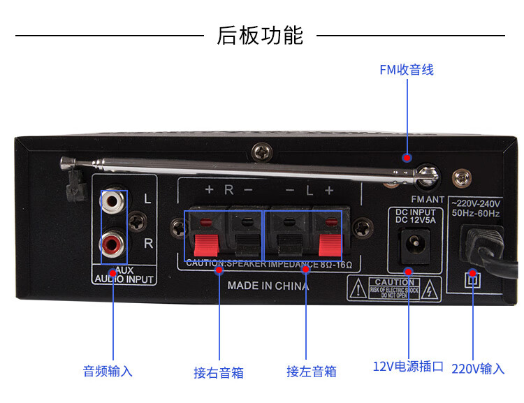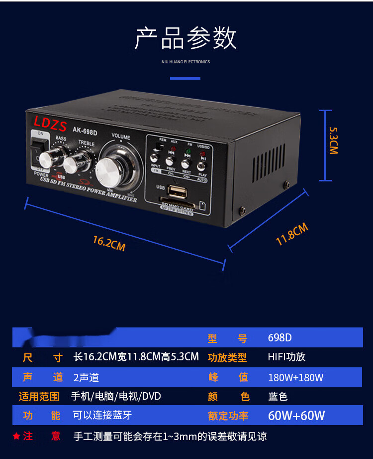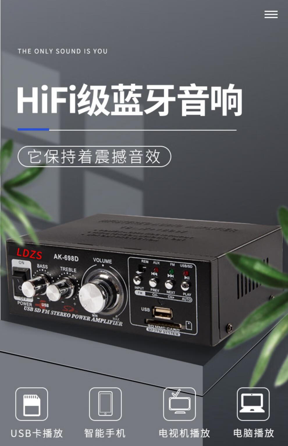 Du Lailin is suitable for 220V high-power mini small Bluetooth amplifier household multi-functional SD card U disk hifi black amplifier Bluetooth version
