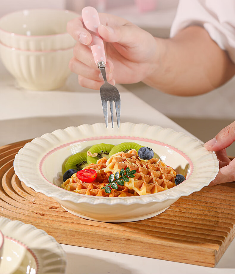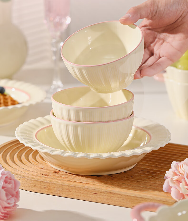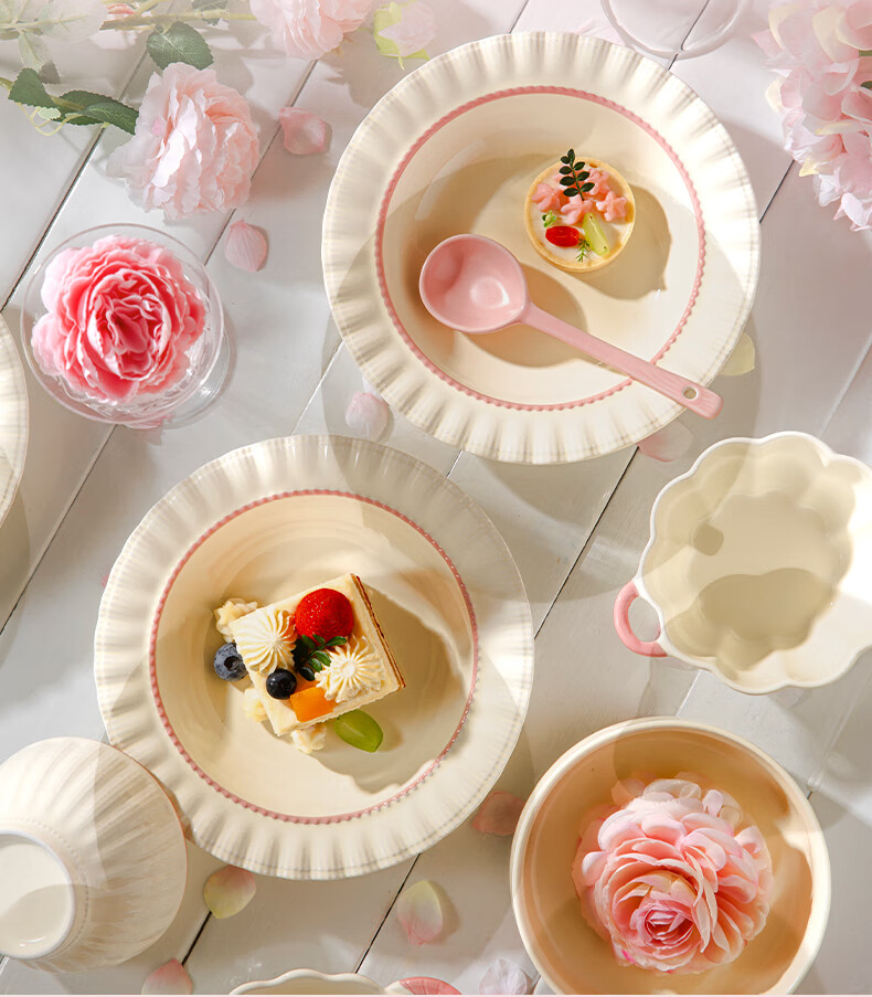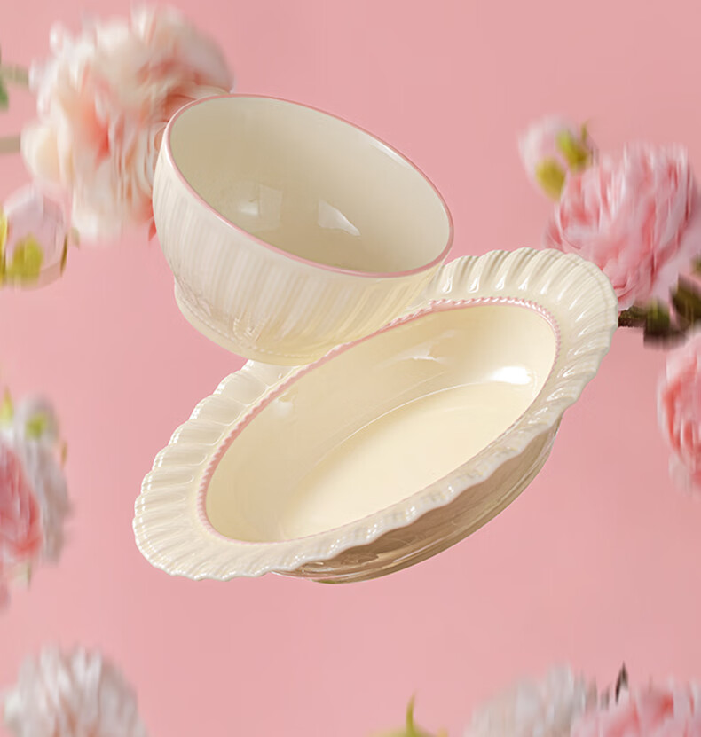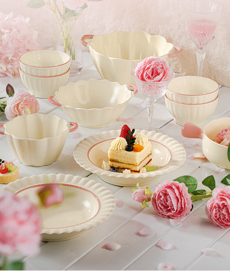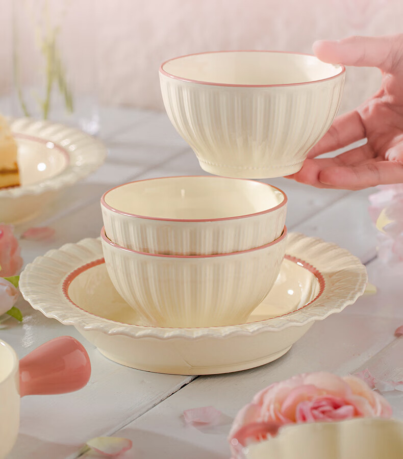 Lowe dish set for home use 2025 new high-looking bowls, chopsticks and plates cream style tableware set wedding gift recommended by the store manager Fendai 32-piece set for 6 people